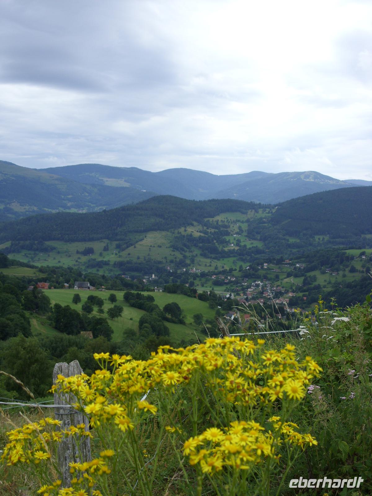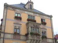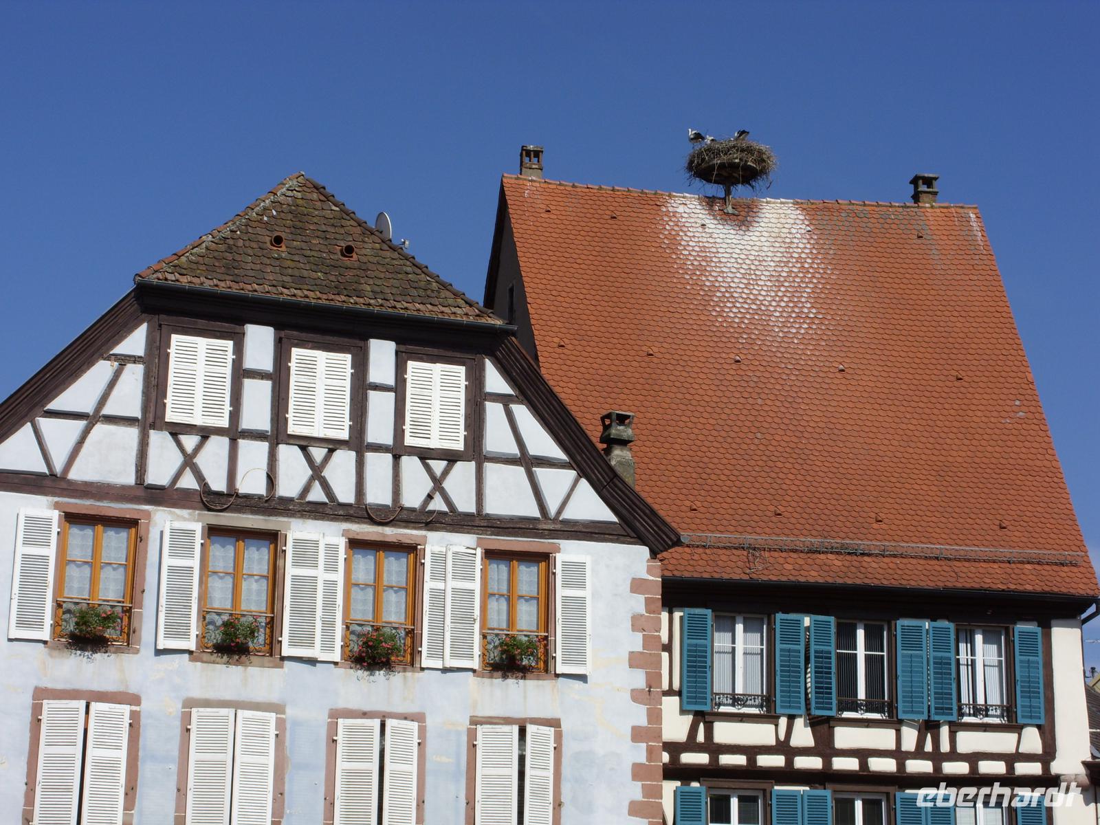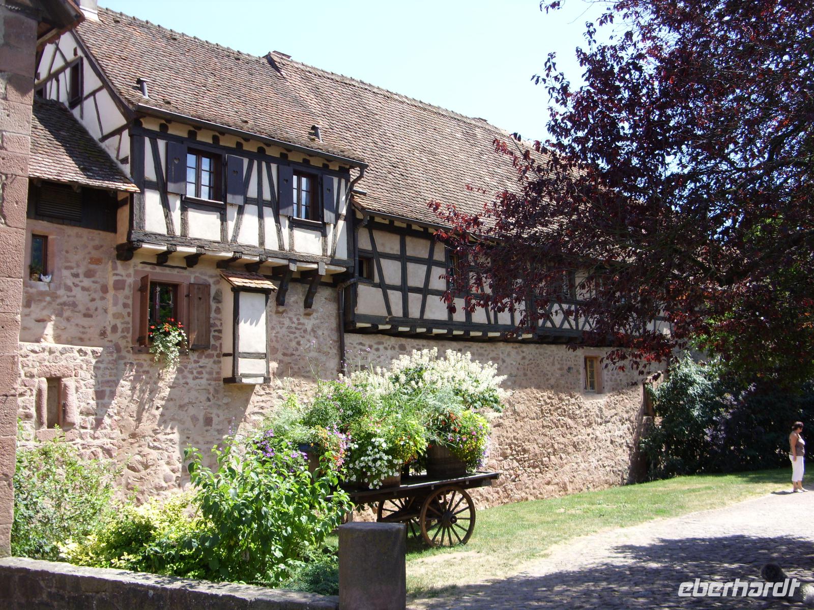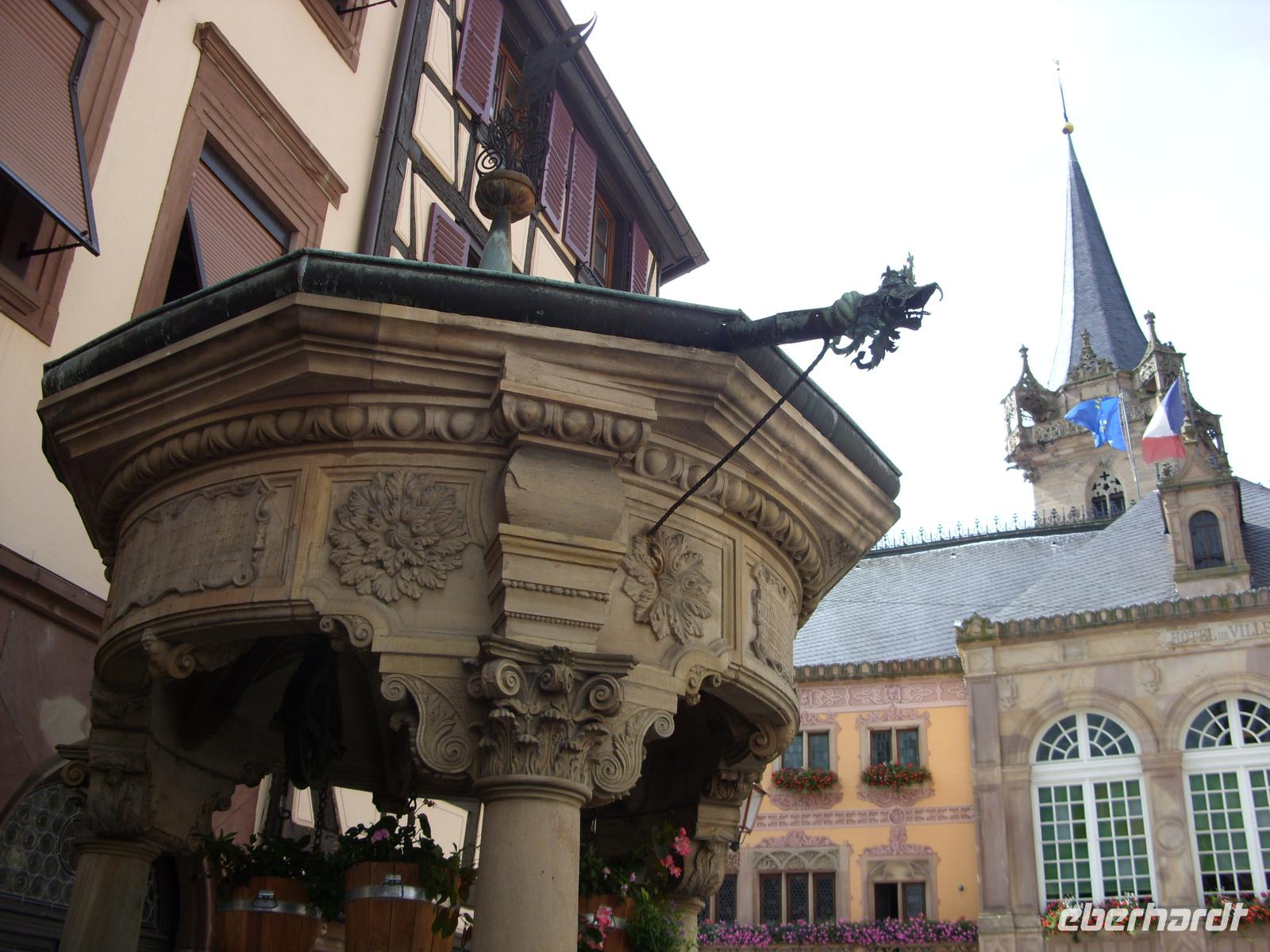 Nach einer ausführlichen Erkundung Colmars fuhren wir entlang der elsässischen Weinstraße zu den beiden Weindörfer Riquewihr und Ribeauvillé. In Riquewihr erwartetete uns zunächst ein kleiner beschaulicher Ort, der umgeben ist von einer doppelten Umfassungsmauer. Innerhalb fanden wir dann zahlreiche typische Winstub, mit Blumen umrankte Fachwerkhäuser wie auch das höchste des Elsasses mit 6 Etagen und eine ganz eigenartige Atmosphäre - elsässische Beschaulichkeit vermischt mit touristischer Hektik - vor. Im folgenden Ort Ribeauvillé führte ich dann die nun schon meist fußlahmen Gäste zum Wahrzeichen der Stadt, dem so genannten Metzgerturm. Dieser trennte einst Mittel- und Oberstadt und wird auch heute noch von der Grand Rue durchzogen. Einmal hoch, einmal runter ging wir die Grand Rue und sahen dabei alle sehenswerten Fachwerkhäuser, die oftmals ein Zeichen der Zunft der Gaukler und Spieler an ihrer Fassade hatten. Einfach traumhaft schön!