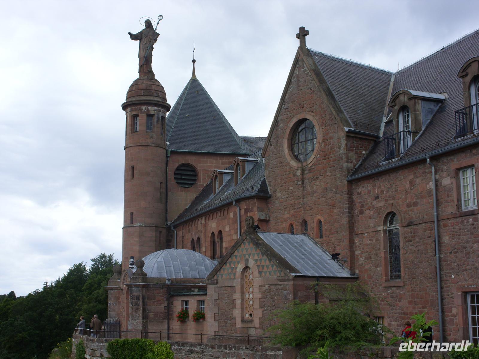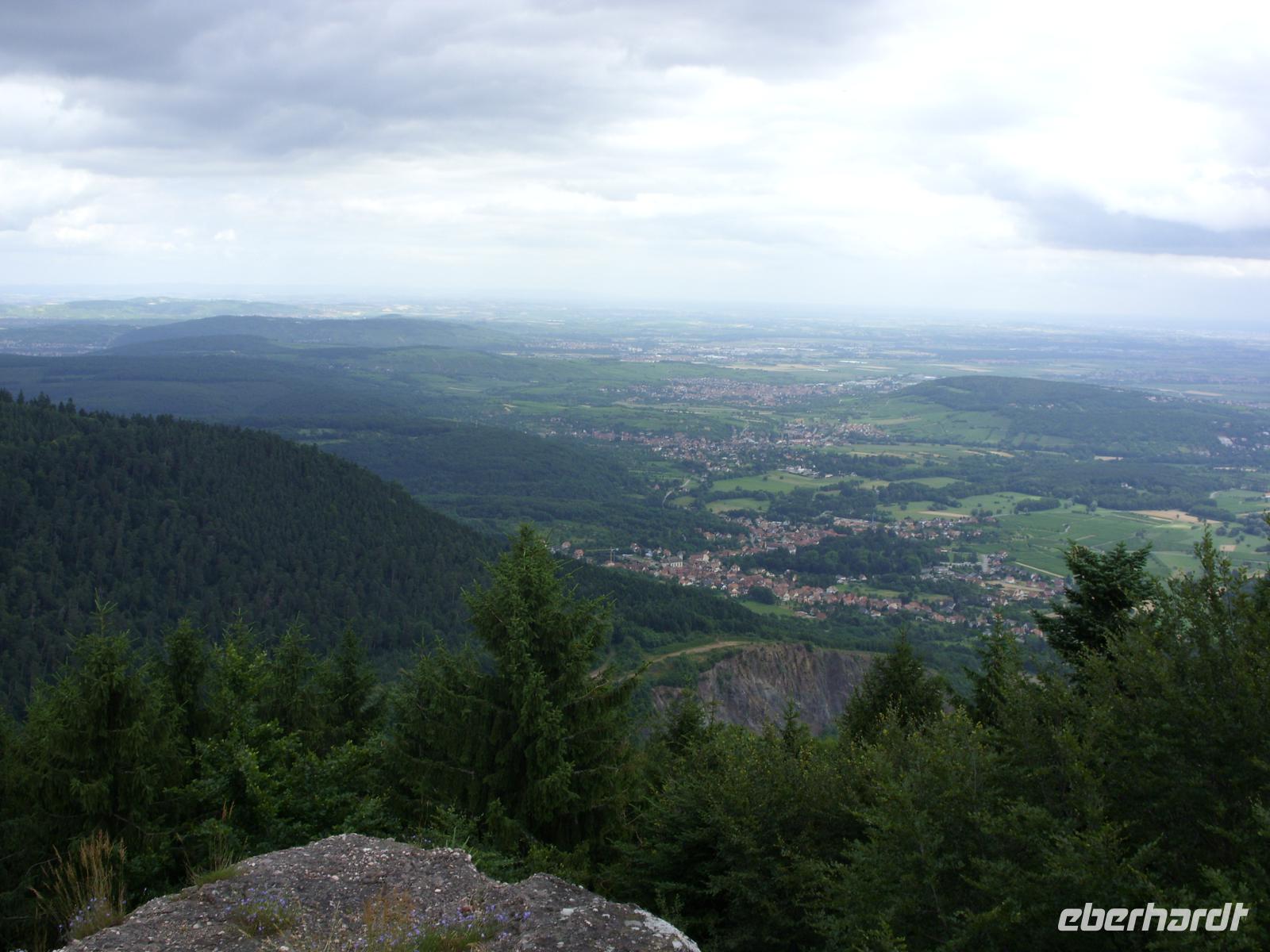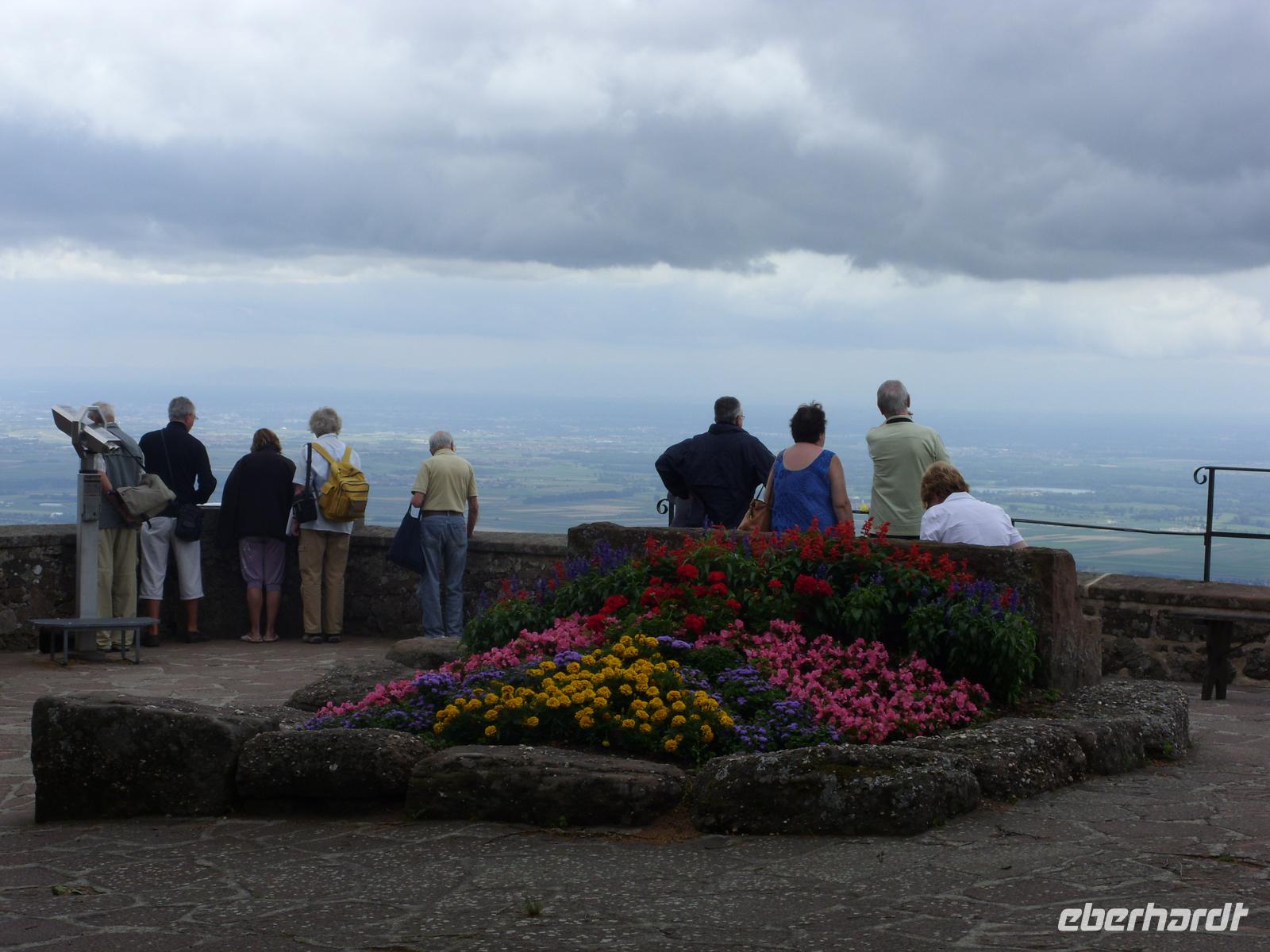 Nach einer kleinen nächtlichen Abkühlung führte uns am dritten Tag die Reiseroute zum Odilienberg. Am Fusse dieses 763 m hohen Berges statteten wir jedoch zunächst dem Örtchen Obernai einen kurzen Besuch ab. Hier war wie jeden Donnerstag großer Markt, der sich fast durch die ganze Innenstadt zog. Auf diese Art war es zwar etwas schwierig die verschiedenen Sehenswürdigkeiten ruhig in Augenschein zu nehmen aber einen typisch französischen Markt mit all seinem frischen Obst, Gemüse, Gewürzen, Backwaren, Käse und Fleisch zu durchqueren macht man ja schließlich auch nicht alle Tage! Nach diesem kurzen Aufenthalt fuhren wir die zahlreichen Kurven zum Odilienberg hinauf. Unterwegs hörten wir von der Legende um die heilige Odilia, deren Vater die erste Klosterlage auf dem Berg in Auftrag gab. Wahrscheinlich überzeugte damals wie heute der herrliche Blick über die Elsässische Ebene bis hin zum Rhein, dem Schwarzwald und den Vogesen sowie zu den zahlreichen elsässischen Dörfern unter uns. Eins dieser Weindörfer war unser nächstes Ziel: Dambach-la-Ville. Dort erwartetet uns bereits Emil vom Weingut Ruhlmann-Schütz. Die nächsten drei Stunden standen nun ganz im Zeichen des elsässischen Weins. Emil führte uns auf humorvolle Art und Weise durch den historischen und modernen Lagerraum sowie an der Abfüllanlage vorbei. Anschließend zeigte uns Emil im Petit Train den Winzerort Dambach-la-Ville sowie die umliegenden Weinberge.