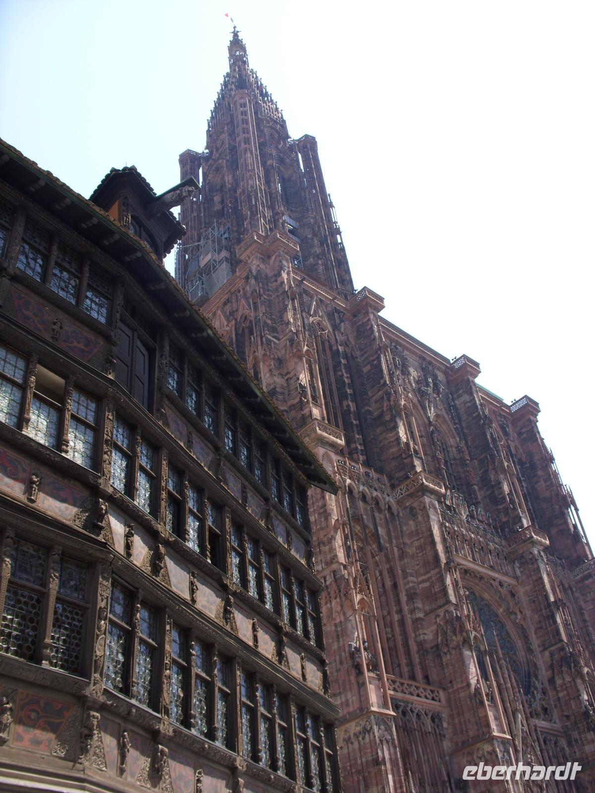 Am heutigen zweiten Tag stand eine ausführliche Entdeckung der Europahauptstadt Strasbourg auf dem Programm. Zunächst zeige uns die einheimische Dominique Kieffer i h r e Stadt einschließlich des Viertels der Europäischen Institutionen bevor wir in der Mittagsstunde dann eins der Ausflugsboote bestiegen, um die Altstadtinsel auf der Ill nochmals zu umrunden. Unter der auf uns herunter prasselnden Sonne blieben wir alle tapfer und erfreuten uns an den zahlreichen Fachwerkhäusern, der preußischen Architektur im so genannten deutschen Viertel, den europäischen Institutionen und natürlich dem überall bunt leuchtenden Blumenschmuck. Im Anschluss blieb Zeit, um individuell ins Café zu gehen oder die Herausforderung der mehr als 300 Stufen zu wagen, um auf die 66m-hohe Aussichtsterrasse des Straßburger Münsters zu gelangen. Der atemberaubende Blick über die Dächer von Strasbourg belohnte jedoch für alle Mühen!