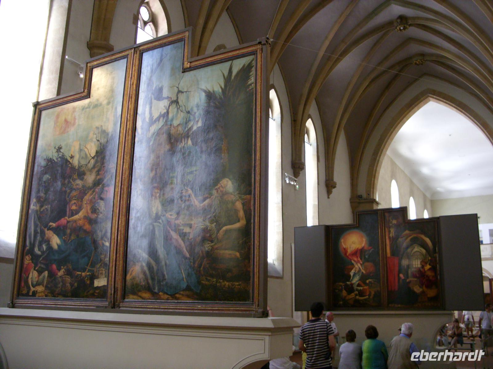 Auch am vierten unserer Elsass-Reise lachte bereits morgens die Sonne wieder vom strahlend blauen Himmel und ließ sogleich hohe Temperaturen für die Nachmittagsstunden erahnen. Natürlich war es dann auch so, sodass sich unsere Stadtbesichtigungen fast schon zu einer persönlichen Herausforerung entwickelten. Frisch und ausgeschlafen starteten wir jedoch zunächst einmal mit einem kleinen Rundgang in der elsässischsten Stadt schlechthin - Colmar. Auch hier versperrte uns heute ein Wochenmarkt so manch reizvollen Blick. Nichtsdesotrotz zogen uns die alten Fachwerkhäuser, die reichen Renaissancebauten, der überall präsente Blumenschmuck und der kleine Flusslauf Lauch in ihren Bann. Das Highlight der Stadt erwartete uns schließlich am Ende des Rundgangs - das Musée d'Unterlinden mit dem Issenheimer Altar, geschaffen von Matthias Grünewald in den ersten Jahren des 16. Jahrhunderts.