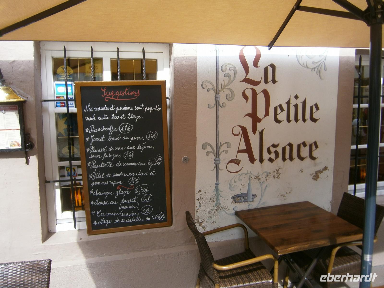In Kintzheim erwartete uns in der „Auberge St.Martin", einem sehr gut besuchten Restaurant, ein typisch Elsässisches Flammkuchenessen. So wurden mehrere Flammkuchen deftig , wie auch süß serviert. Dazu schmeckt natürlich ein typisch Elsässer Weißwein, wie Riesling, Edelzwicker oder Gewürztraminer.