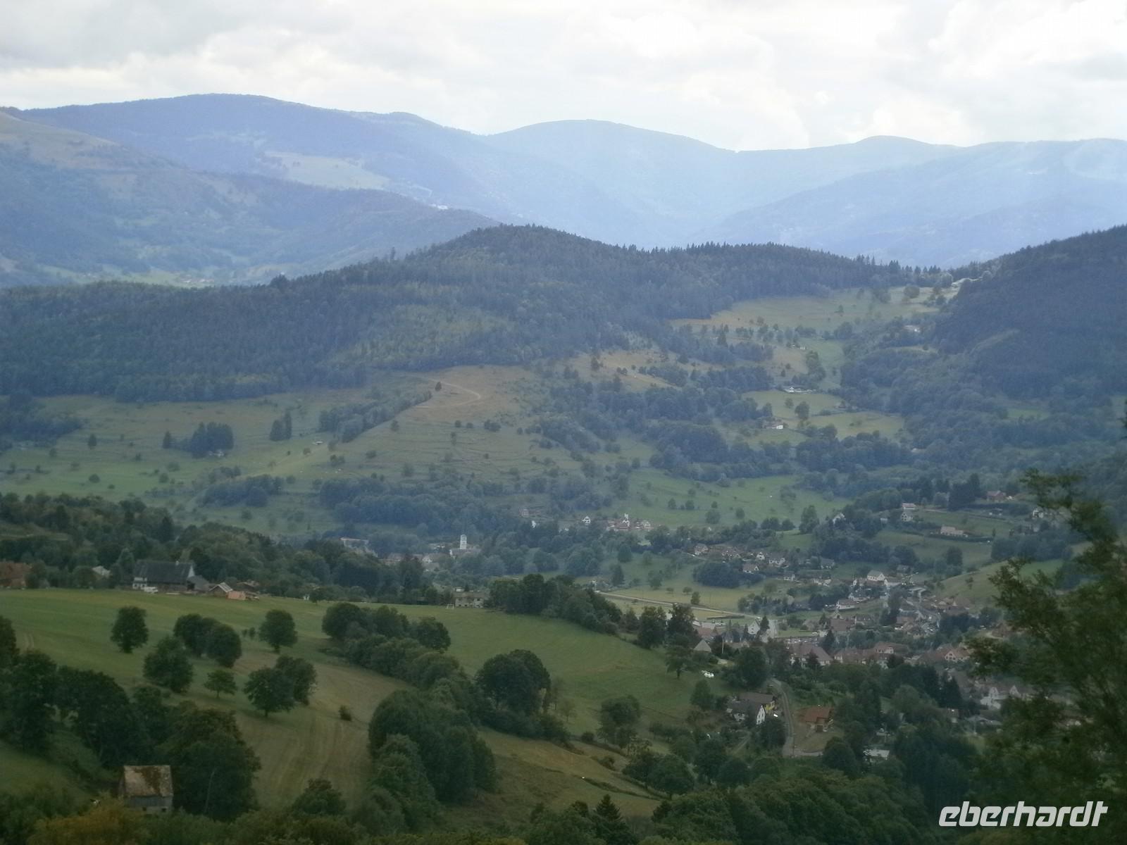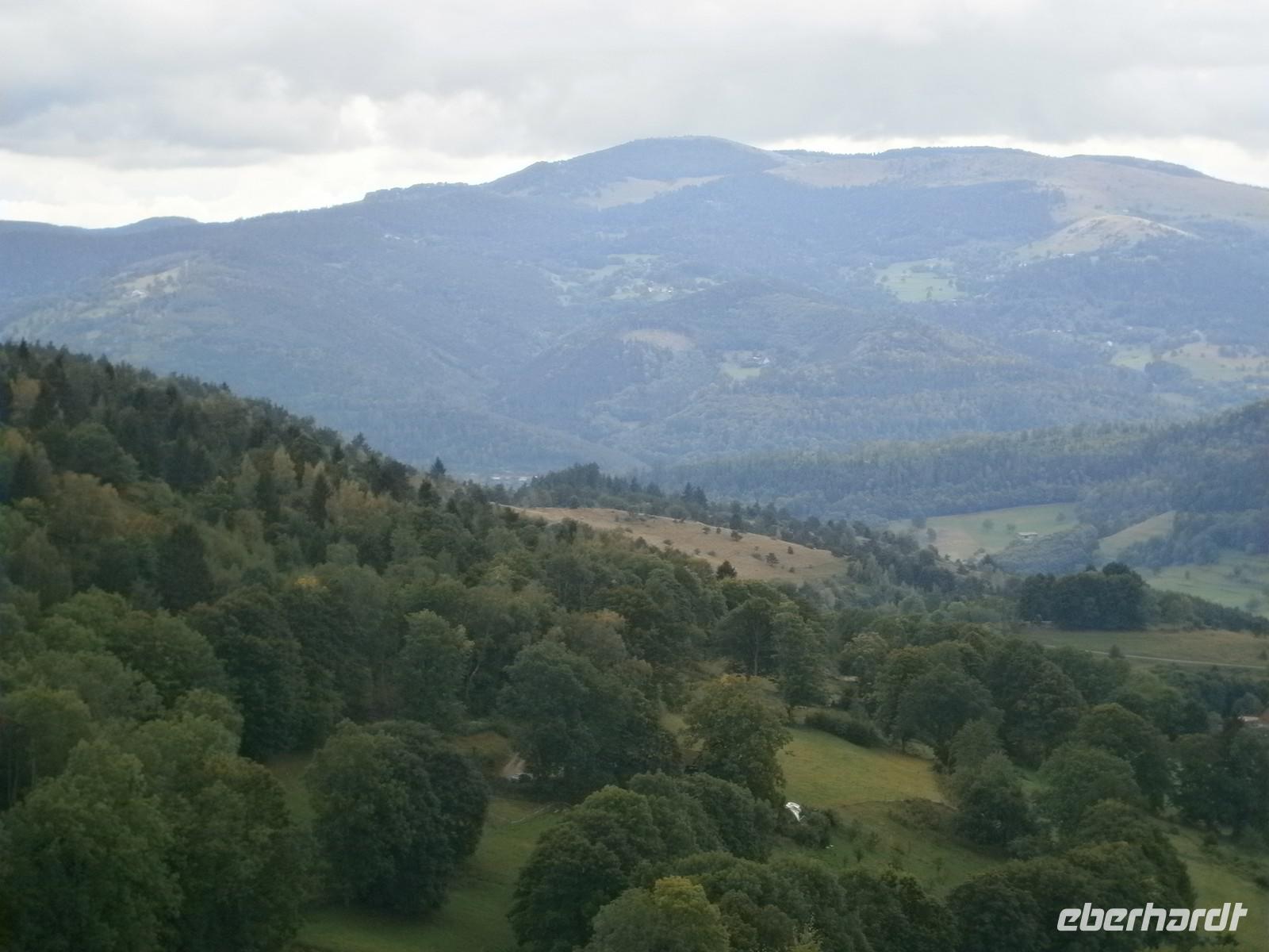 Nach dem Besuch begannen wir die Vogesenrundfahrt, die uns einen kleinen Einblick in die Schönheit dieses Gebirgszuges vermittelte. Über Ste-Marie aux Mines brachte uns der Bus zum Col de Bagonelles. Von dort gab es neben dem Mittagsimbiß einen herrlichen Ausblick in das Tal.von Argent. Nach der Weiterfahrt überquerten wir den Col du Bonhomme und fuhren auf der Route de Cretes, der Vogesenkammstraße, die im ersten Weltkrieg von französischen Soldaten über 150 Km gebaut wurde. Sie sollte an der damals heftig umkämpften Front, die Nord-Süd Verbindung, sicherstellen. Weiter ging es mit einem Fotostop an einem Sessellift, zum Col de la Schlucht. Auf einer gut ausgebauten Straße fuhren wir Richtung Munster, wo der gleichnamige Käse seine Heimat hat. Die Fahrt bot ein beeindruckendes Panorama dieses Teils der Vogesen. Kurz vor Munster verließen wir die Straße um mit einem Fotostop über den Col du Wettstein nach Orbey zu kommen, wo wir bereits in einer Käserei zur Käseprobe erwartet wurden. Nach der Erläuterung der Käseherstellung konnten auch noch viele Sorten Käse probiert werden. Die Fa. Eberhardt Travel spendierte dazu ein Glas Gewürztraminer, der richtige Wein zu diesem, sehr würzigen Käse. Natürlich nutzten viele unserer Gäste die Möglichkeit zum Einkauf.