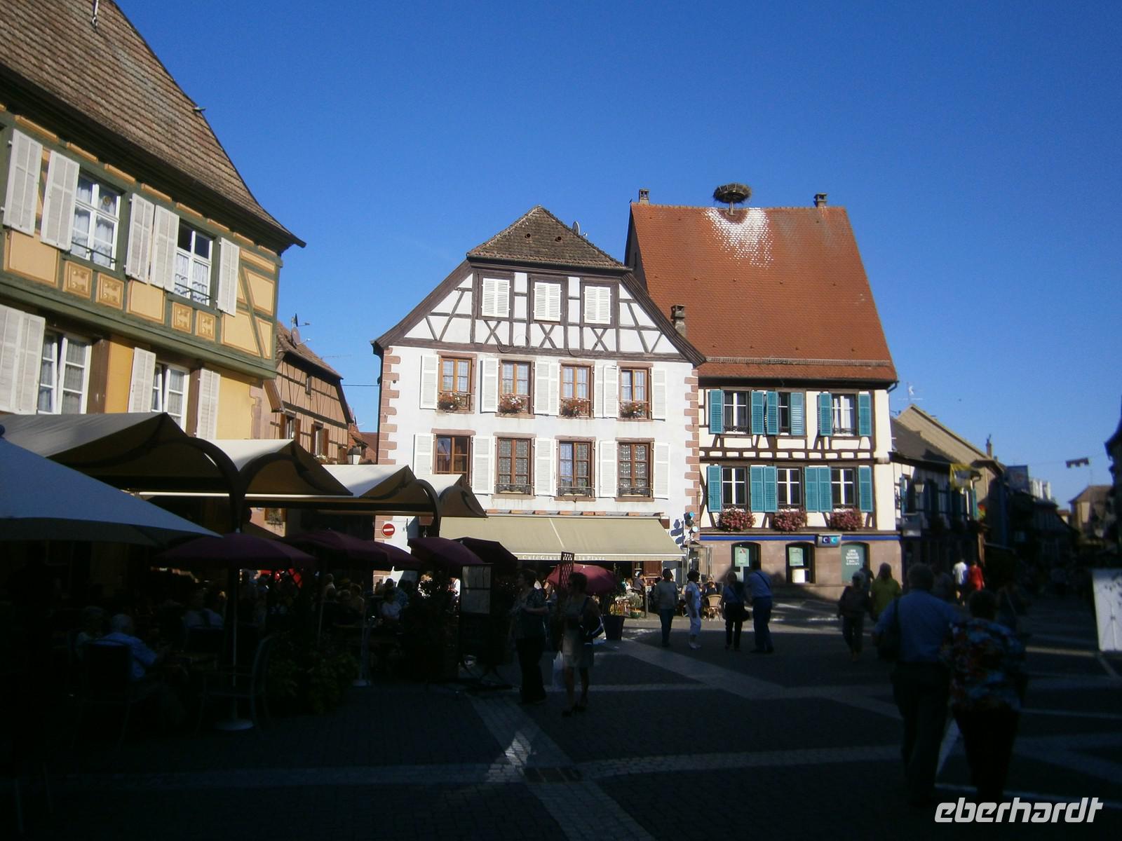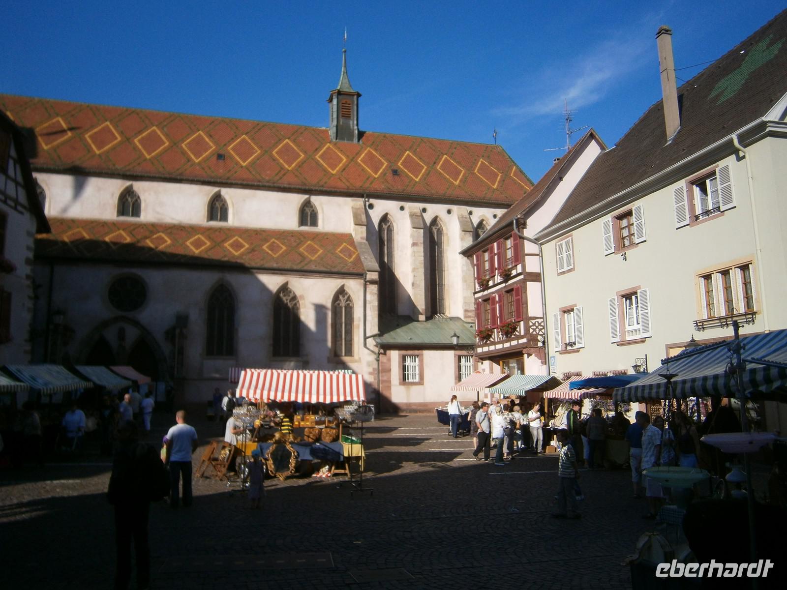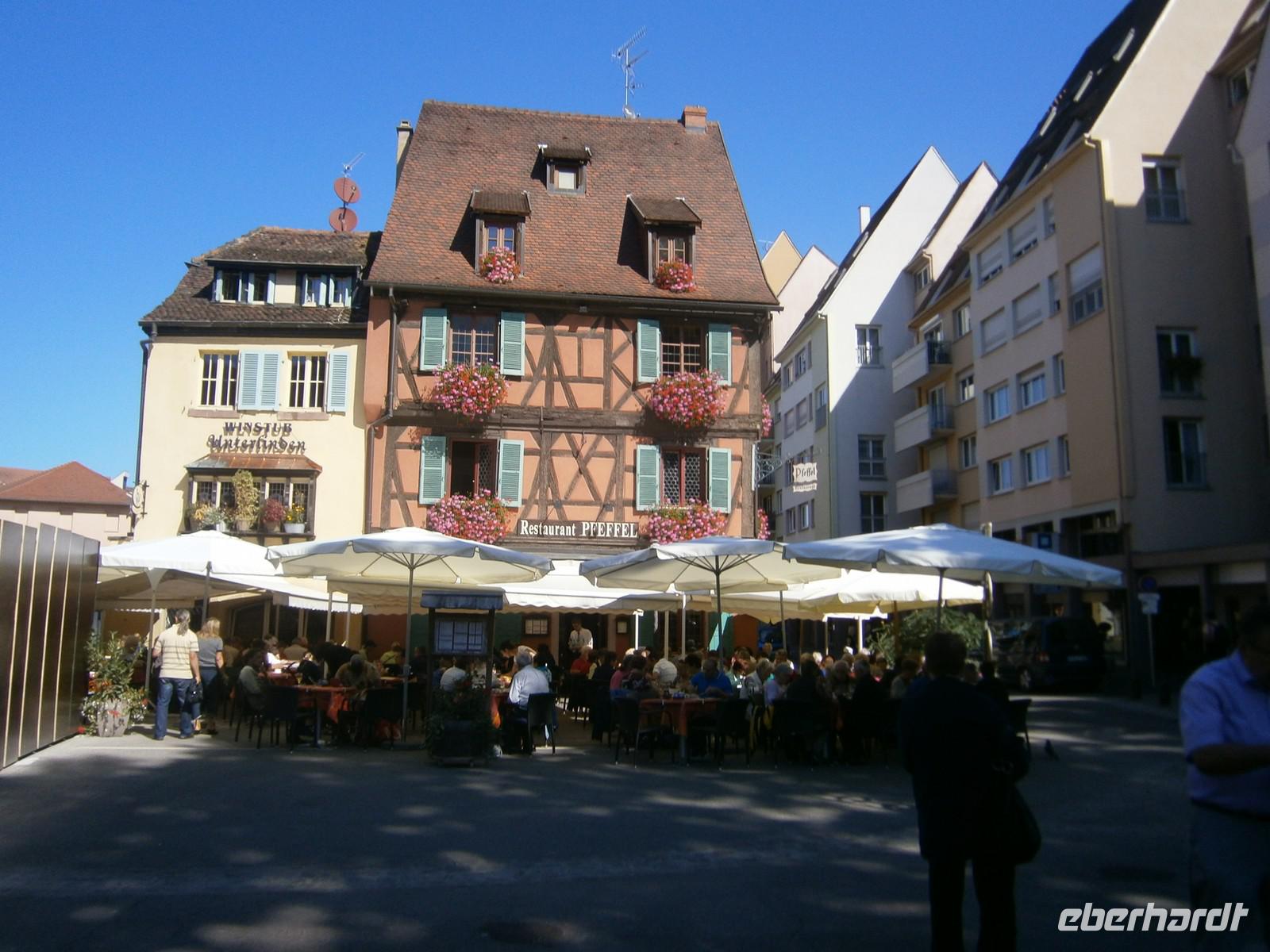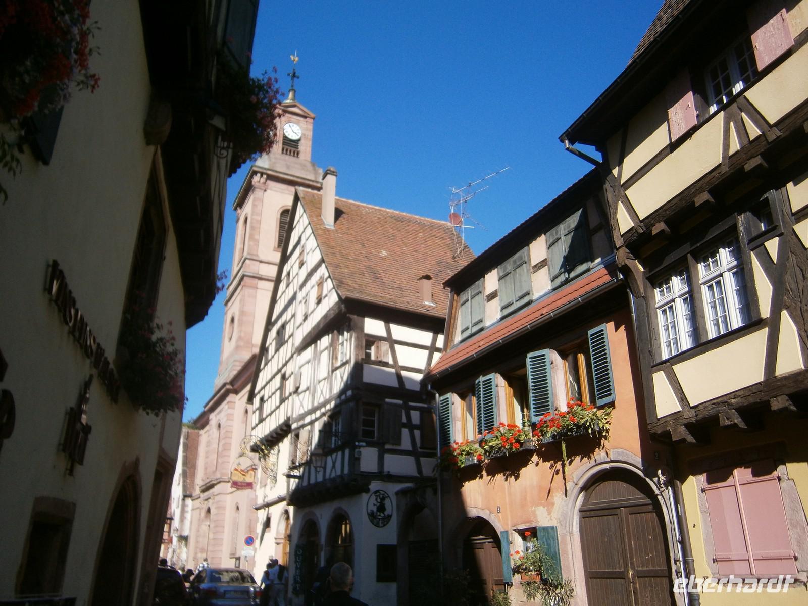 Die Hauptstadt des Oberelsaß, Colmar, war unser Ziel am nächsten Tag. Das Musee Unterlinden mit den bekannten Isenheimer Altar von Matthias Grünewald wurde zuerst von einem Teil unserer Gruppe besucht. Der andere Teil nahm an einem Spaziergang zu den touristischen Eckpunkten der Stadt teil. Der Weg führte vom Maison de Tete (Kopfhaus) zur Dominikanerkirche mit dem Bildnis „Maria im Rosenhag" von Martin Schongauer. Weitere Stationen waren die Stiftskirche St. Martin, die ehemalige Polizeiwache, das Adolph Haus, das Pfister Haus, das Geburtshaus von Auguste Bartholdi, dem Schöpfer der Freiheitsstatue von New York, das Alte Kaufhaus, das Gerberviertel, der Fischerstaden, die Markthalle und „Petite Venise", das kleine Venedig. Die gleiche Tour erfolgte noch einmal mit den Gästen, die zuerst das Unterlindenmuseum besucht hatten. Nach der entsprechenden Freizeit in dieser schönen Stadt fuhren wir zu zwei kleinen wunderschönen Weinorten an der Elsässer Weinstraße. Die Stadt Riquewihr, eines der „Schönsten Dörfer Frankreichs" und die „Sackpfeiferstadt" Ribeauville empfingen uns bei schönem Wetter und mit jeder Menge Besucher. Die alten Fachwerkhäuser beider Orte, mit ihren Blumenschmuck, ihren Auslegern und unzähligen Möglichkeiten der Einkehr muß man einfach gesehen haben. Es wird gegessen, getrunken, kommuniziert und Einkäufe getätigt. In jeden dieser zwei Städtchen hatten die Mitglieder unserer Reisegruppe einen längeren Aufenthalt.
