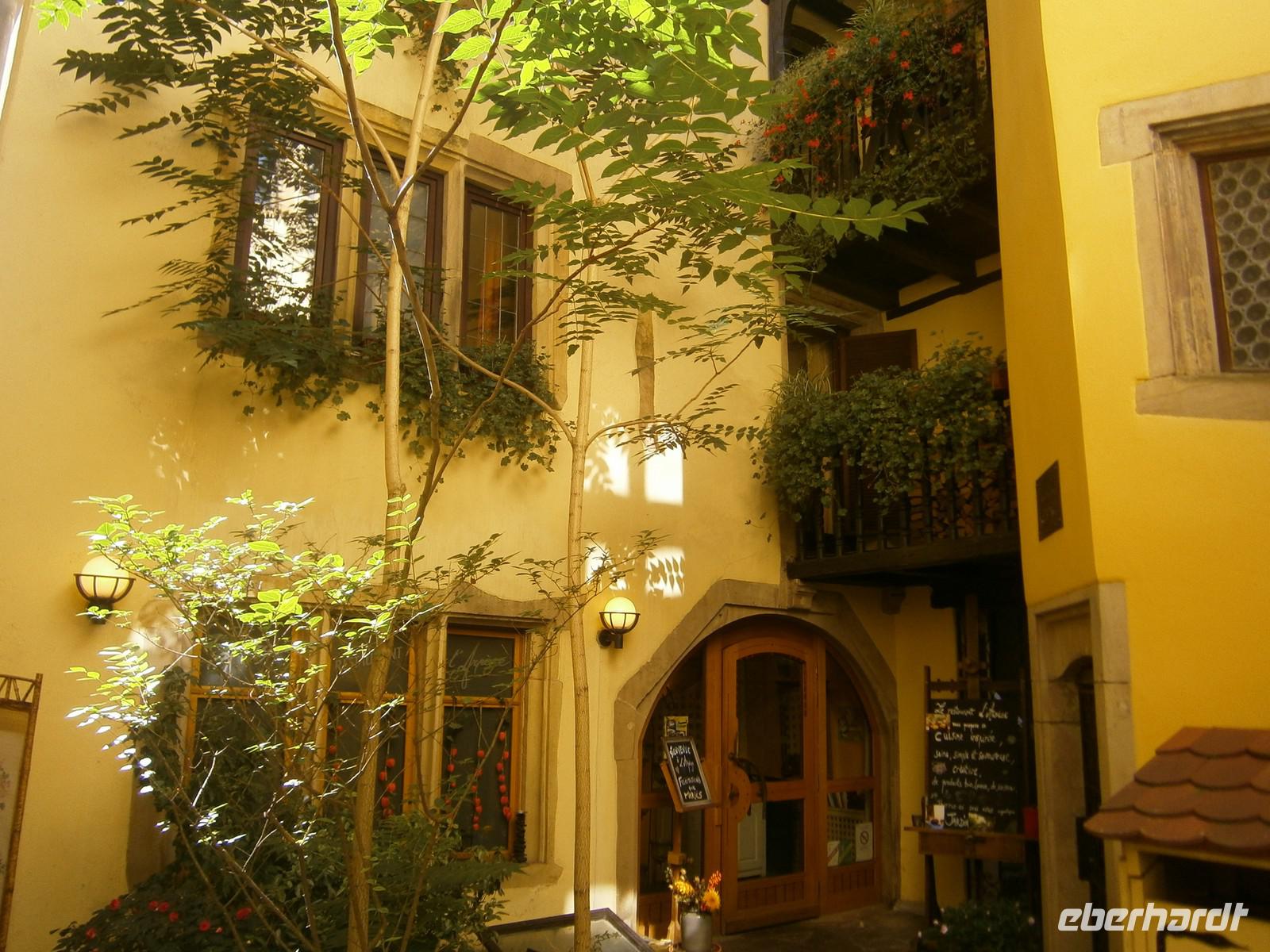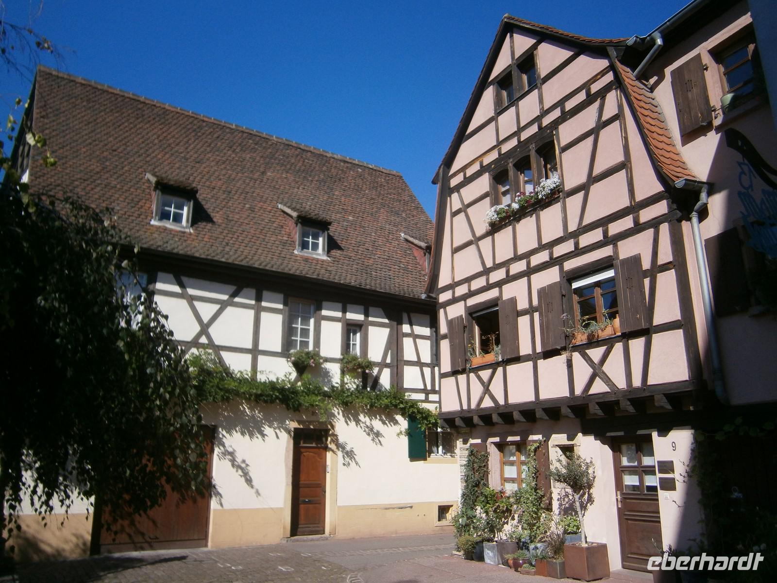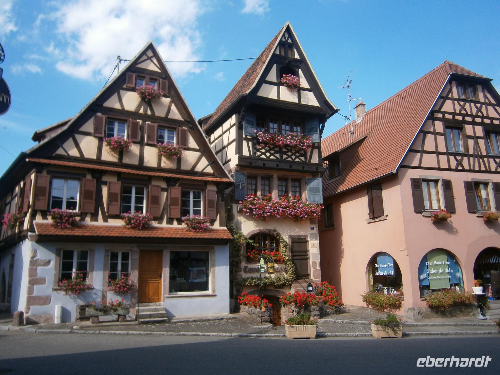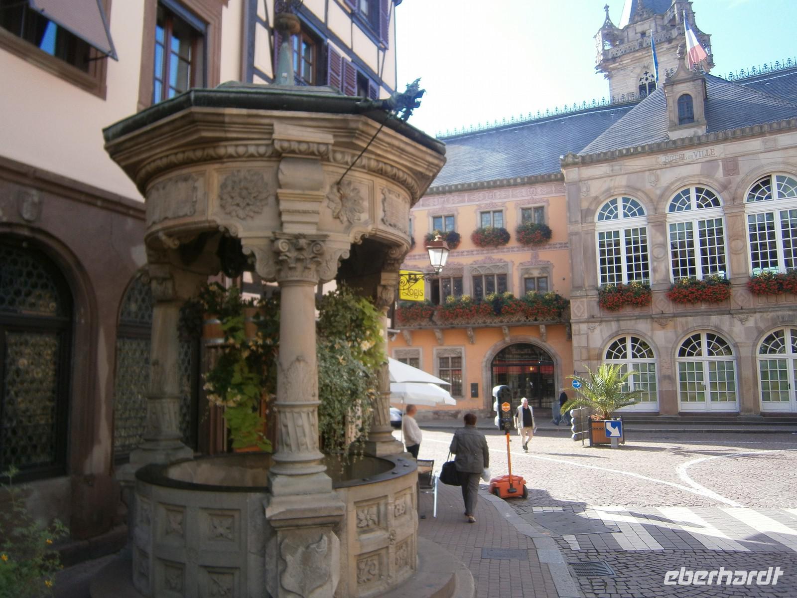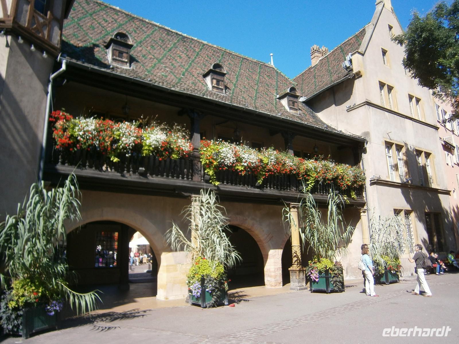 Die Hauptstadt des Oberelsaß, Colmar, war unser Ziel am nächsten Tag. Das Musee Unterlinden mit den bekannten Isenheimer Altar von Matthias Grünewald wurde zuerst von einem Teil unserer Gruppe besucht. Der andere Teil nahm an einem Spaziergang zu den touristischen Eckpunkten der Stadt teil. Der Weg führte vom Maison de Tete (Kopfhaus) zur Dominikanerkirche mit dem Bildnis „Maria im Rosenhag" von Martin Schongauer. Weitere Stationen waren die Stiftskirche St. Martin, die ehemalige Polizeiwache, das Adolph Haus, das Pfister Haus, das Geburtshaus von Auguste Bartholdi, dem Schöpfer der Freiheitsstatue von New York, das Alte Kaufhaus, das Gerberviertel, der Fischerstaden, die Markthalle und „Petite Venise", das kleine Venedig. Die gleiche Tour erfolgte noch einmal mit den Gästen, die zuerst das Unterlindenmuseum besucht hatten. Nach der entsprechenden Freizeit in dieser schönen Stadt fuhren wir zu zwei kleinen wunderschönen Weinorten an der Elsässer Weinstraße. Die Stadt Riquewihr, eines der „Schönsten Dörfer Frankreichs" und die „Sackpfeiferstadt" Ribeauville empfingen uns bei schönem Wetter und mit jeder Menge Besucher. Die alten Fachwerkhäuser beider Orte, mit ihren Blumenschmuck, ihren Auslegern und unzähligen Möglichkeiten der Einkehr muß man einfach gesehen haben. Es wird gegessen, getrunken, kommuniziert und Einkäufe getätigt. In jeden dieser zwei Städtchen hatten die Mitglieder unserer Reisegruppe einen längeren Aufenthalt.