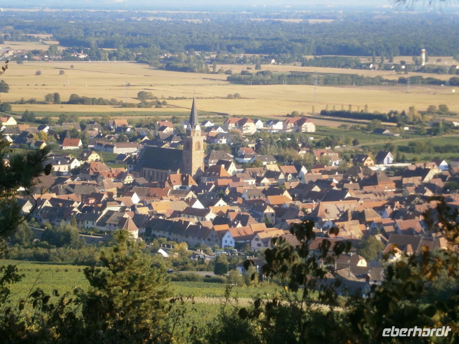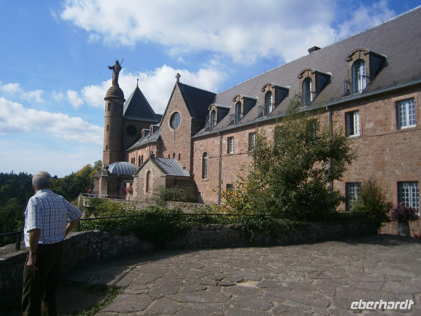 Den nächsten Tag ging es etwas entspannter zu. In Obernai, ebenfalls ein wunderschöner Ort an der Weinstraße, machten wir unseren ersten Halt. Bei einem kleinen Spaziergang sahen wir neben den kleinen Geschäften und Restaurants sowie Cafe's die touristischen Sehenswürdigkeiten. So u.a. die Stadtmauer, die Synagoge, den Marktplatz mit Kornhalle, Rathaus, Odilienbrunnen und Kapellturm. Auf dem Weg zur katholischen Pfarrkirche St. Peter und Paul, der nach dem Straßburger Münster größten Kirche im Elsaß, kommt man am Sechs-Eimer-Brunnen, erbaut im Stil der Renaissance, vorbei. Nach individuellen Bummel durch den Ort fuhren wir mit dem Bus hinauf zum Kloster der hl. Odile, der Schutzpatronin des Elsaß. Der 761 Meter hohe Berg ist der „Heilige Berg" des Elsaß und bildet den Glanzpunkt der Vogesen. Das Kloster ist heute Wallfahrtsstätte, Gebetsstätte und ein Ort der Gastlichkeit. Von hier oben bietet sich ein wunderbarer Ausblick auf die Rheinebene und dem gegenüberliegenden Schwarzwald. Betrachten kann man eine Weltsonnenuhr, die Tränenkapelle, die Kirche, die Kapelle mit dem Grab der hl. Odile, den Kreuzgang u.a.;Nach individuellen Bummel auf dem Klosterberg setzten wir unsere Fahrt über Barr fort. Durch malerische Weinorte und vorbei an Weinfeldern erreichten wir Dambach la Ville um in der Kellerei Ruhlmann am Weinseminar teilzunehmen. Unser lieber Emile zeigte zuerst den Weinkeller und erläuterte einiges zur Herstellung der edlen Tropfen. Dann ging es mit einem kleinen Zug in die Weinberge. Bei der Anfahrt erfuhren die Gäste vieles zum Ort und auch zu den Weinreben, Lagen und zur Geschichte. Anschließend hielt der Zug am Probierraum, der sich in einem Keller befindet. Zur Verkostung standen sieben Sorten Wein, mit den entsprechenden Erläuterungen dazu. Gereicht wurde auch eine Kostprobe von dem berühmten elsässischen Kougelhopf mit getrockneten Rosinen und ganzen Mandeln. Viele unserer Gäste nutzten anschließend die Möglichkeit etwas Wein mit nach Hause zu nehmen.