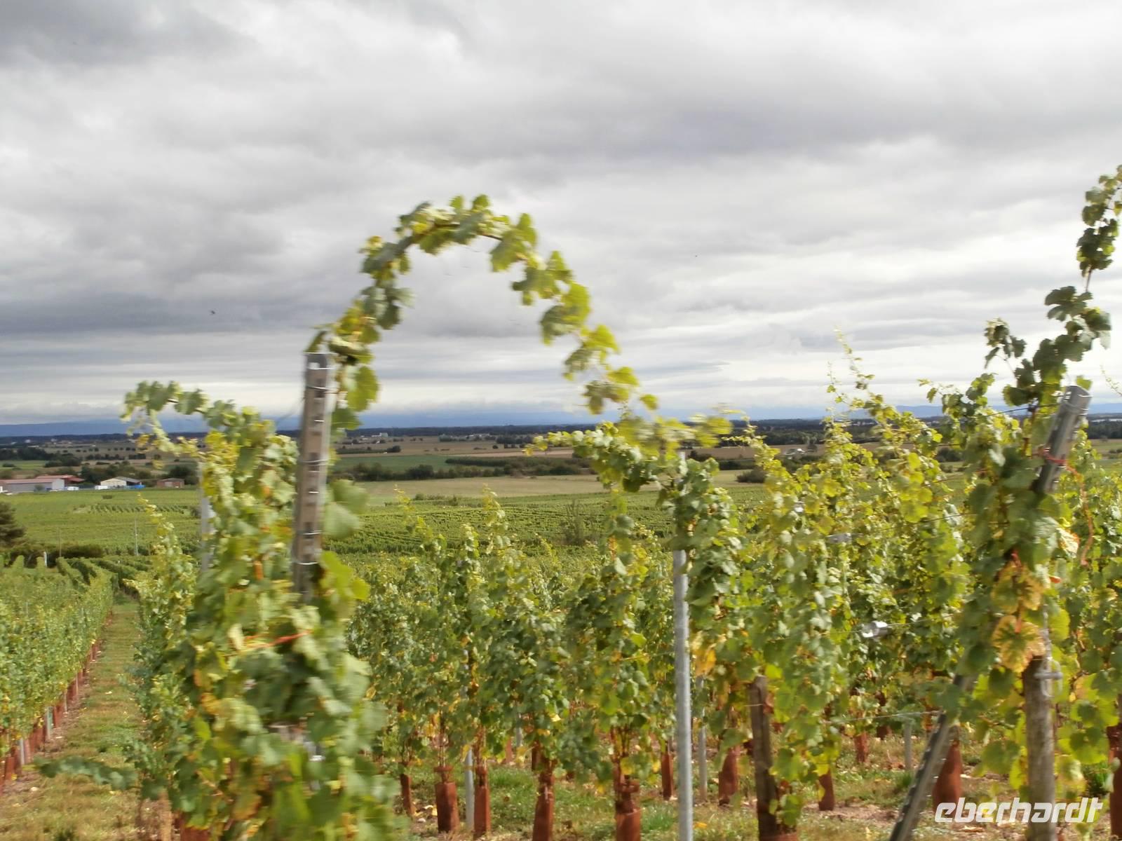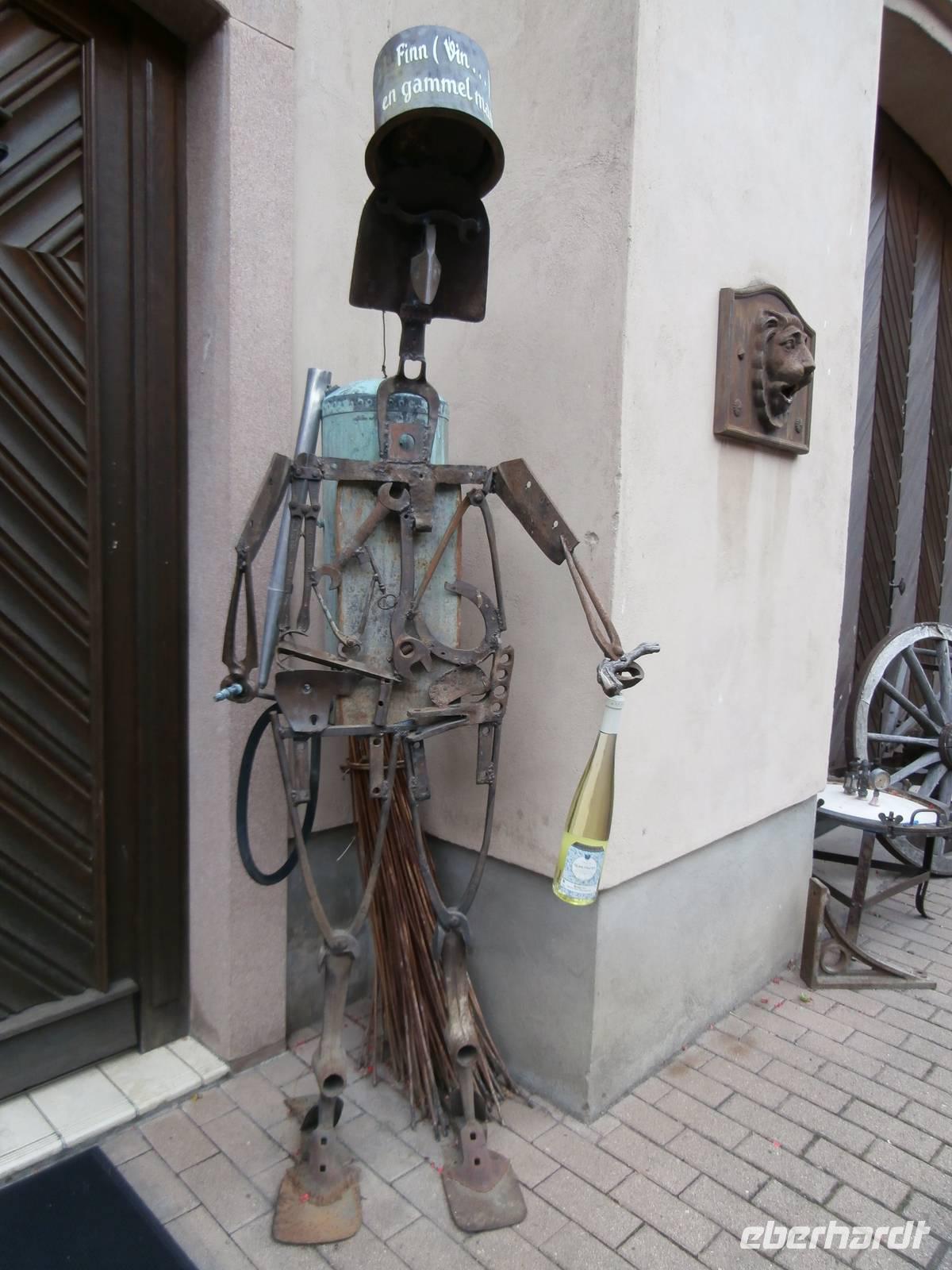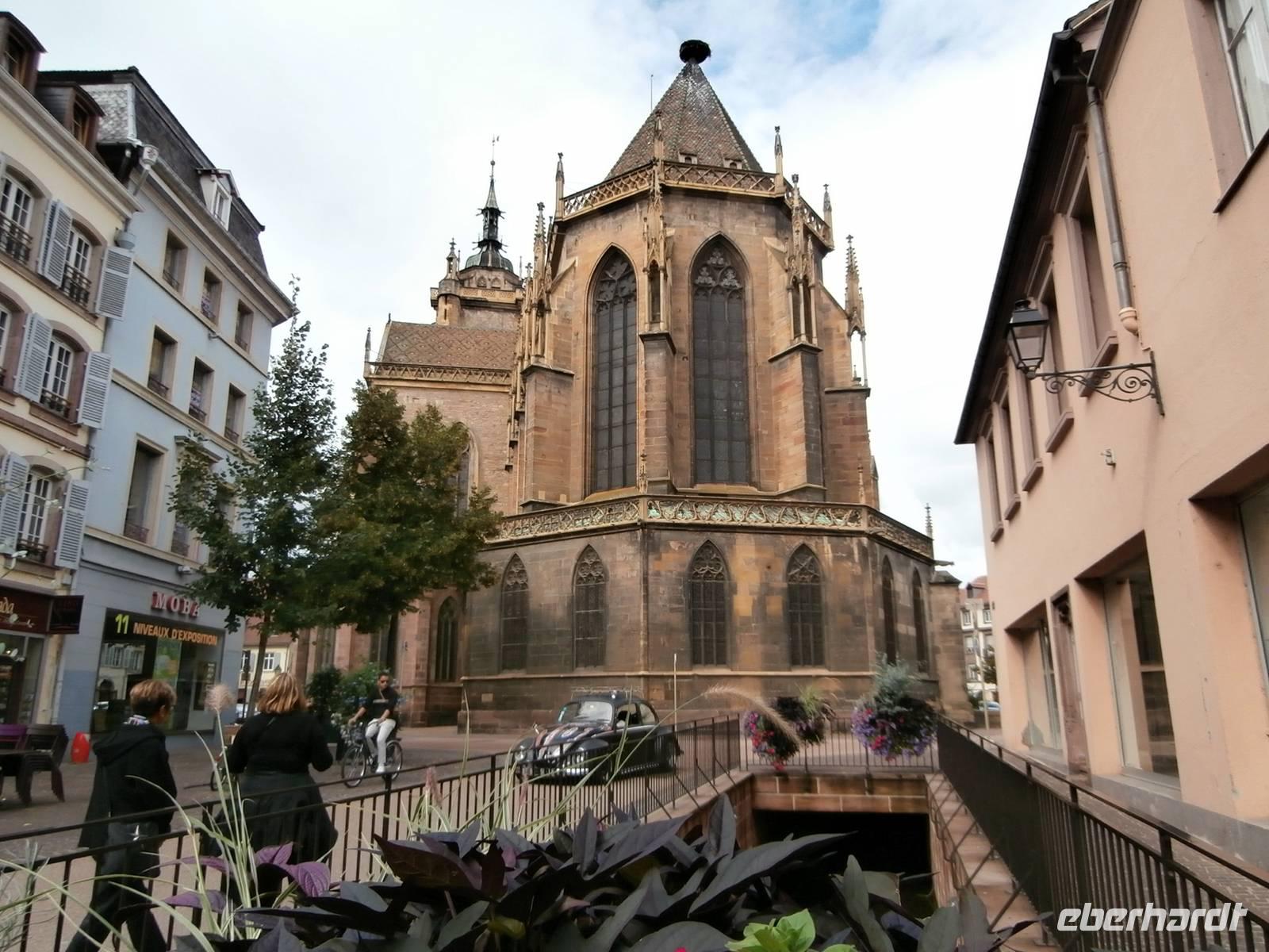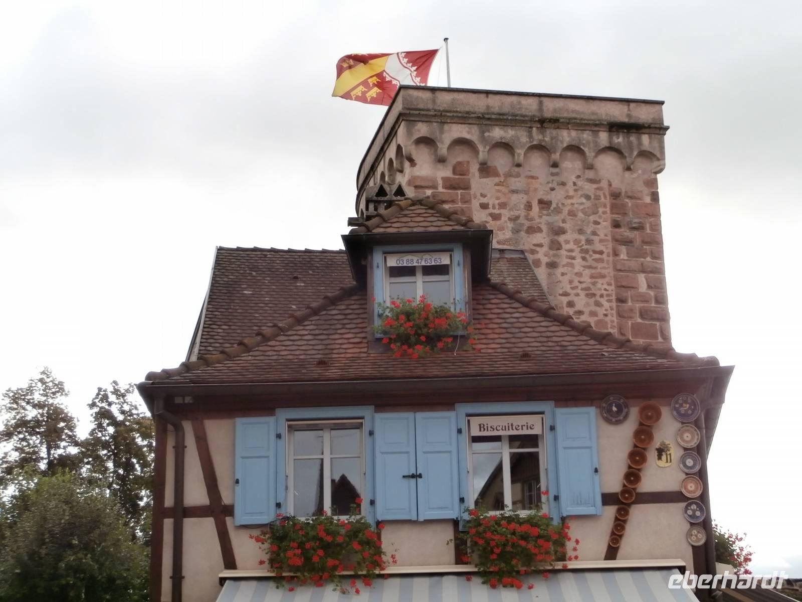 Obernai, an der Elsässischen Weinstraße gelegen, besuchen wir am Vormittag. Durch ein kleines Stadttor gelangen wir in die Stadt vorbei an der alten Synagoge, bis hin zum Marktplatz. Wir sehen das fantastische Rathaus, wir nehmen gleich hier unser obligatorisches Gruppenfoto auf. Am Platze steht auch der Odilienbrunnen, die Heilige Odilie ist die Schutzpatronin des Elsaß und sie wurde in Obernai geboren. Vorbei am Sechs-Eimer-Brunnen, der im Renaissancestil errichtet wurde, gelangen wir zur Pfarrkirche St. Peter und Paul, sie ist nach dem Münster in Straßburg, die größte Kirche im Elsass, gebaut in neugotischen Stil. Weiter geht es auf unserer Tour hinauf zum Kloster auf dem Odilienberg, hier ist ja die Abtei der Heiligen Odilie. Ein sehr gut erhaltenes Anwesen mit 2 wunderschönen Kapellen besichtigen wir gemeinsam. Das Wetter meint es auch heute wieder gut mit uns, es läßt uns einen schönen Blick zu in die Elsässische Ebene und auch das Gebiet der Vogesen erkennt man von hier oben. Der anschließende Aufenthalt beim Winzer Ruhlmann in Dambach La Ville ist mit der Fahrt in der kleinen Bahn durch die Weinberge und den Ort ein besonderes Erlebnis. Krönung des Ganzen ist unsere gemeinsame Weinprobe, sieben Sorten davon eine Rotwein, verkosten wir. Ein dazu gereichter Kougelhopf rundet das Erlebnis ab. Emil macht einen guten Job, mit Witz, Charme und Humor ist er ein perfekter Unterhalter und Führer hier bei unserem Weinseminar.