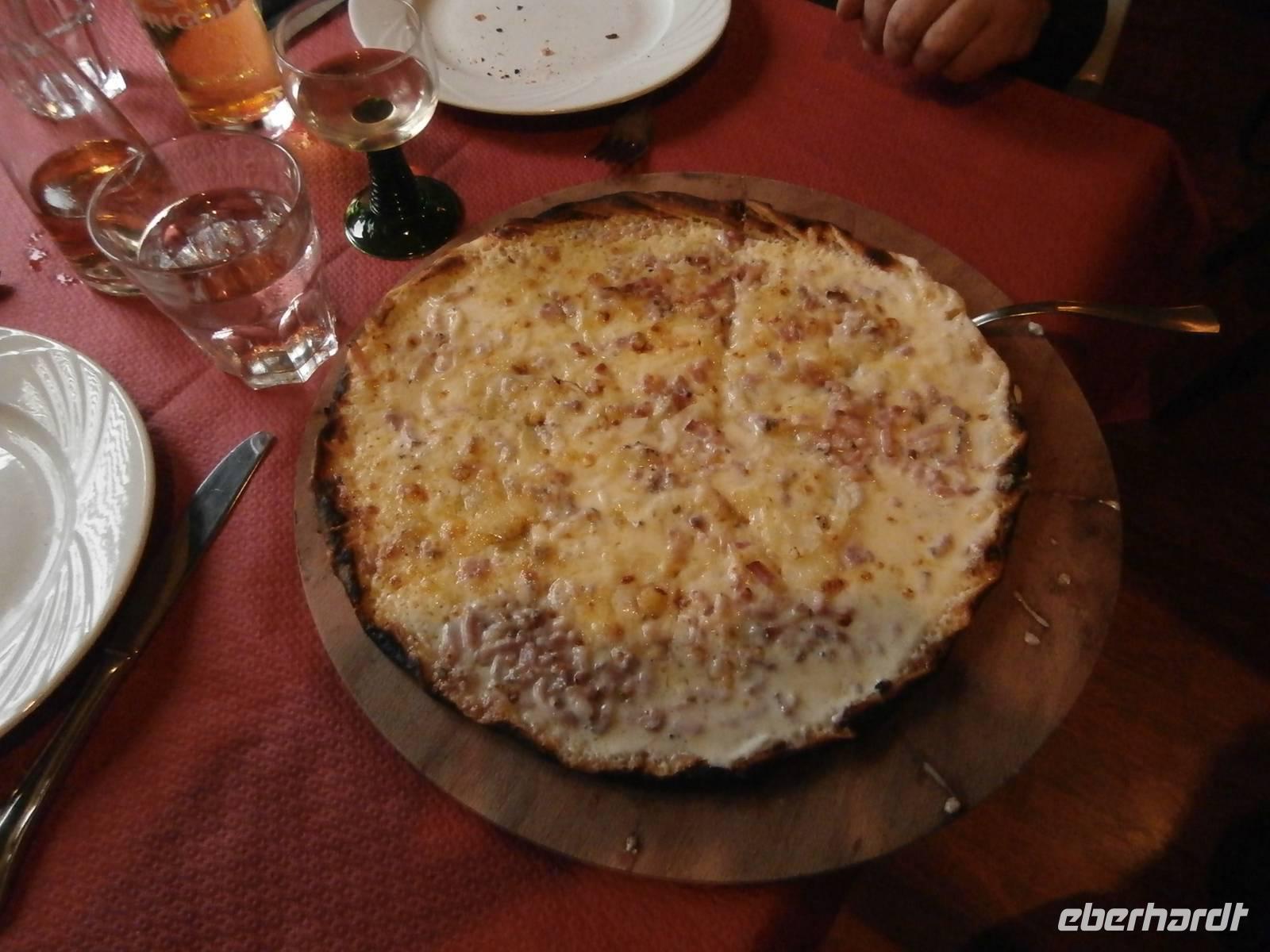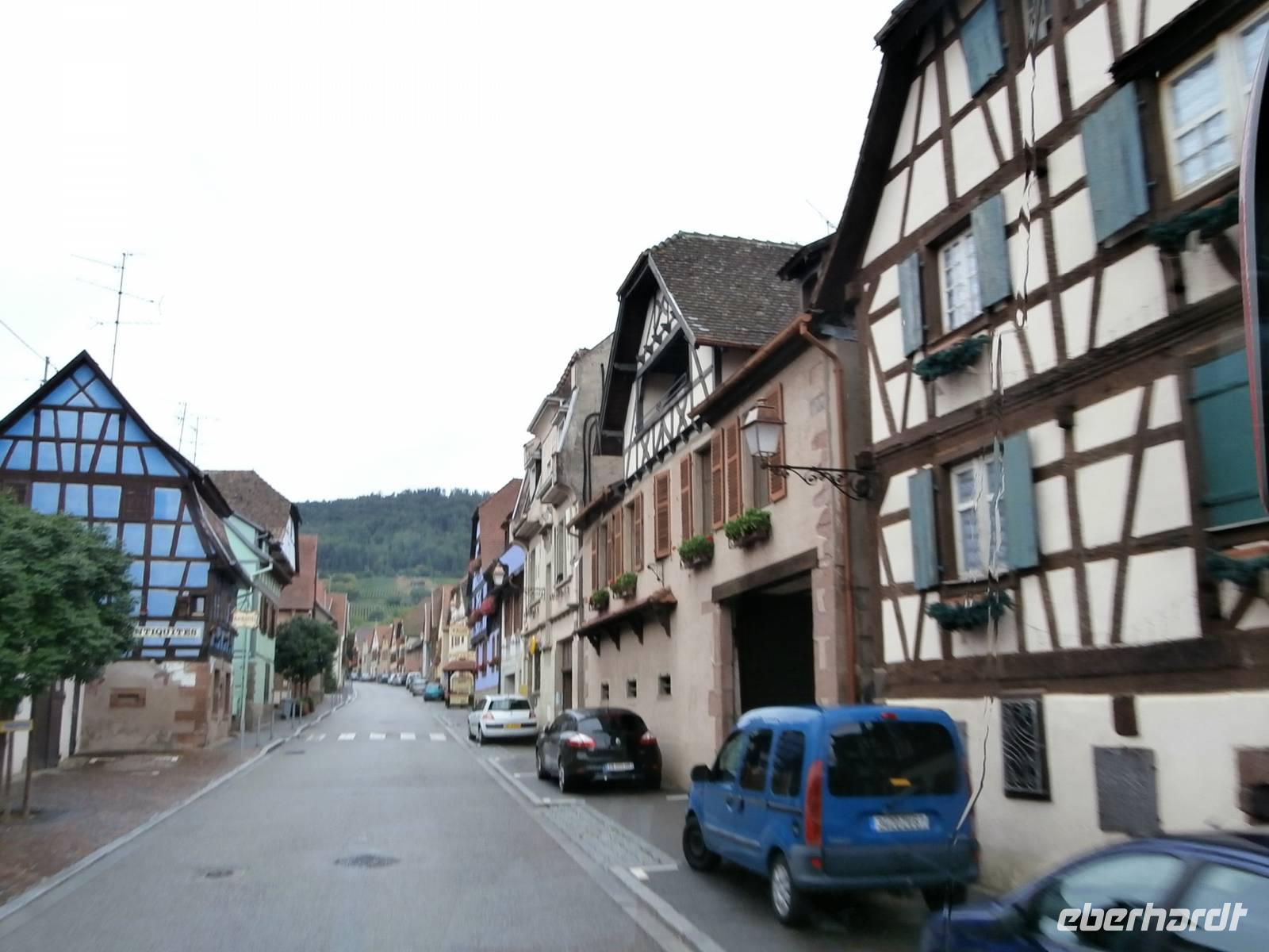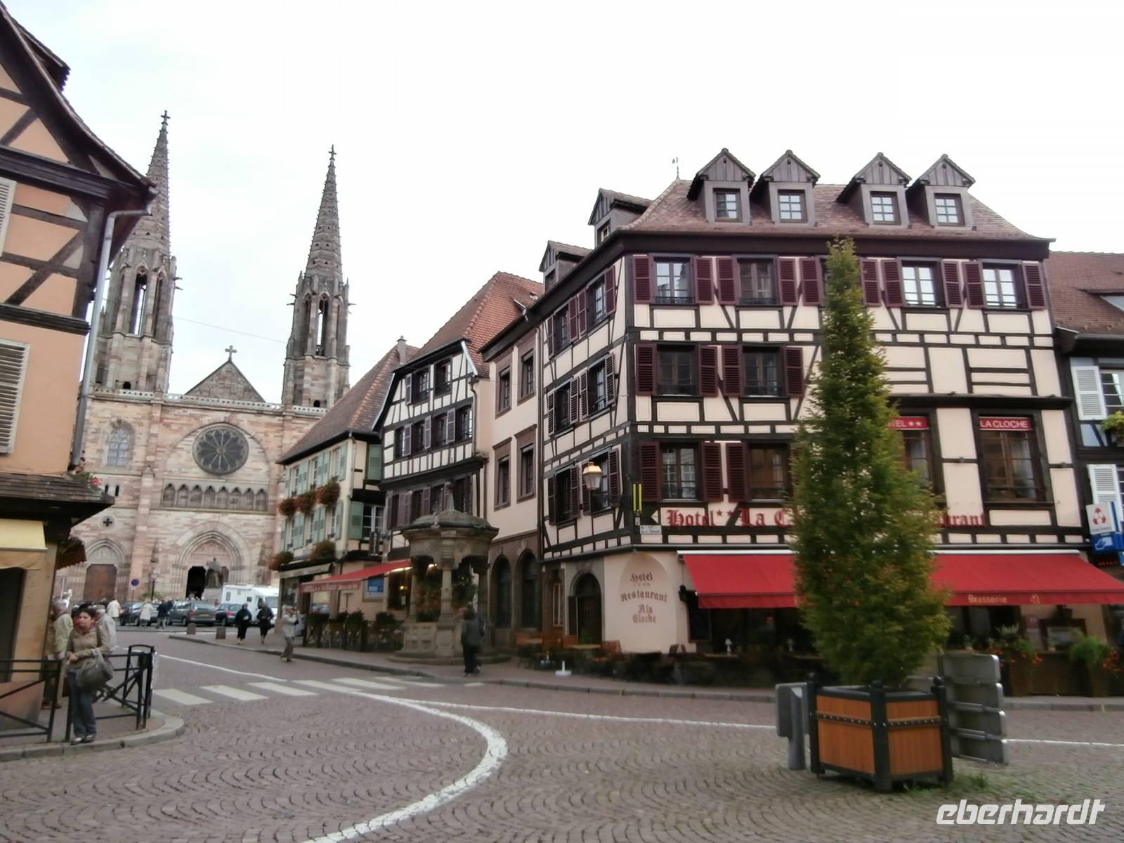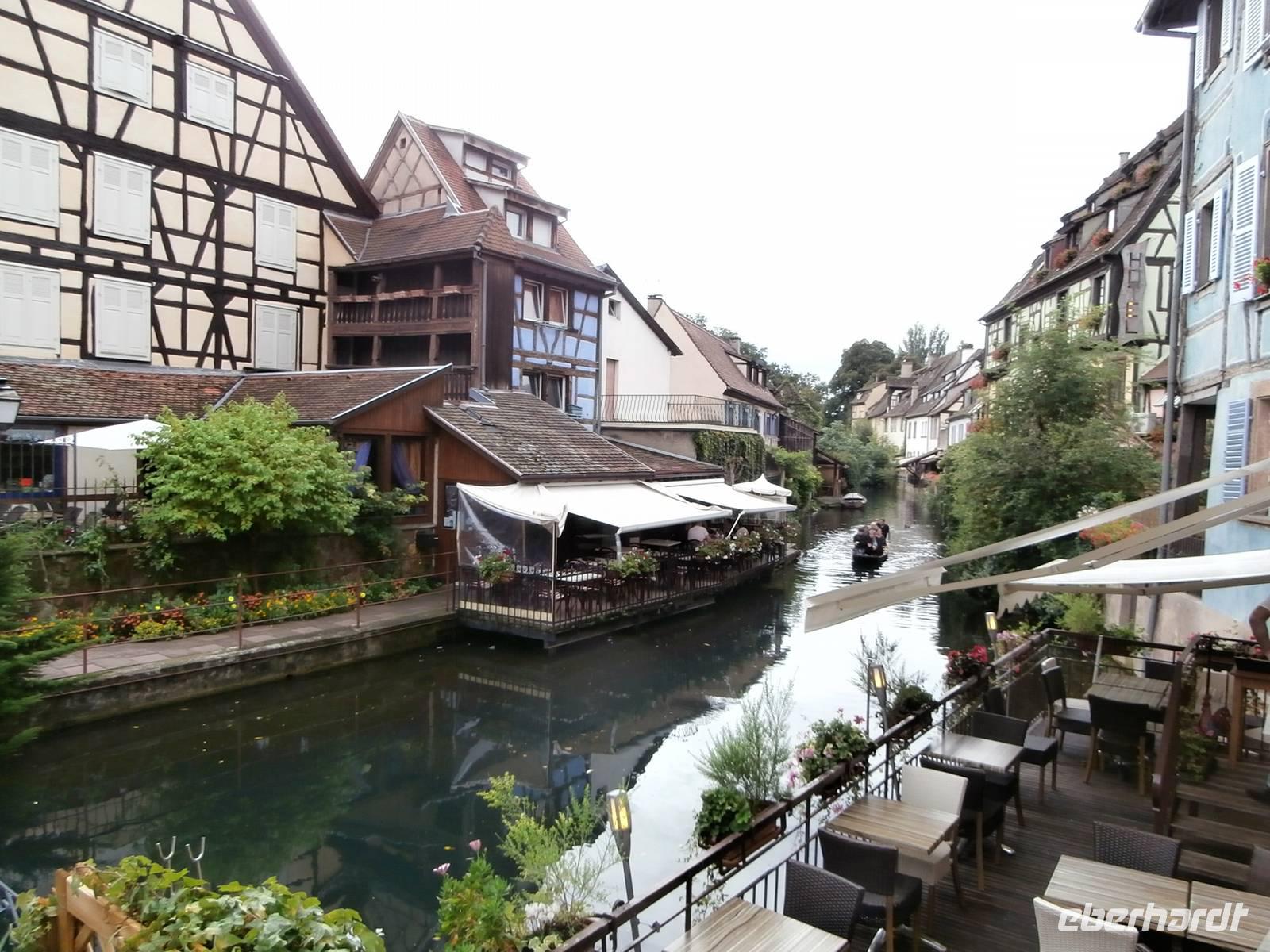 Bei leichten Nieselregen starten wir am Vormittag zur Fahrt nach Colmar, wir sehen diese Stadt, in der Bartholdi das Licht der Welt erblickte, der Schöpfer der New Yorker Freiheitsstatue. Das Museum Unterlinden mit dem Isenheimer Altar wird von vielen Reisegästen besucht. Ein besonderes Plätzchen befindet sich am Fluss, das Klein Venedig von Colmar „Petite Venise". Kleine Boote fahren auf dem Lauch dahin und es ist echt eine schöne Art diese Stadt so kennen zu lernen. Zurück geht's gemeinsam durchs Gerberviertel vorbei an vielen kleinen Restaurants, Fachwerkhäusern, Renaissancebauten und allgegenwärtig ist dieser fantastische Blumenschmuck. Am Nachmittag geht's entlang der Elsässischen Weinstraße nach Riquewihr und Ribeauville, zwei ganz schöne Weindörfer mit Weinstuben, mit Blumen umrankten Fachwerkhäusern, gemütliche Atmosphäre spüren wir an jeder Ecke und immer wieder einsetzender Regen kann uns nichts anhaben, wir sind vorbereitet. In Bergheim liegt an unserer Strecke ein deutscher Soldatenfriedhof, den wir noch vor Ankunft in Kintzheim aufsuchen. In der Auberge St. Martin werden wir dann zum großen Essen erwartet. Drei verschiedene Sorten des köstlichen Flammkuchens lassen wir uns richtig gut schmecken, krönender Abschluss ist der Flammkuchen belegt mit Apfel und flambiert mit Alkohol, einfach nur lecker. Sehr satt und gut gelaunt kehren wir spät ins Hotel zurück.