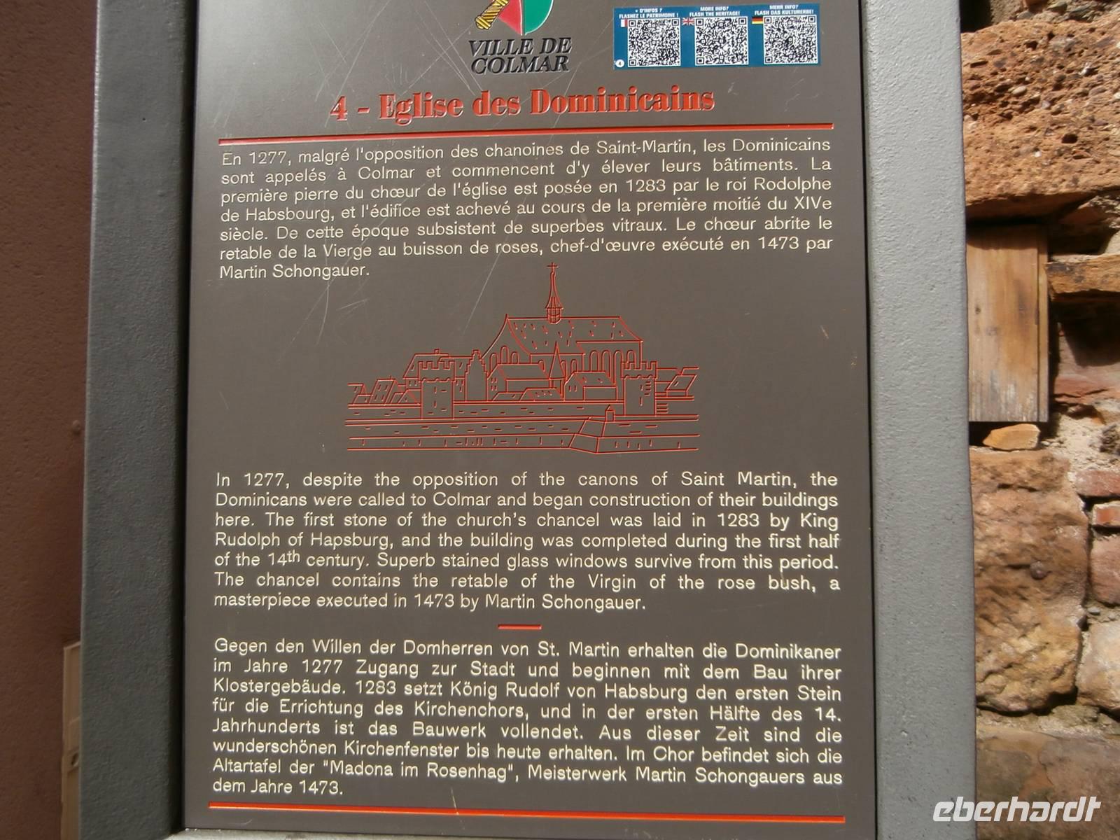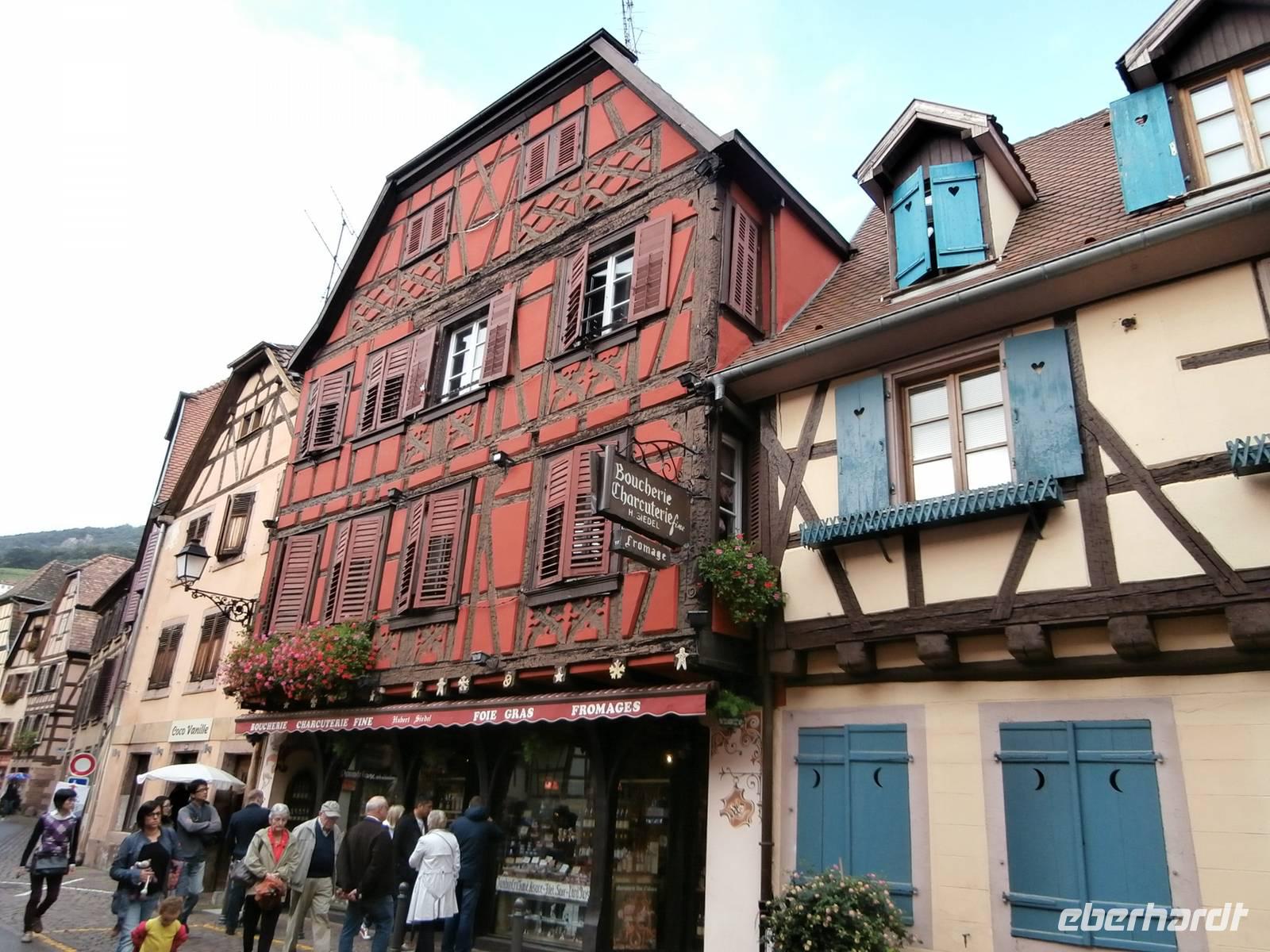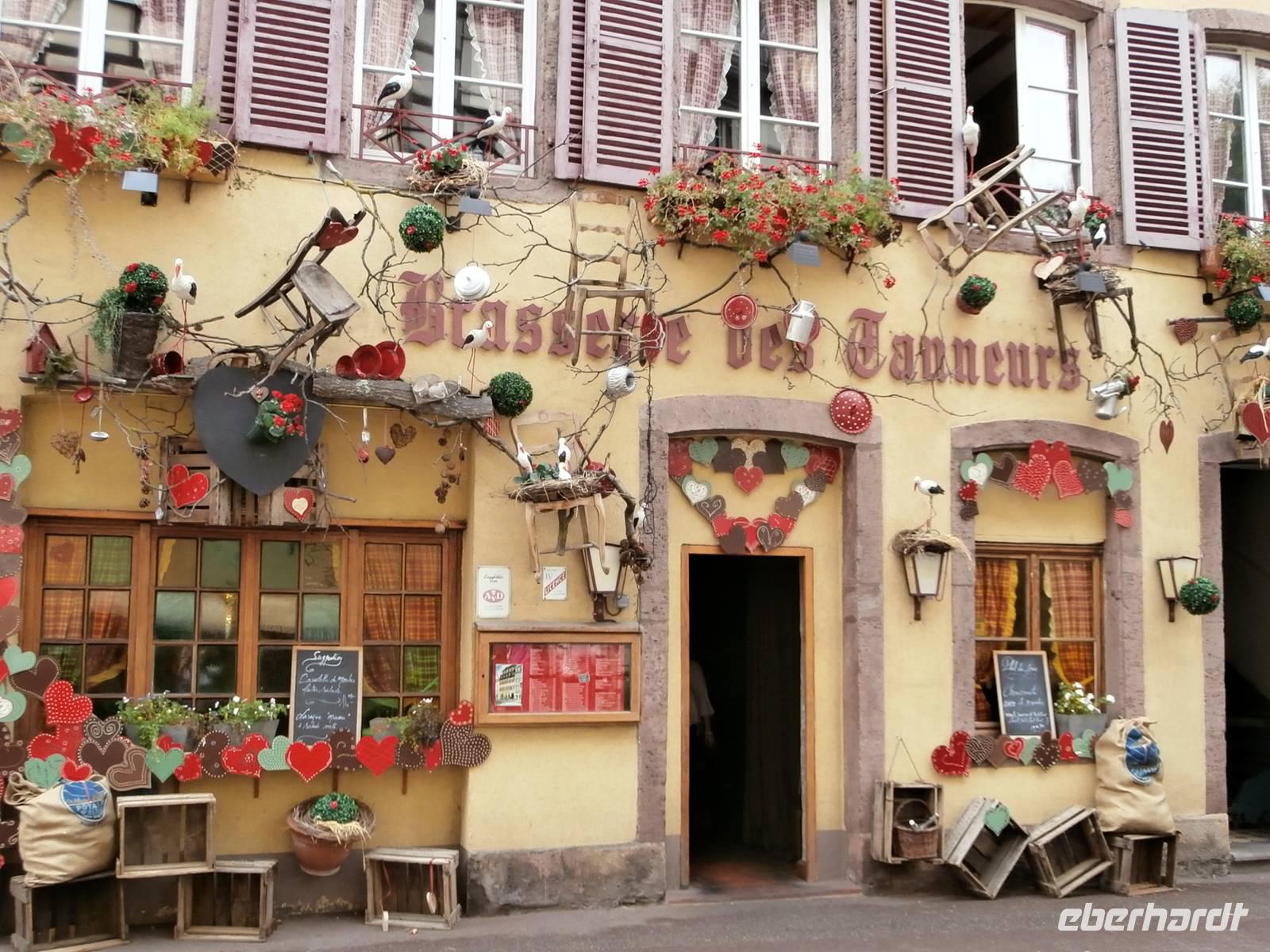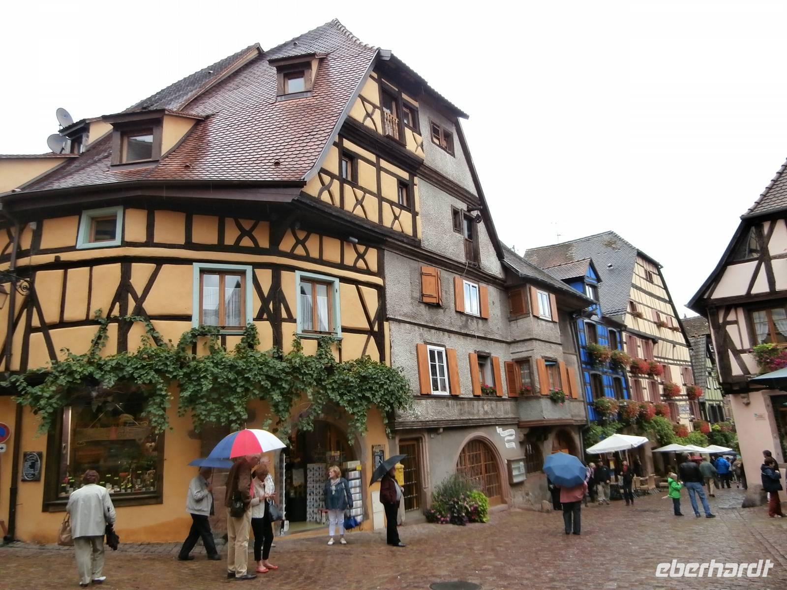 Bei leichten Nieselregen starten wir am Vormittag zur Fahrt nach Colmar, wir sehen diese Stadt, in der Bartholdi das Licht der Welt erblickte, der Schöpfer der New Yorker Freiheitsstatue. Das Museum Unterlinden mit dem Isenheimer Altar wird von vielen Reisegästen besucht. Ein besonderes Plätzchen befindet sich am Fluss, das Klein Venedig von Colmar „Petite Venise". Kleine Boote fahren auf dem Lauch dahin und es ist echt eine schöne Art diese Stadt so kennen zu lernen. Zurück geht's gemeinsam durchs Gerberviertel vorbei an vielen kleinen Restaurants, Fachwerkhäusern, Renaissancebauten und allgegenwärtig ist dieser fantastische Blumenschmuck. Am Nachmittag geht's entlang der Elsässischen Weinstraße nach Riquewihr und Ribeauville, zwei ganz schöne Weindörfer mit Weinstuben, mit Blumen umrankten Fachwerkhäusern, gemütliche Atmosphäre spüren wir an jeder Ecke und immer wieder einsetzender Regen kann uns nichts anhaben, wir sind vorbereitet. In Bergheim liegt an unserer Strecke ein deutscher Soldatenfriedhof, den wir noch vor Ankunft in Kintzheim aufsuchen. In der Auberge St. Martin werden wir dann zum großen Essen erwartet. Drei verschiedene Sorten des köstlichen Flammkuchens lassen wir uns richtig gut schmecken, krönender Abschluss ist der Flammkuchen belegt mit Apfel und flambiert mit Alkohol, einfach nur lecker. Sehr satt und gut gelaunt kehren wir spät ins Hotel zurück.