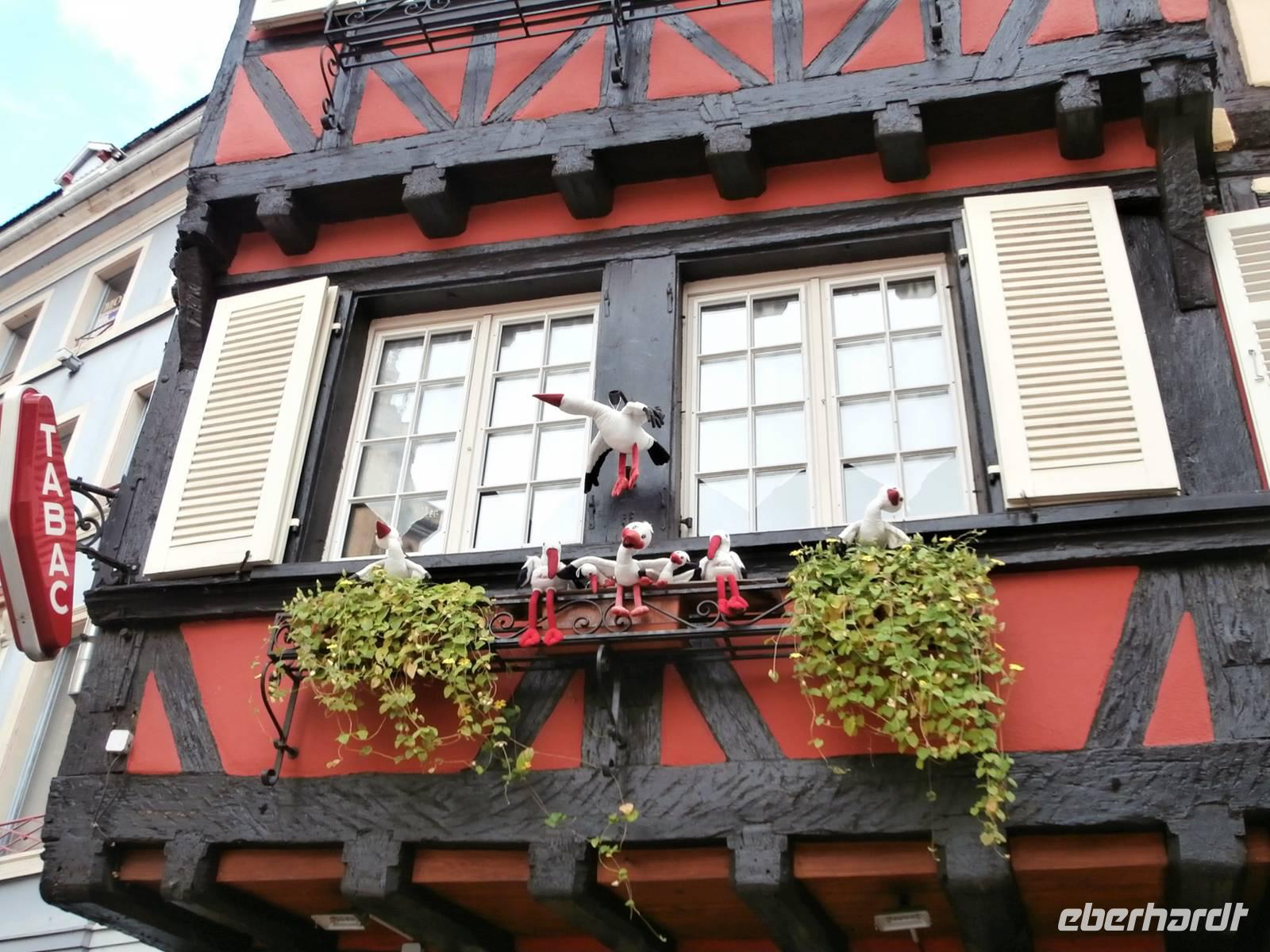 Wir starten unsere "Elsass Tour" in Dresden bei frischen Temperaturen, die im Verlauf des Tages nicht unbedingt steigen, eine sehr schöne Landschaft präsentiert sich uns und die Regenschauer sind nicht von langer Dauer. Unsere Fahrt führt uns auch durch Frankfurt am Main, denn ein Reisegast steigt am Hauptbahnhof zu, eine kleine Stadtrundfahrt durch die Bankenmetropole gibt es somit gratis. Die Ankunft im Hotel in Strasbourg fällt feucht aus, aber unser Gepäck ist schnell ausgeladen, so dass keiner lange warten muss. Am Abend gehen wir noch gemeinsam durch den Park der Orangerie zum Essen. Auf dem Dach der Bowlingstätte fühlen sich die heimisch gewordenen Störche wohl, sie bleiben auch im Winter im Elsass, finden hier genügend Futter, wenn auch mit Unterstützung der Menschen.