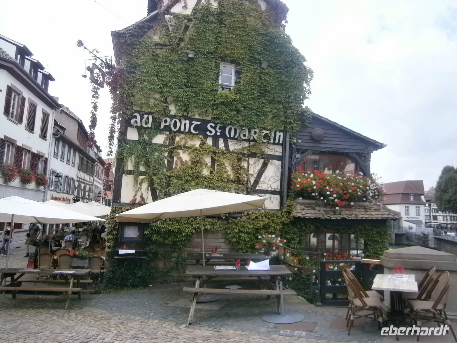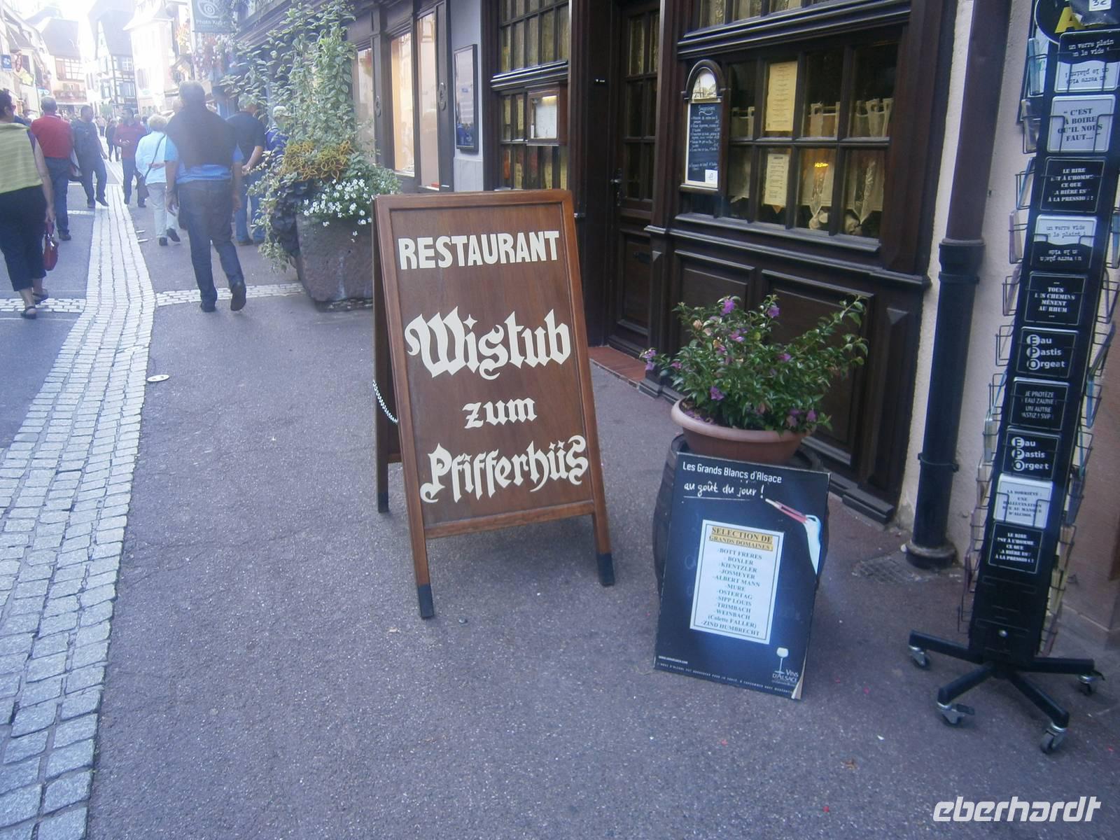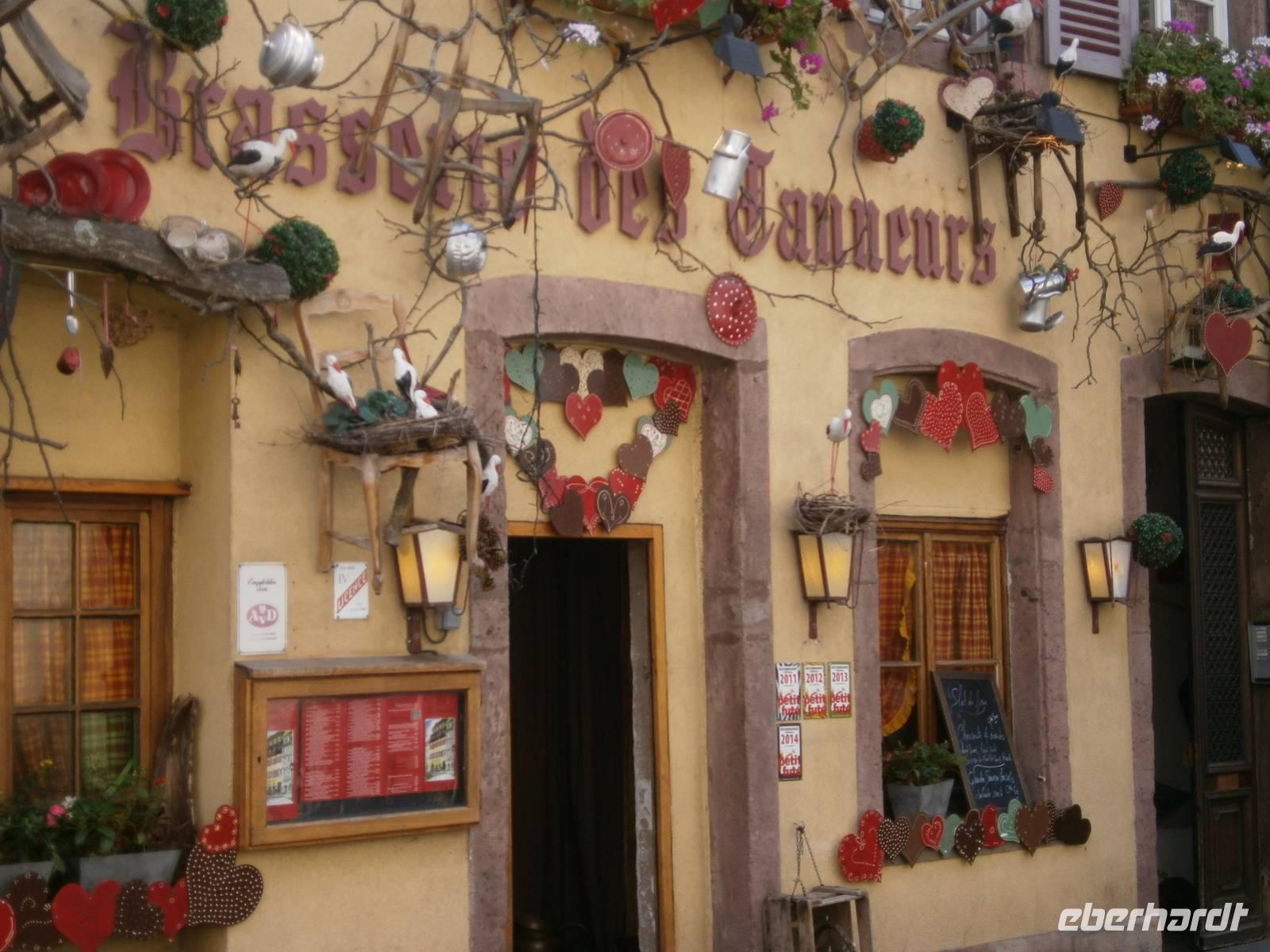 In Kintzheim erwartete uns in der „Auberge St.Martin", einem sehr gut besuchten Restaurant, ein typisch Elsässisches Flammkuchenessen. So wurden mehrere Flammkuchen deftig , wie auch süß serviert. Dazu schmeckt natürlich ein typisch Elsässer Weißwein, wie Riesling, Edelzwicker oder Gewürztraminer.