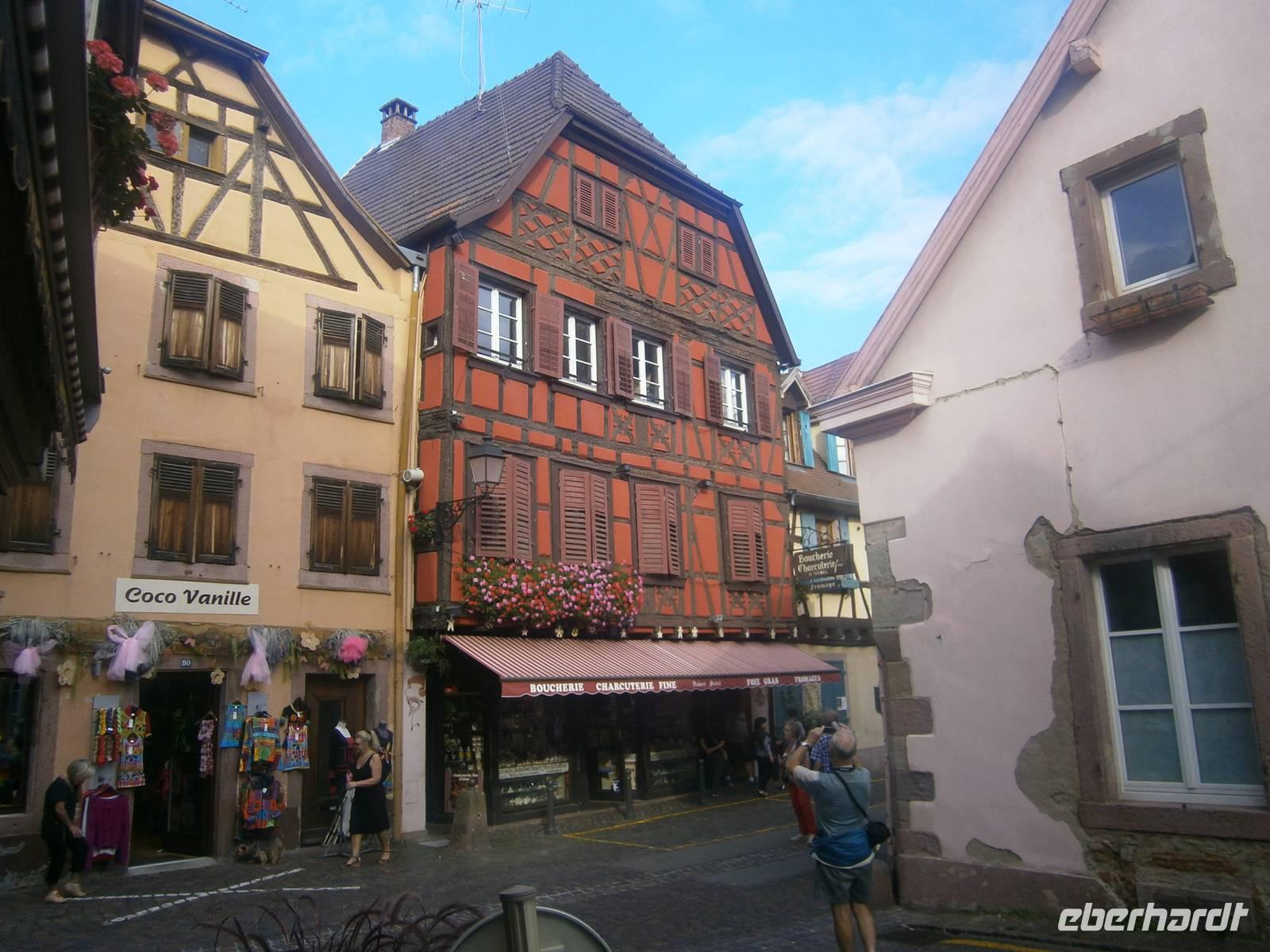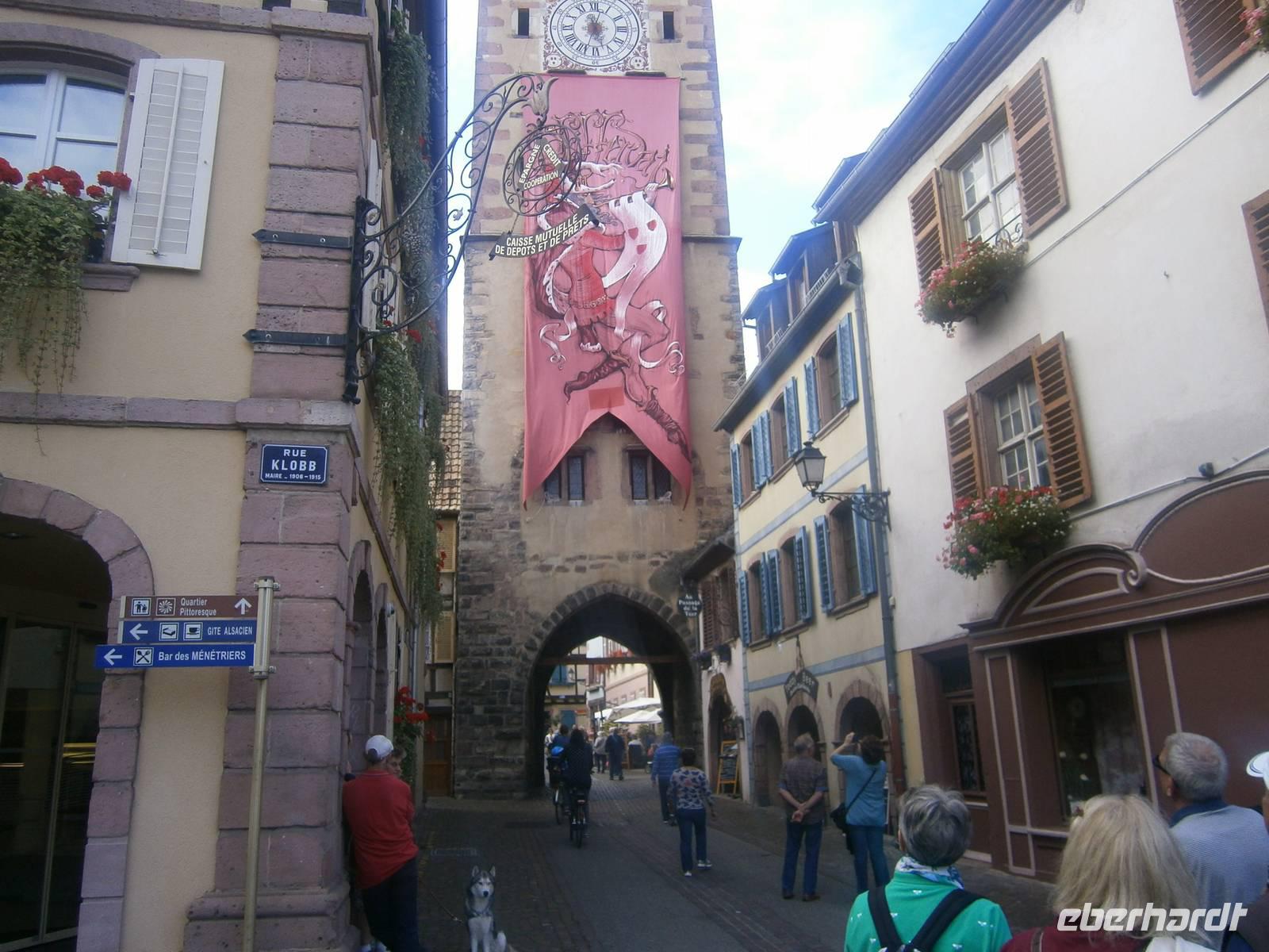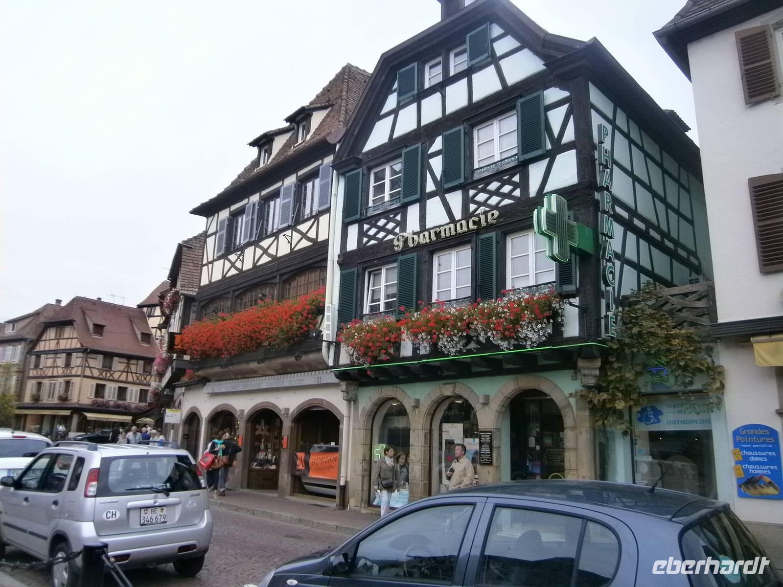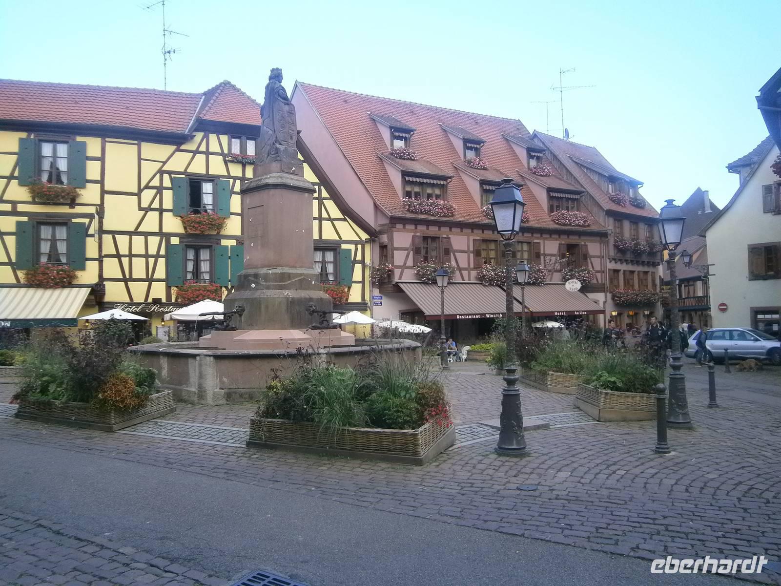 An diesem Sonntag hatten wir Glück, da ein Herbstmarkt aufgebaut war, der die Ergebnisse der Ernte zeigte und zum Verkauf anbot. Auch die Markthalle hatte geöffnet, so dass sich unsere Gäste dort umschauen und einkaufen konnten. Nach der entsprechenden Freizeit in dieser schönen Stadt fuhren wir zu zwei kleinen wunderschönen Weinorten an der Elsässer Weinstraße. Die Stadt Riquewihr, eines der „Schönsten Dörfer Frankreichs" und die „Sackpfeiferstadt" Ribeauville empfingen uns bei schönem Wetter und mit jeder Menge Besucher. Die alten Fachwerkhäuser beider Orte, mit ihren Blumenschmuck, ihren Auslegern und unzähligen Möglichkeiten der Einkehr muß man einfach gesehen haben. Es wurde gegessen, getrunken, kommuniziert und Einkäufe getätigt. In jeden dieser zwei Städtchen hatten die Mitglieder unserer Reisegruppe einen längeren Aufenthalt.