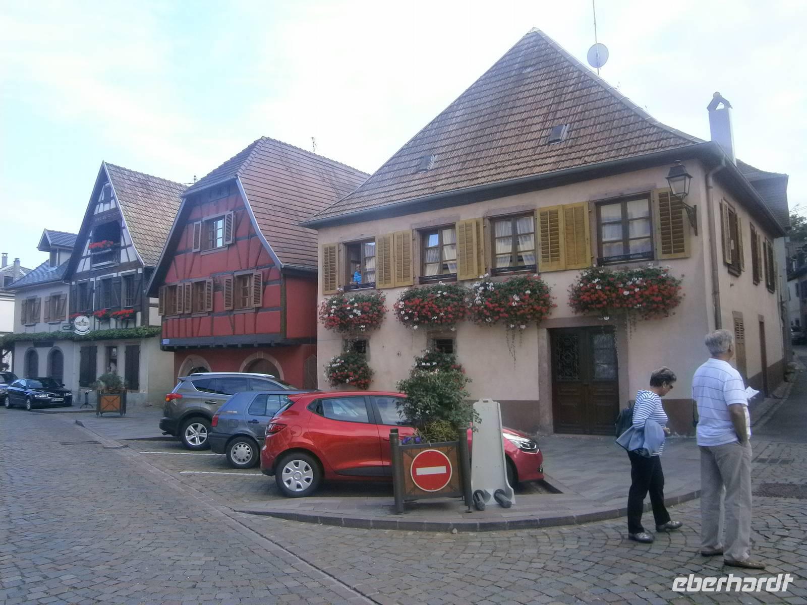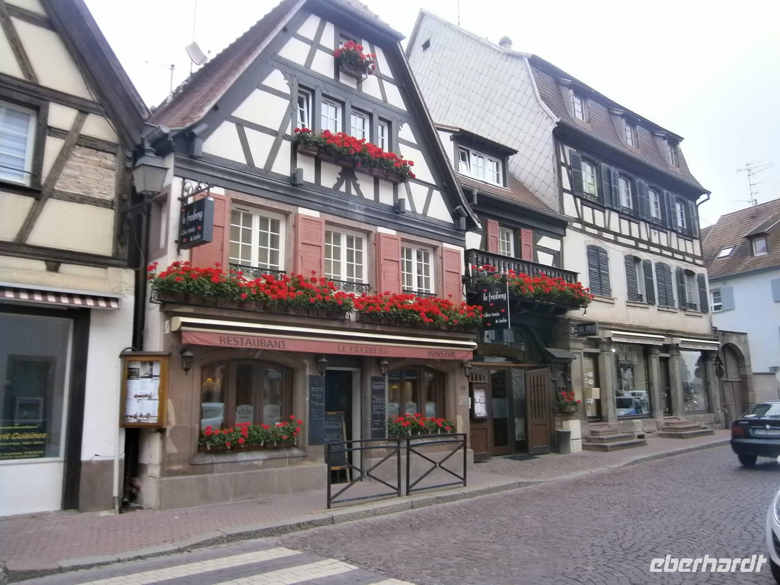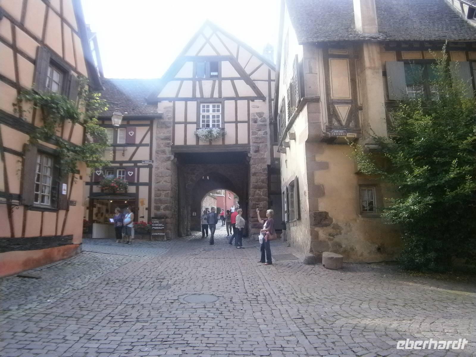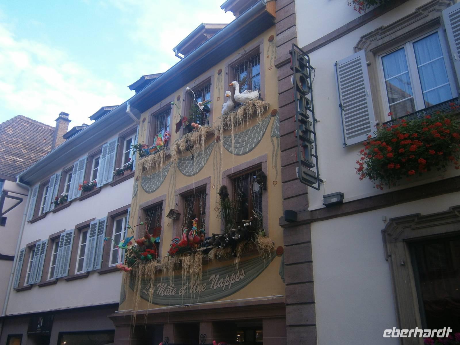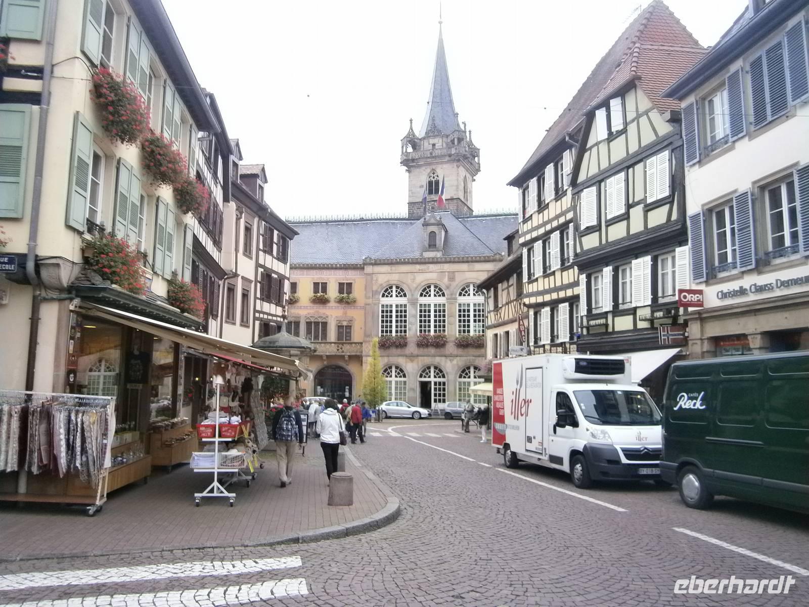 An diesem Sonntag hatten wir Glück, da ein Herbstmarkt aufgebaut war, der die Ergebnisse der Ernte zeigte und zum Verkauf anbot. Auch die Markthalle hatte geöffnet, so dass sich unsere Gäste dort umschauen und einkaufen konnten. Nach der entsprechenden Freizeit in dieser schönen Stadt fuhren wir zu zwei kleinen wunderschönen Weinorten an der Elsässer Weinstraße. Die Stadt Riquewihr, eines der „Schönsten Dörfer Frankreichs" und die „Sackpfeiferstadt" Ribeauville empfingen uns bei schönem Wetter und mit jeder Menge Besucher. Die alten Fachwerkhäuser beider Orte, mit ihren Blumenschmuck, ihren Auslegern und unzähligen Möglichkeiten der Einkehr muß man einfach gesehen haben. Es wurde gegessen, getrunken, kommuniziert und Einkäufe getätigt. In jeden dieser zwei Städtchen hatten die Mitglieder unserer Reisegruppe einen längeren Aufenthalt.