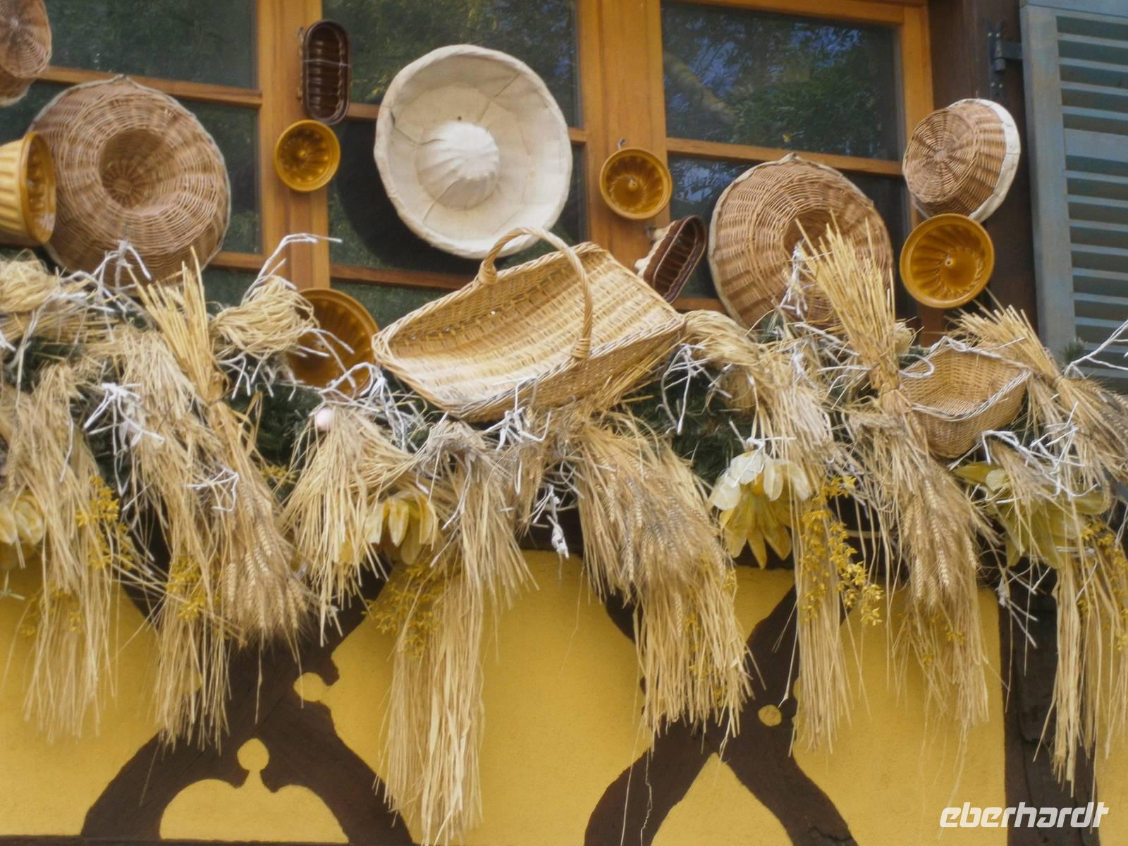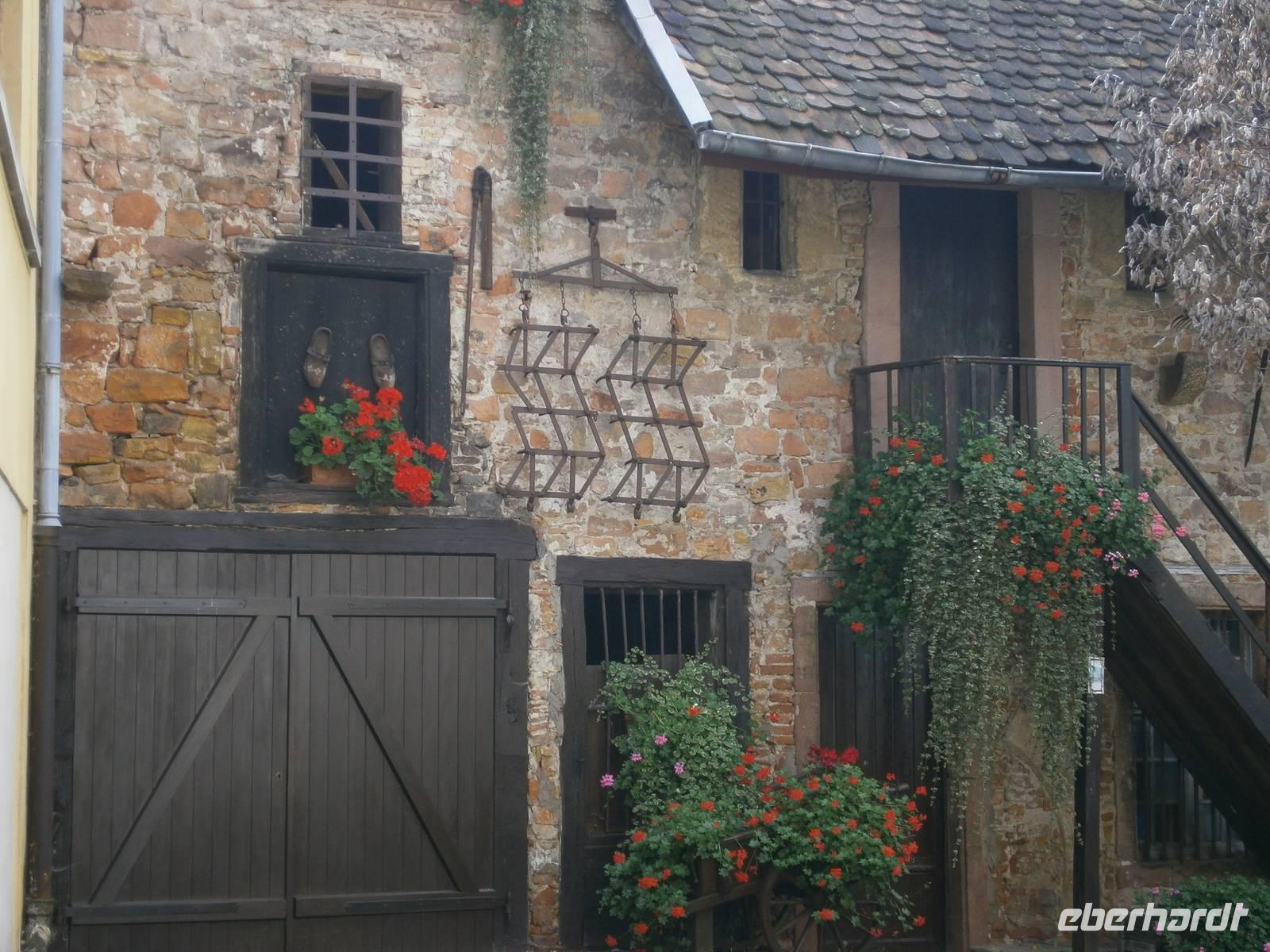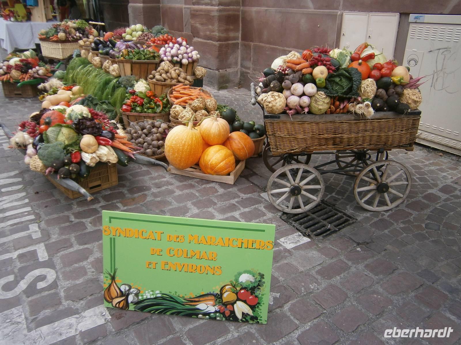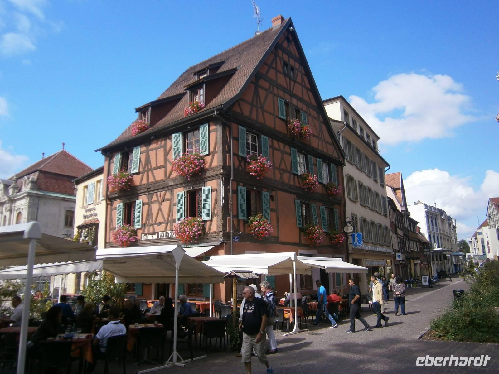 An diesem Sonntag hatten wir Glück, da ein Herbstmarkt aufgebaut war, der die Ergebnisse der Ernte zeigte und zum Verkauf anbot. Auch die Markthalle hatte geöffnet, so dass sich unsere Gäste dort umschauen und einkaufen konnten. Nach der entsprechenden Freizeit in dieser schönen Stadt fuhren wir zu zwei kleinen wunderschönen Weinorten an der Elsässer Weinstraße. Die Stadt Riquewihr, eines der „Schönsten Dörfer Frankreichs" und die „Sackpfeiferstadt" Ribeauville empfingen uns bei schönem Wetter und mit jeder Menge Besucher. Die alten Fachwerkhäuser beider Orte, mit ihren Blumenschmuck, ihren Auslegern und unzähligen Möglichkeiten der Einkehr muß man einfach gesehen haben. Es wurde gegessen, getrunken, kommuniziert und Einkäufe getätigt. In jeden dieser zwei Städtchen hatten die Mitglieder unserer Reisegruppe einen längeren Aufenthalt.