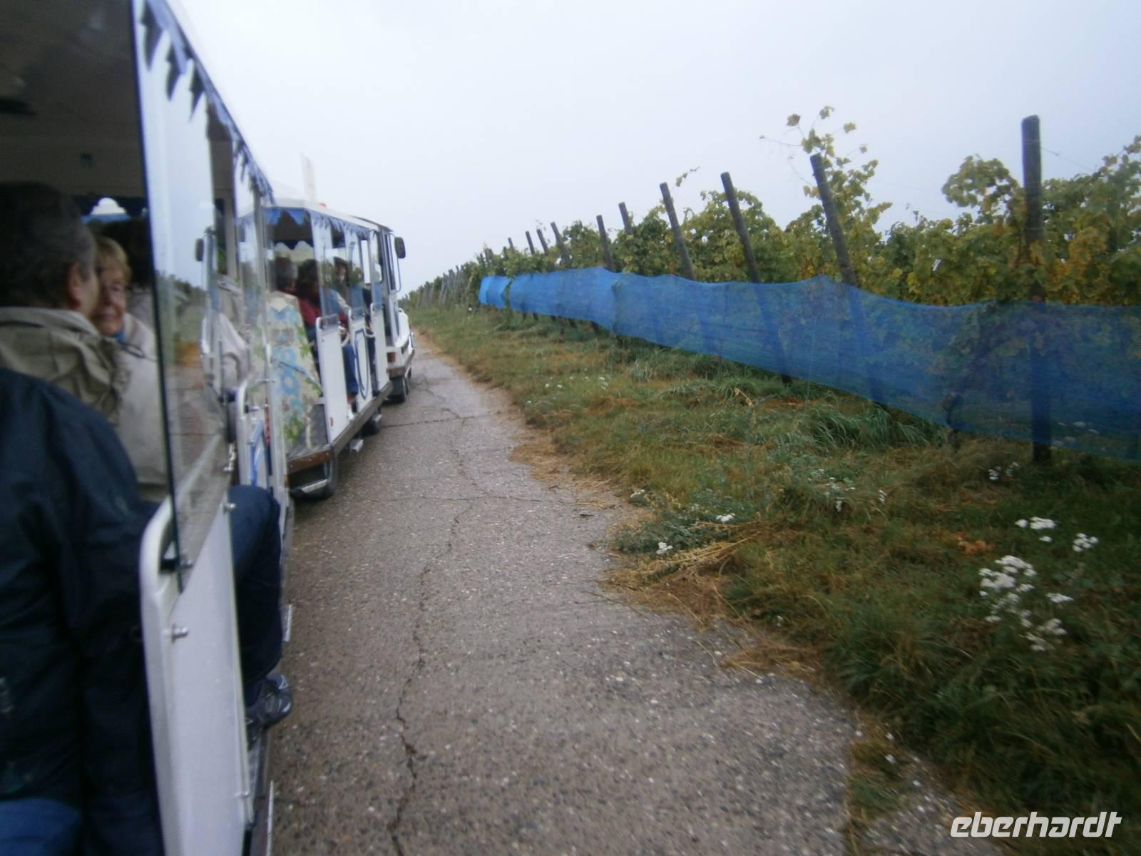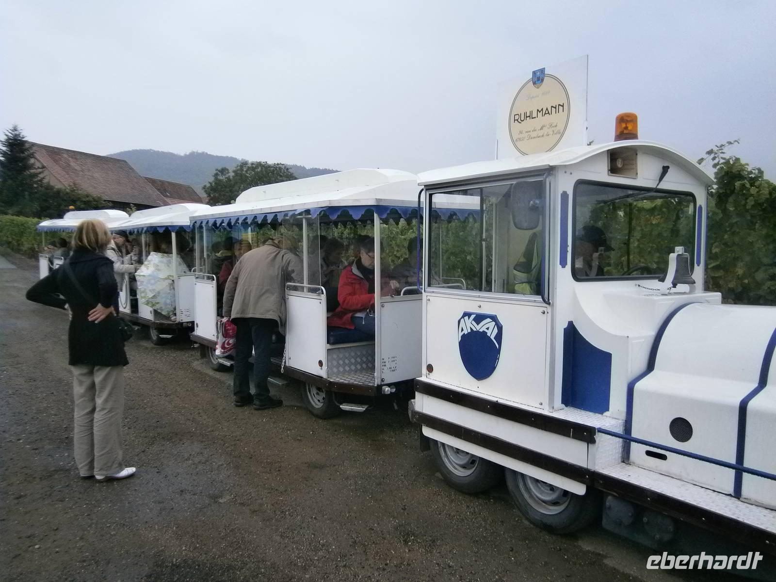 Nach individuellen Bummel auf dem Klosterberg setzten wir unsere Fahrt über Le Hohwald und Andlau fort. Durch malerische Weinorte und vorbei an Weinfeldern erreichten wir Dambach la Ville um in der Kellerei Ruhlmann am Weinseminar teilzunehmen. Unser lieber Emile zeigte zuerst den Weinkeller und erläuterte einiges zur Herstellung der edlen Tropfen. Dann ging es mit einem kleinen Zug in die Weinberge. Bei dieser Fahrt erfuhren die Gäste vieles zum Ort und auch zu den Weinreben, Lagen und zur Geschichte. Anschließend hielt der Zug am Probierraum, der sich in einem Keller mitten im malerischen Ortszentrum befindet. Zur Verkostung standen sieben Sorten Wein, mit den entsprechenden Erläuterungen dazu. Gereicht wurde auch eine Kostprobe von dem berühmten elsässischen Kougelhopf mit getrockneten Rosinen und ganzen Mandeln. Viele unserer Gäste nutzten anschließend die Möglichkeit etwas Wein mit nach Hause zu nehmen. Das Abendessen wurde in einem anderen Restaurant in der Innenstadt von Straßburg eingenommen.