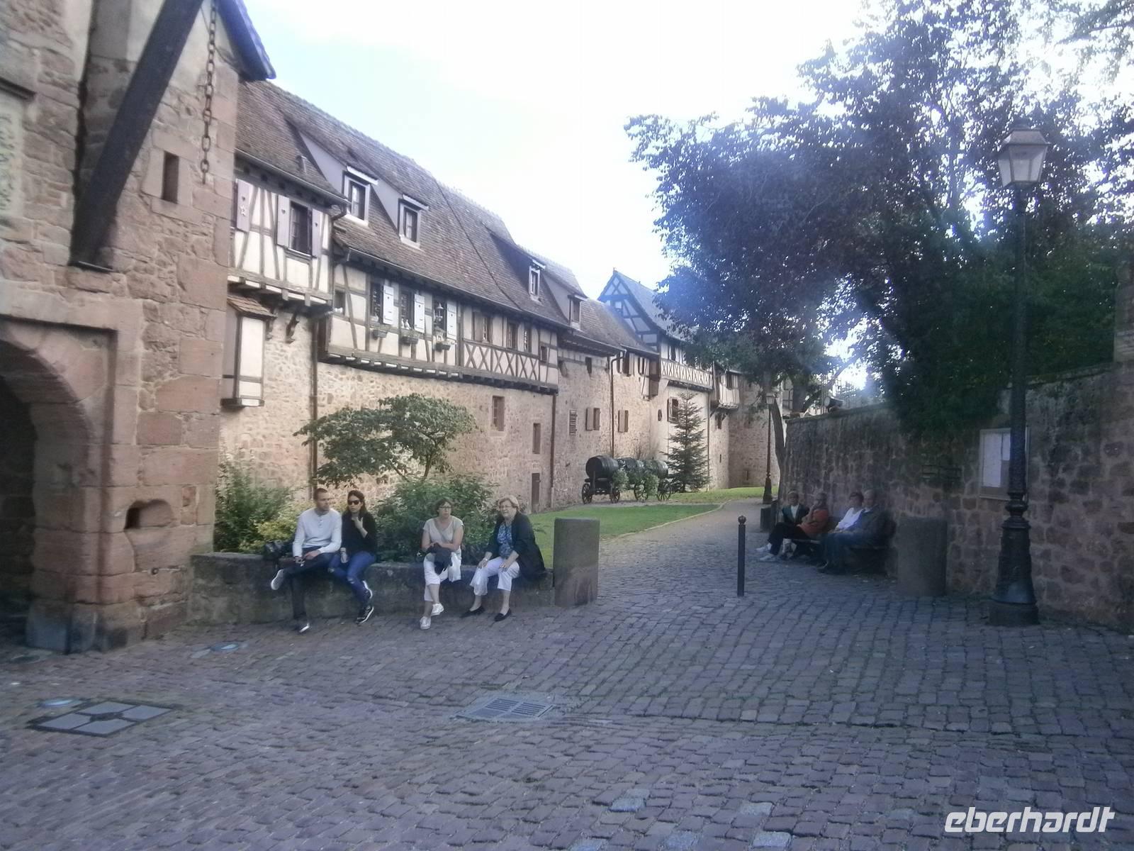 Ein weiterer Höhepunkt erwartete die Mitglieder der Reisegruppe am nächsten Tag. Die Fahrt führte zuerst zur Hochkönigsburg. Die gewaltigen Mauern und Türme ragen 755 Meter hoch auf einem östlichen Ausläufer der Vogesen empor. In einer sehr guten Führung durch eine junge Dame erfuhren die Gäste, dass die Burg, die1147 errichtet, 1633 durch die Schweden eingeäschert wurde. Die Ruine kam in den Besitz der Stadt Selestat, die sie 1899 Kaiser Wilhelm II schenkte. Der ließ sie, trotz heftiger Prodeste, im Stil einer Ritterburg des späten 15.Jh. wieder aufbauen. Unter Leitung des Architekten Bodo Ebhardt erfolgte die Restaurierung von1900 bis 1908. Der Kaiser wollte daraus keine Ritterburg machen, es sollte ein Museum des Mittelalters werden. Er wollte sie auch zum Symbol des wiederhergestellten Kaiserreichs und der germanischen Vergangenheit des Elsaß machen.