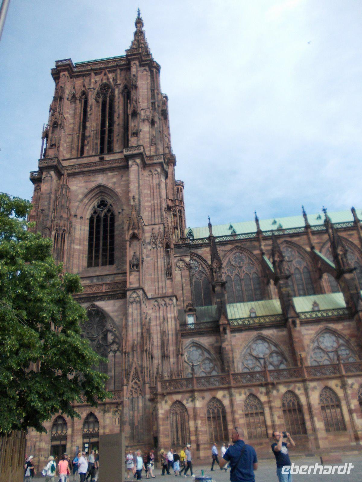 Nun wurde es Zeit für einen Stadtspaziergang. In der Nähe des beliebten Viertel Petite France stiegen wir aus dem Bus, vorbei an romantischen Fachwerkbauten, über kleine Brücken flanierten wir unter fachkundiger Führung auf den zentralen Platz in Straßburg, zur Kathedrale „Notre Dame". Was ein Sonntag in Straßburg bedeutet, merkten wir spätestens als wir 12 Uhr die Stadt mit einem Boot von der Il aus besichtigten. Über die Brücke schlängelten sich viele Besucher aus allen Nationen. Wir waren für diesen Moment zufrieden mit unserem geschützten Platz auf dem Wasser.