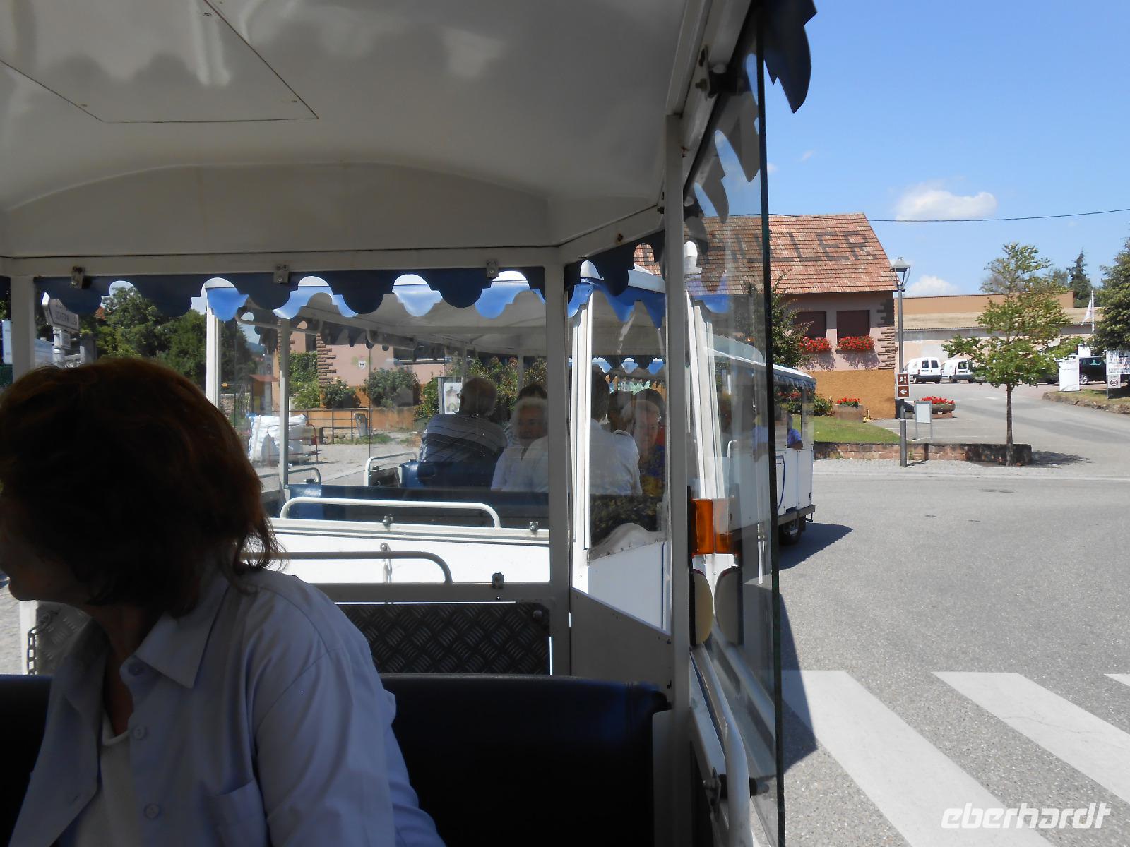 Anschließend besichtigten wir den wichtigstenPilgerort im Elsass: der „Odilienberg". Im 7. Jahrhundert gegründet, ist das Kloster heutzutage immer noch in Betrieb und bietet alles was das Herz begehrt um den Aufenthalt von Pilgern und Touristen angenehmer zu gestalten. Zusätzlich dazu ist die Sicht auf die elsässische Ebene sowie auf die Bergkette der Vogesen einfach atemberaubend! Am Nachmittag fuhren wir ein Teil der Weinstraße entlang zum Weingut „Ruhlmann" in „Dambach-la-Ville". Dort erwartete uns Emile. Er brachte uns drei Stunden lang Wissen über die Bedeutung und die wertigkeit der elsässischen Weine bei. Wir sahen zuerst die Produktionsstätten, wo das edle Getränk produziert wird, danach fuhren wir mit einer kleinen Bimmelbahn durch die Weinberge und durften am Ende nicht sieben sondern acht Weine verkosten. Ein himmlischer Tag!