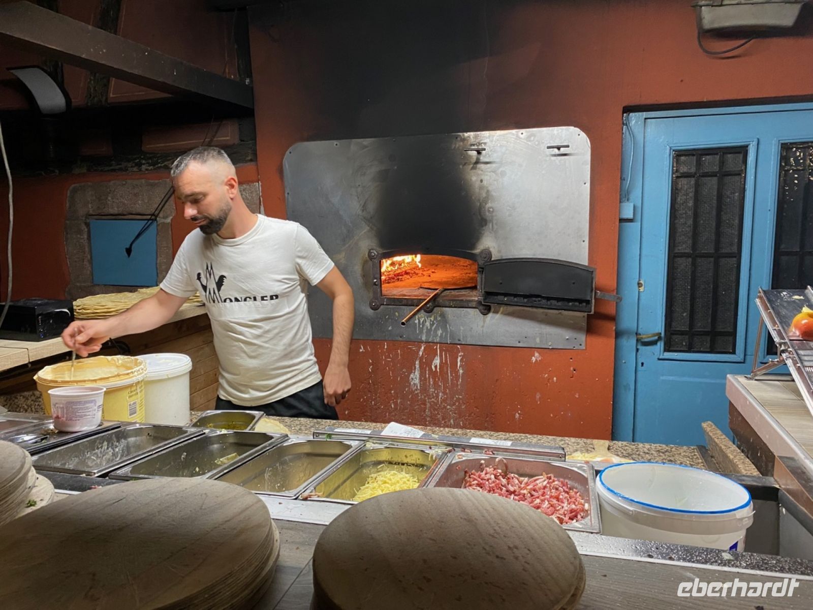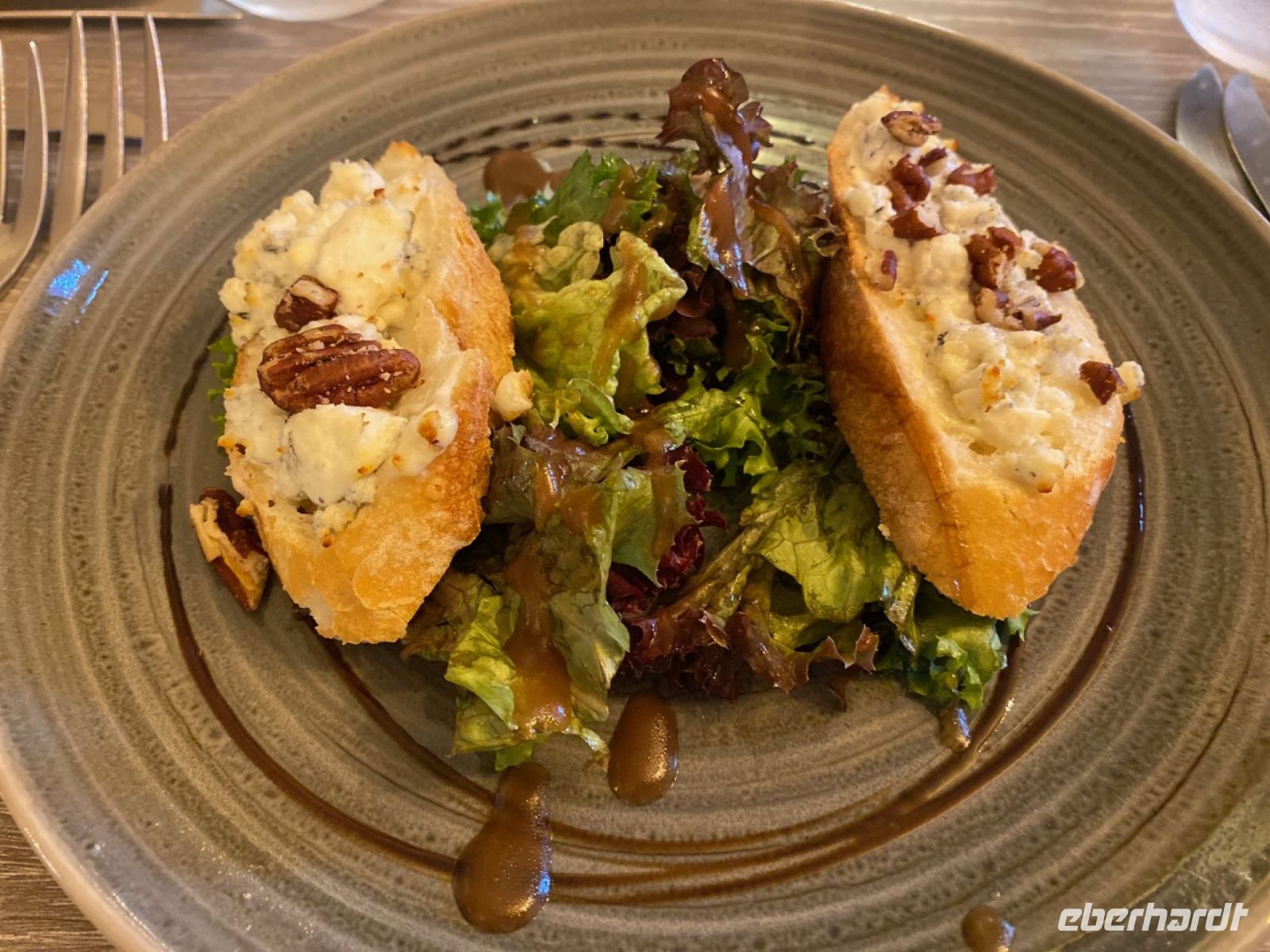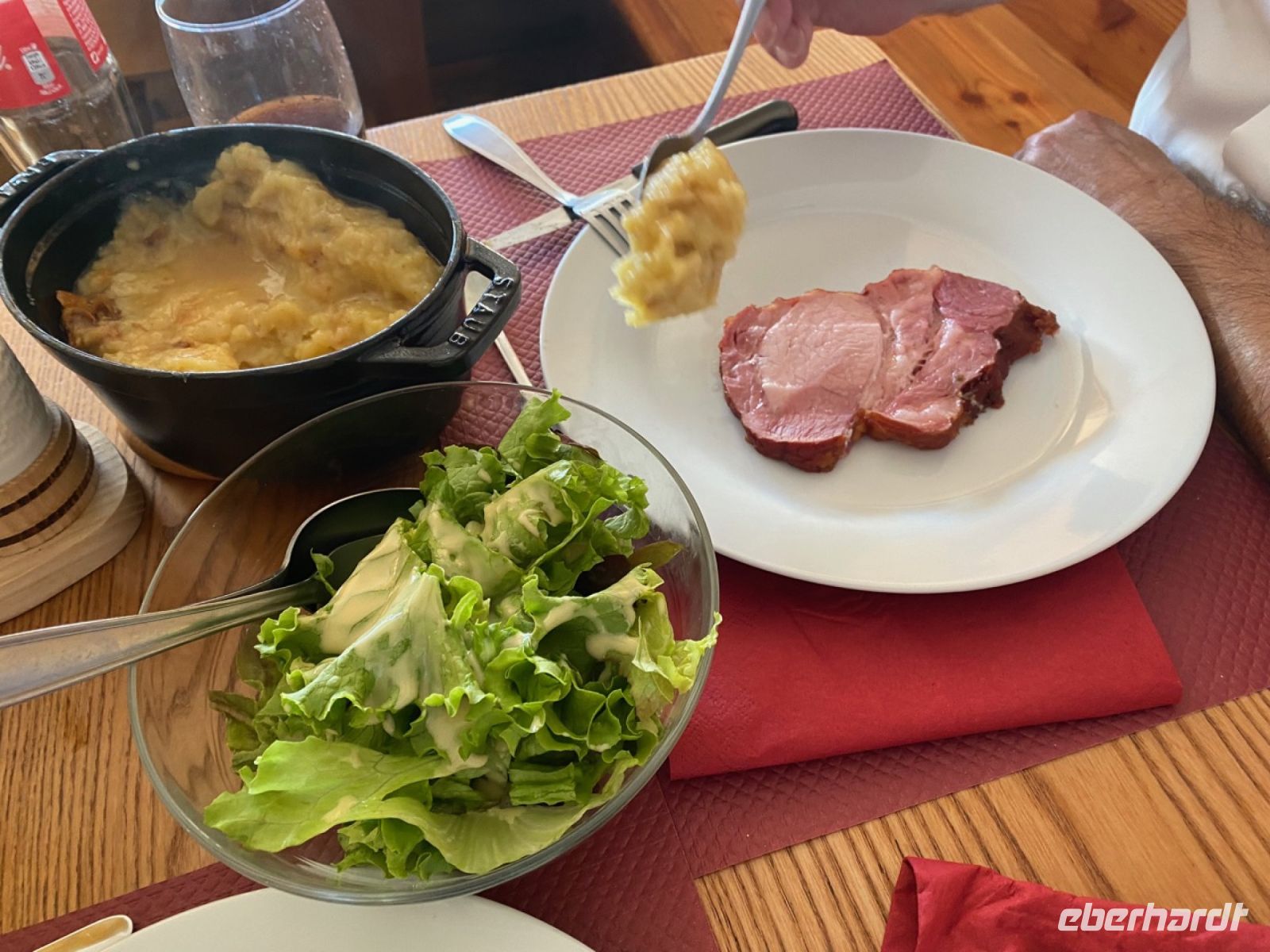 Was fehlt jetzt noch um das Elsass vollständig zu erleben? Natürlich der vorhin erwähnte Flammkuchen. In allen seinen Variationen wird uns heute ein mehrgängiges Menü serviert von der originalen Version über verschiedenste Käse-Variationen, unter anderem mit Munster Käse, den wir noch am nächsten Tag genauer kennen lernen werden, wird uns in Kintzheim in der Auberge Saint-Martin ein opulentes Mahl aufgetischt.