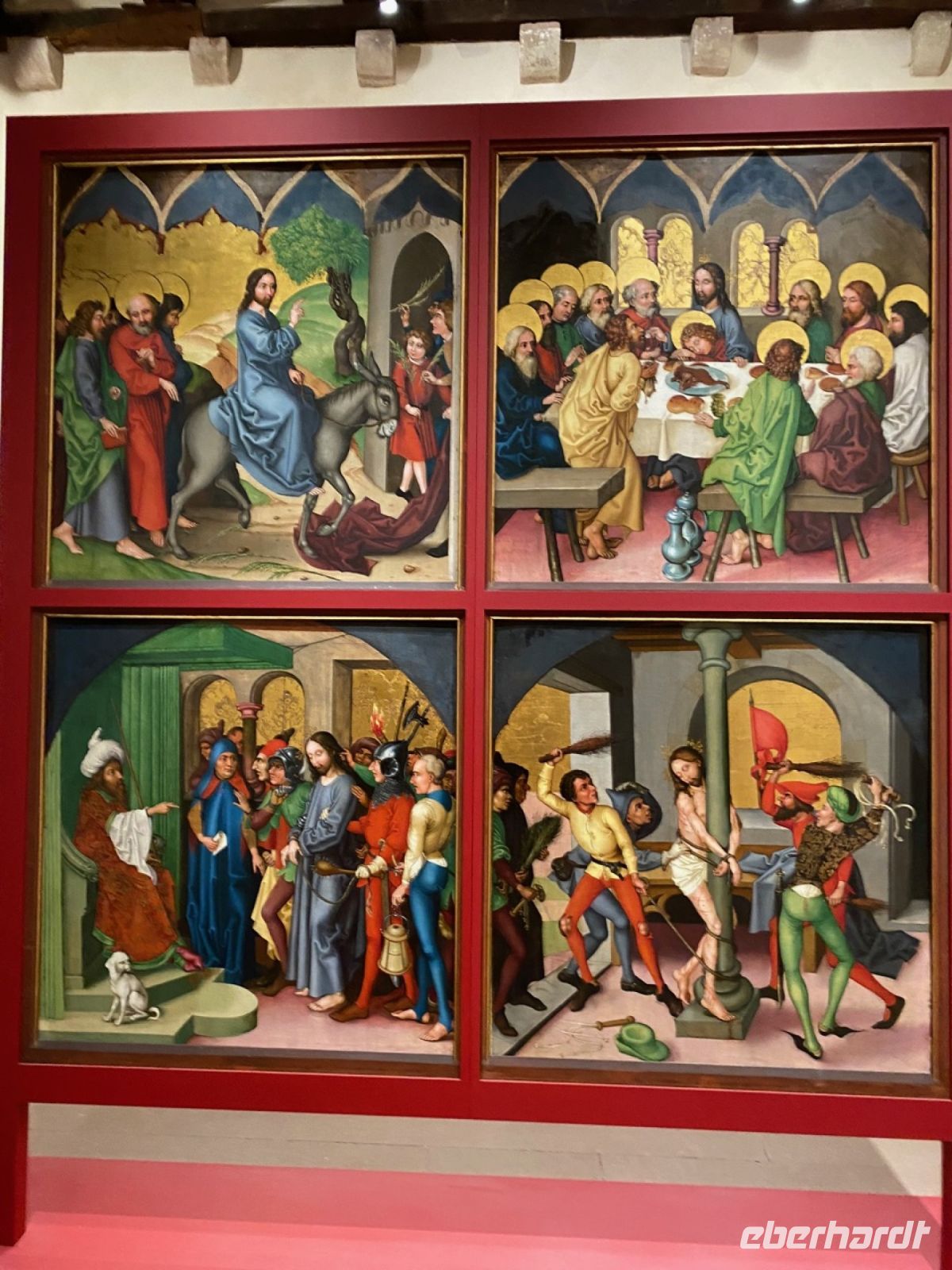 Hier ist eine gute Gelegenheit um auch die Qualität des täglichen Frühstücks sehr zu loben! Mit einem ebensolchen beginnt auch der heutige Tag. Heute ist Colmar unser erstes Ziel, die zweitgrößte Stadt im Elsass. Wir beginnen mit einer kurzen Orientierung im Ort und besuchen dann das Unterlinden Museum. Ein außergewöhnlicher Ort in einem ehemaligen Kloster, hier ist eine unglaubliche Vielfalt an Kunstschätzen von der Frühzeit bis zur Moderne zu finden.