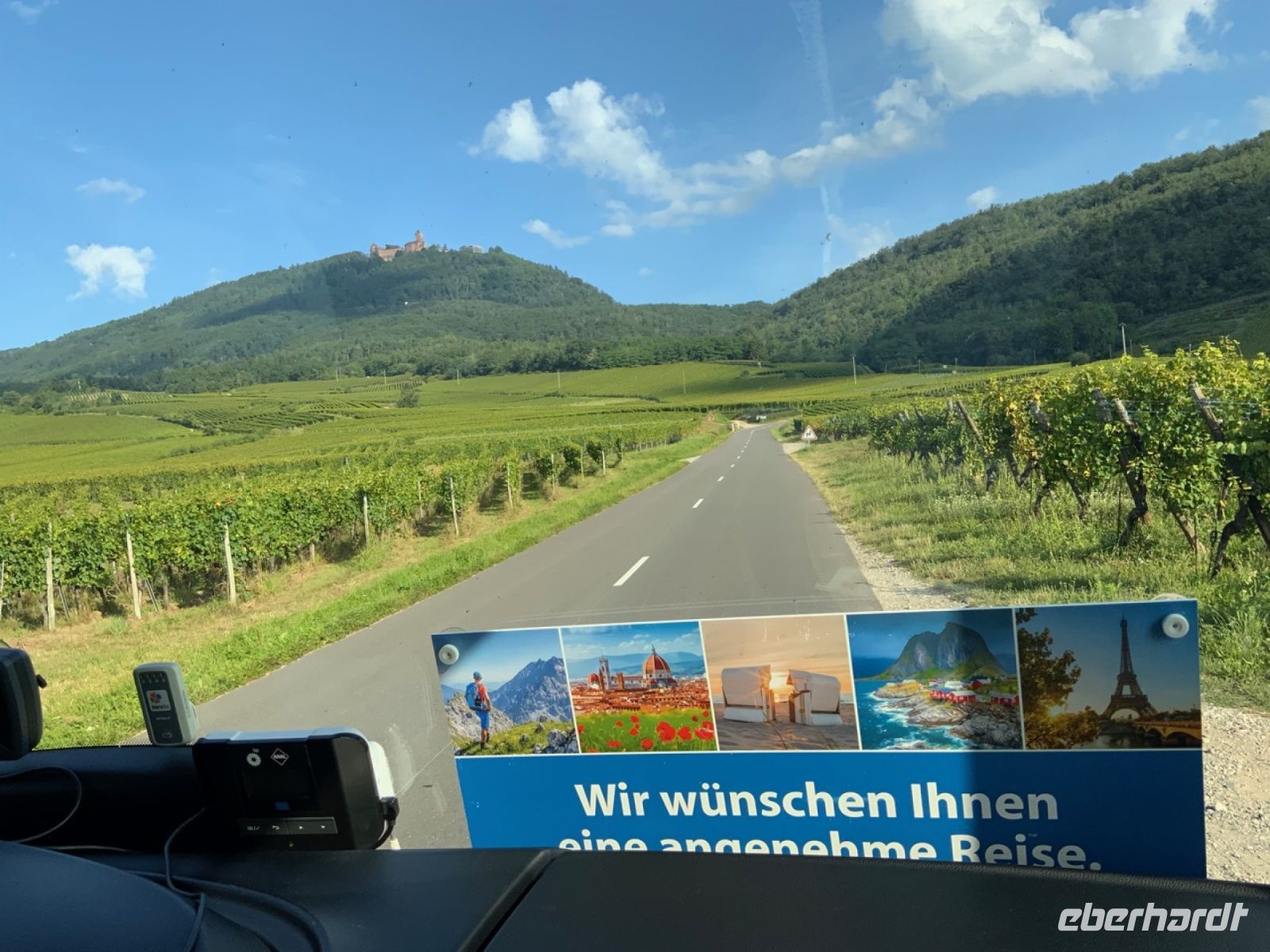 Das erste imposante Besichtigungsziel im Elsass überragt stolz die Weinberge in denen unser Hotel steht, wir müssen dazu nur in den Nachbarort Orschwiller fahren. Der erste Elsässer, den wir treffen, heißt Henri. Er ist eigentlich ein richtiger Franzose spricht allerdings sehr gut deutsch mit Akzent, und bringt uns auf charmante und begeisternde Weise die Geschichte dieser eindrucksvollen und stolzen Burg näher.