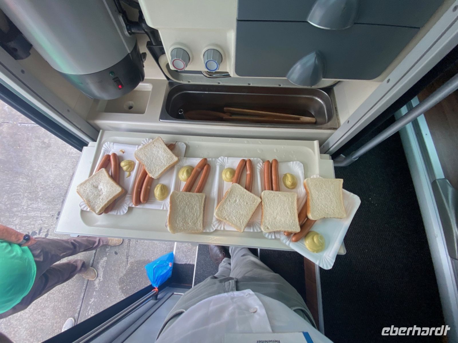 Ein wunderschöner Spätsommermorgen mit herrlichem Wetter ist der vielversprechende Auftakt zu unserer Reise ins Elsass. Unsere kleine und exklusive Reisegruppe wächst auf einer Fahrt quer durch Deutschland. Unser stets entspannter und gut gelaunter Busfahrer Andreas lenkt uns souverän an allen Staus vorbei. Unterwegs stärken wir uns mit frisch zubereiteten Bordwürstchen mit Brot und Senf, ein legendärer Klassiker, weiter geht es!
