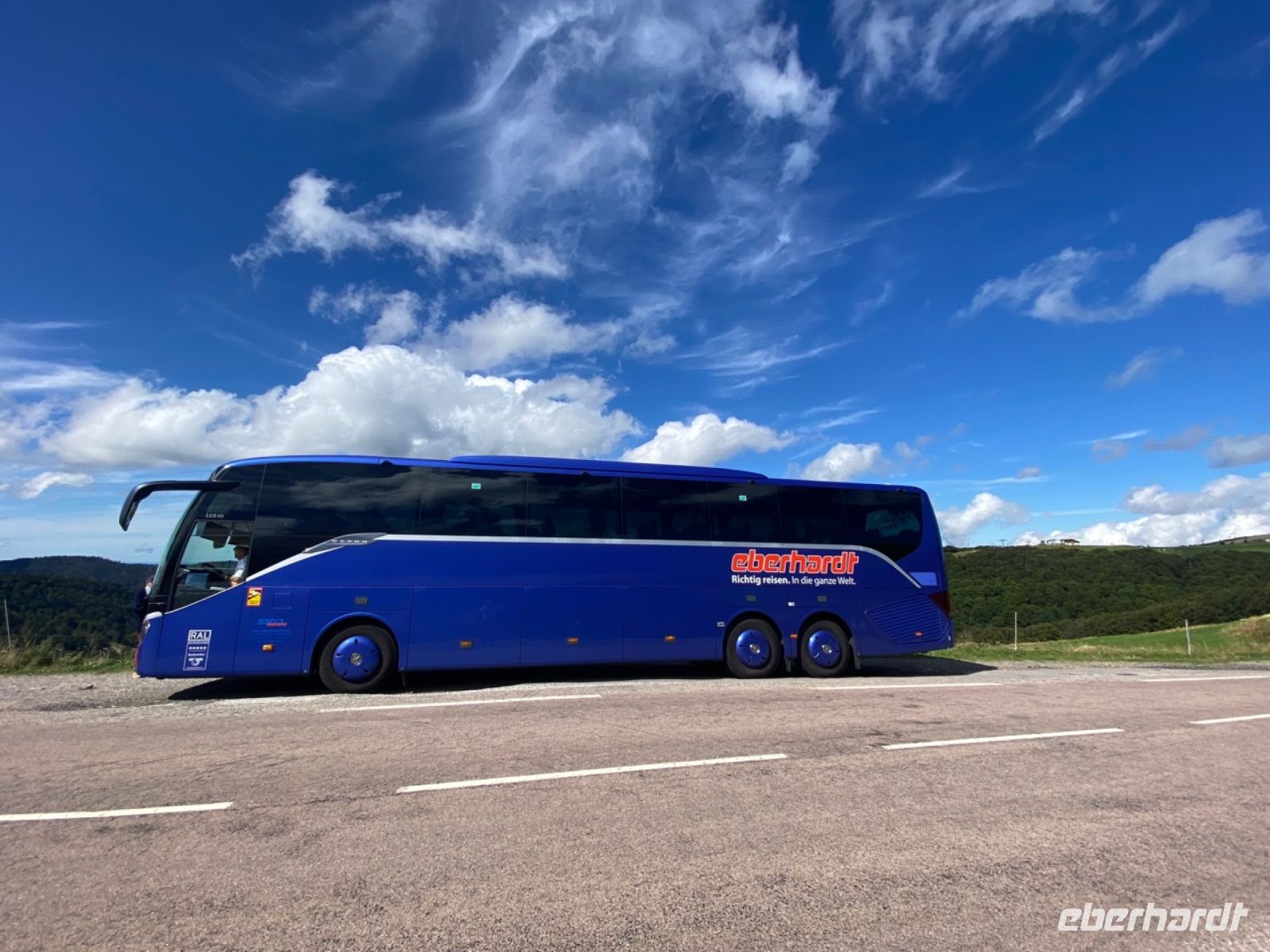 Nun geht es noch weiter in die Berge, unser Ziel ist der höchste Berg der Vogesen, der Große Belchen auf Französisch auch Grand Ballon genannt. Mit dem Bus können wir bis etwa 70 Meter unter den Gipfel fahren und anschließend noch bis zum höchsten Punkt, den ein eindrucksvolles futuristisches Gebäude mit Radarkuppel ziert, wandern.