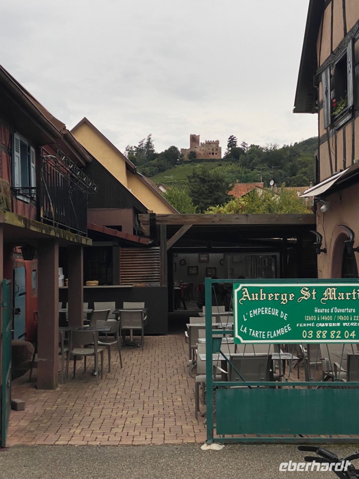 Hier muss noch berichtet werden, dass unser Wirt, unser elsässischester Elsässer, den wir auf unserer Reise treffen, perfekt elsässisch /deutsch spricht, eine Sprache die in den letzten Jahrzehnten in der Region immer mehr zurückgedrängt wurde. Die Herberge Sankt Martin wurde im kulinarischen Sinne jedenfalls ein gewaltiger Botschafter der elsässischen Kultur. Die Familie trägt die elsässische Flammkuchenküche inzwischen nach ganz Frankreich, in sechs weiteren Restaurants im Lande kann man diese köstliche Kulturbotschaft erleben.