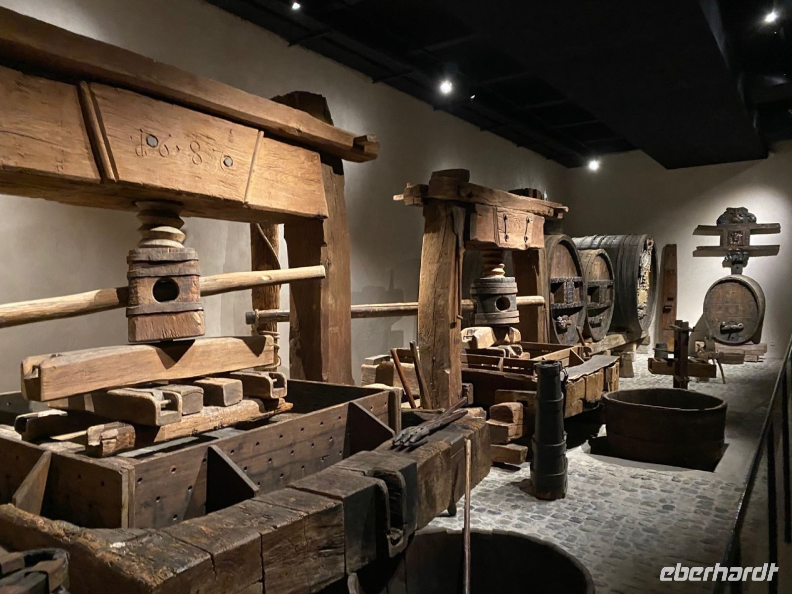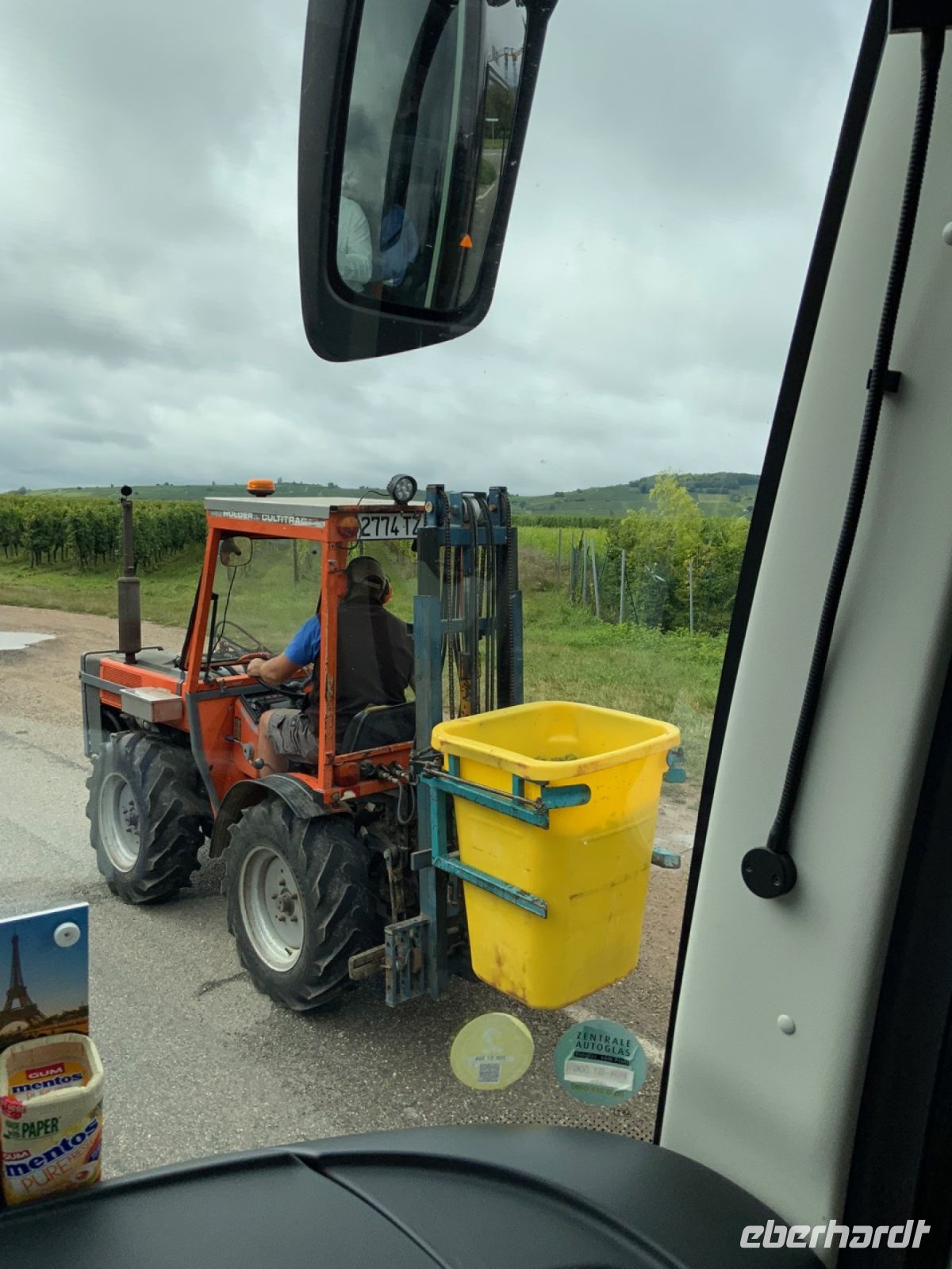 Nach diesem geografischen und inhaltlichen Höhepunkt geht es nun auf erfreuliche Weise erst anderswo in die Berge und dann in die Tiefe. In die Weinberge von Dambach und anschließend in den Weinkeller von Ruhlmann Schutz. Sehr herzlich werden wir von Emil empfangen, dem nächsten Elsässer, den wir kennenlernen. Seine Muttersprache ist der alte Elsässer Dialekt, man hört allerdings auch an einem leichten Akzent, dass bei ihm so wie im ganzen Land, langsam Französisch in den Vordergrund gerückt ist.