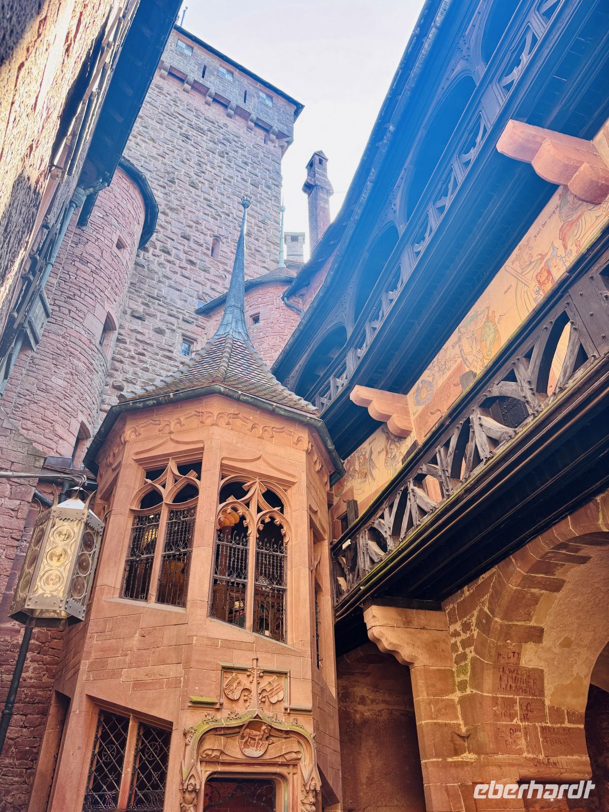 Unser letzter Tag im Elsass beginnt mit einem entspannten Frühstück und einem Blick aus dem Fenster, der das Herz höherschlagen lässt: blauer Himmel, milde Temperaturen – perfektes Ausflugswetter! Wir nehmen uns Zeit für einen letzten Schluck Kaffee und machen uns dann gut gelaunt auf den Weg zur Hohkönigsburg, die stolz auf einem mächtigen Sandsteinfelsen über dem Rheintal thront. Schon bei der Auffahrt durch dichte Wälder wird uns klar: Dieser Ort ist etwas Besonderes. Und tatsächlich – oben angekommen, empfängt uns die Burg wie eine Zeitmaschine. Türme, Wehrgänge, Zugbrücken, Kanonen – und ein Ausblick, der an klaren Tagen bis zum Schwarzwald reicht. Bei einer spannenden Führung erfahren wir, wie die mittelalterliche Festung im 19. Jahrhundert von Kaiser Wilhelm II. aufwendig restauriert wurde – als Symbol deutscher Romantik und Macht. Wir durchstreifen Rittersäle, Waffenkammern und Küche und fühlen uns für einen Moment wie Burgfräulein und Knappen. Anschließend geht es wieder hinab ins Tal und weiter nach Ribeauvillé – ein echtes Bilderbuchstädtchen entlang der Elsässer Weinstraße. Für eine kurze Stippvisite bleibt Zeit: Wir schlendern durch die Gassen mit buntem Fachwerk, vorbei an kleinen Boutiquen, gemütlichen Weinstuben und dem plätschernden Bach in der Dorfmitte. Ein paar Fotos, ein kurzer Café-Stopp – und dann schon geht es weiter entlang der Weinstraße. Auf nach Dambach-la-Ville! Schon von Weitem sehen wir die Reben in Reih und Glied auf den sanften Hängen stehen. Hier empfängt uns Emil auf dem Weingut Ruhlmann-Schutz, und er versteht es, uns die Welt des elsässischen Weins mit viel Herzblut und Humor näherzubringen. Im urigen Gewölbekeller folgt das große Finale: ein Weinseminar, das alle Sinne anspricht. Acht edle Tropfen dürfen wir verkosten – von spritzigem Crémant über duftenden Muscat, eleganten Riesling und würzigen Pinot Gris bis hin zum samtigen Pinot Noir. Wir schwenken, schnuppern, schmecken – und lauschen Emils unterhaltsamen Erklärungen über Terroir, Lagen und das große kleine Geheimnis der Gärung. Wer möchte, deckt sich zum Schluss noch mit ein paar flüssigen Urlaubserinnerungen ein. Zurück in Straßburg spazieren wir am Abend noch ein letztes Mal gemeinsam zu nahegelegenem Restaurant, wo wir uns zum Abschied noch einmal richtig verwöhnen lassen: Choucroute garnie mit drei Sorten Fleisch, ein feiner Munsterteller mit Kümmel – und zum süßen Schluss ein Kouglof Glacé mit Marc de Gewurz und einem fruchtigen Coulis. Mit vollen Herzen – und leicht beschwingt – blicken wir zurück auf eine Woche voller Geschmack, Geschichte und gemeinsamer Entdeckungen. Santé, Elsass!