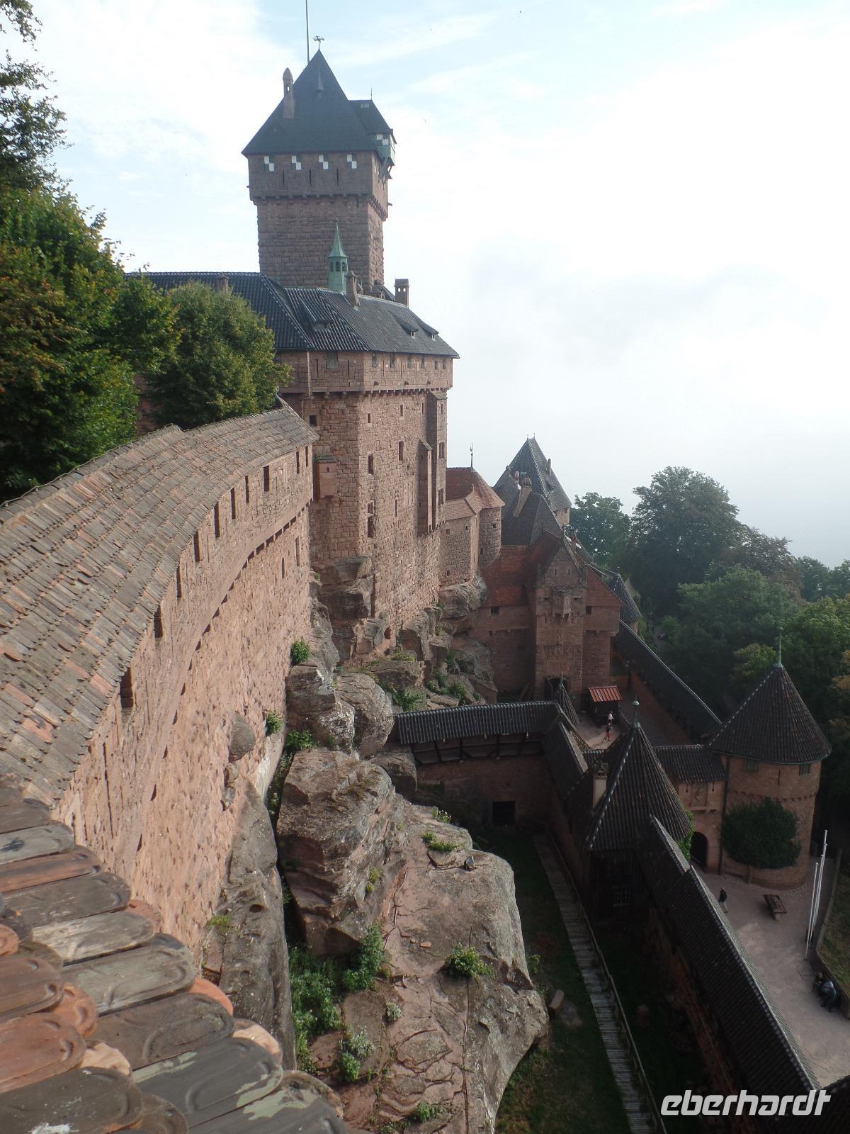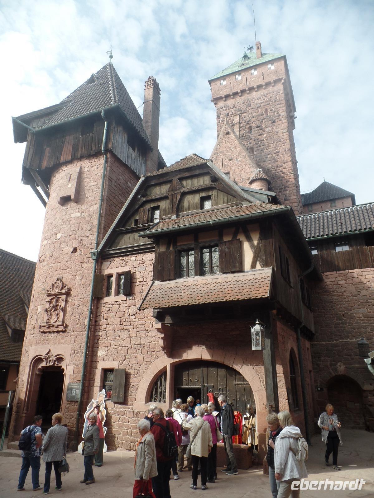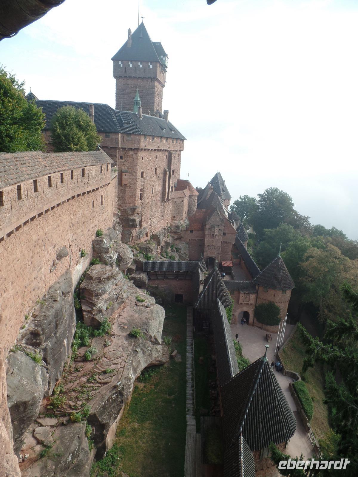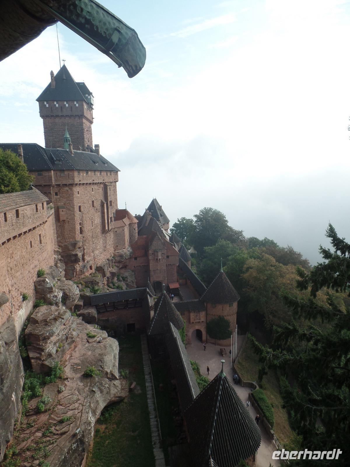 Heute begann unsere Tag etwas früh, denn die Hohkönigsburg bei Orschwiller war unser Ziel. Die mittelalterliche Burg liegt am Rand der Vogesen auf einem großen Sandsteinfelsen und ist schon von weitem zu sehen. Noch hing der Nebel im Tal. Doch das sollte sich bald ändern. Für jeden Elsass Besucher ist sie ein Mus. Deshalb waren wir froh als erste Gruppe die Burg zu besichtigen. Ein junger engagierter Mann führte uns durch die Burganlage.