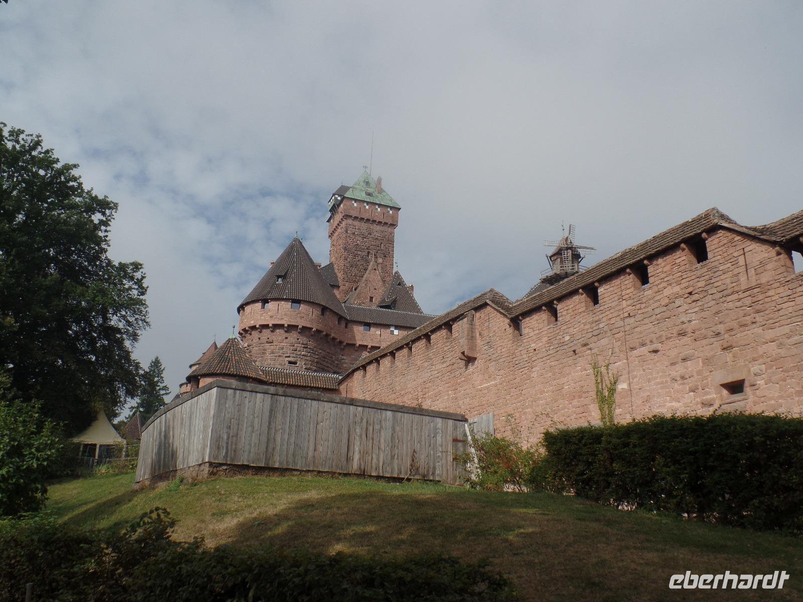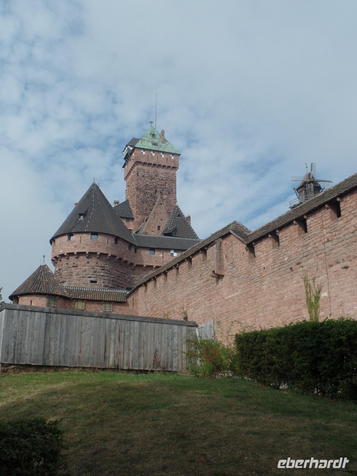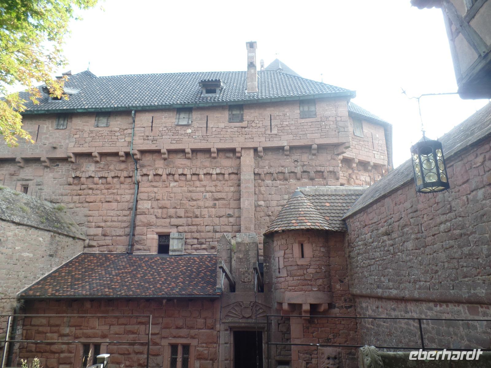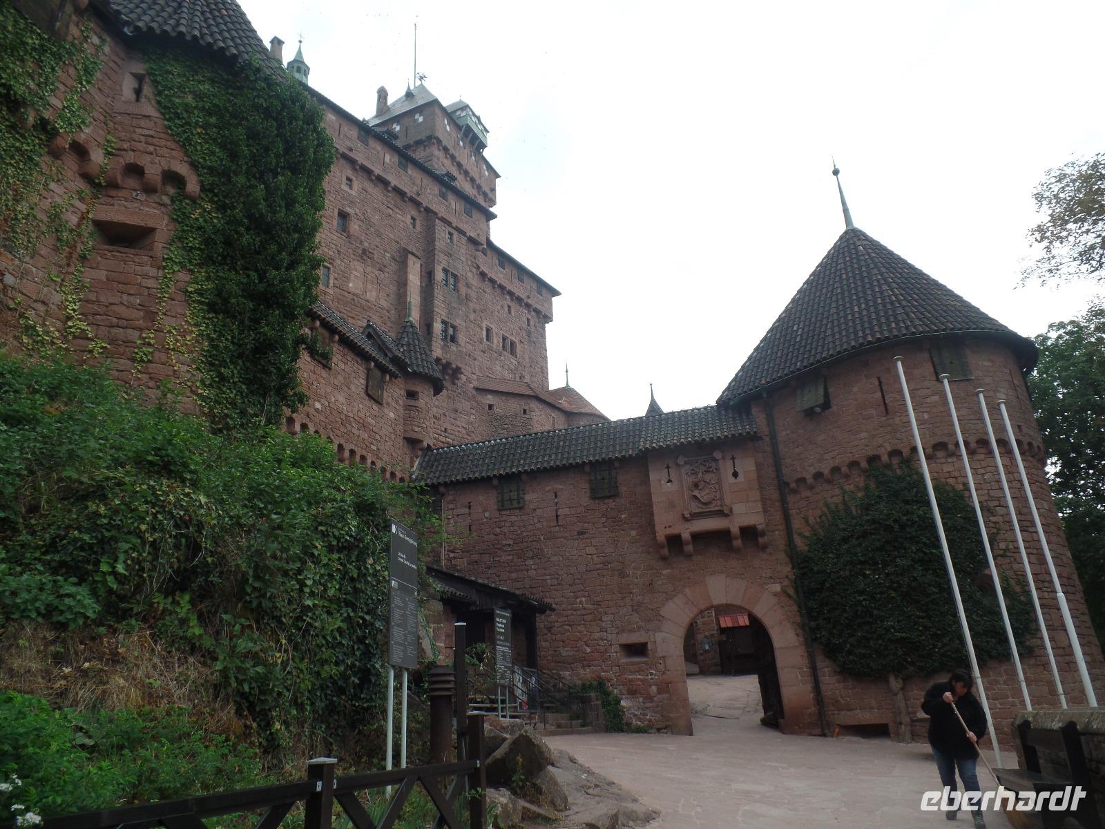 Heute begann unsere Tag etwas früh, denn die Hohkönigsburg bei Orschwiller war unser Ziel. Die mittelalterliche Burg liegt am Rand der Vogesen auf einem großen Sandsteinfelsen und ist schon von weitem zu sehen. Noch hing der Nebel im Tal. Doch das sollte sich bald ändern. Für jeden Elsass Besucher ist sie ein Mus. Deshalb waren wir froh als erste Gruppe die Burg zu besichtigen. Ein junger engagierter Mann führte uns durch die Burganlage.
