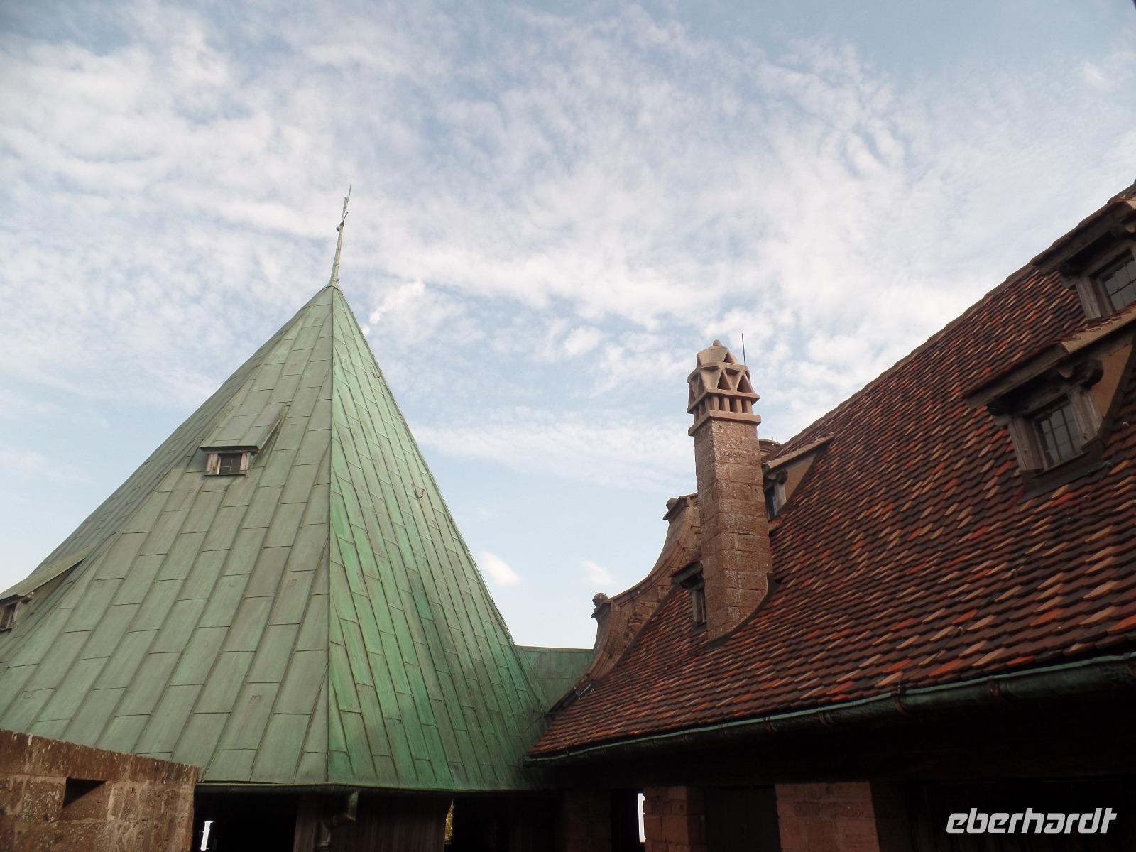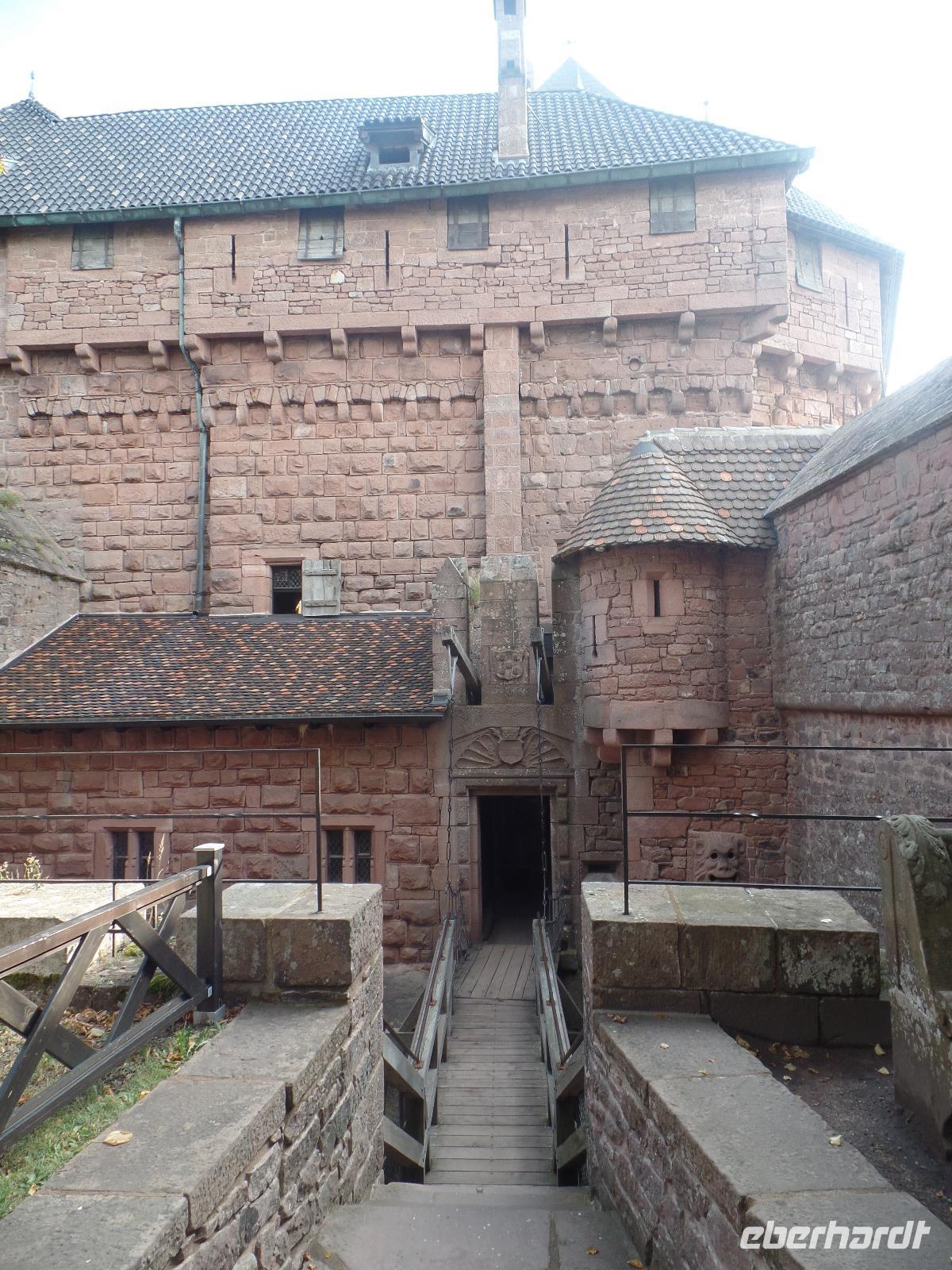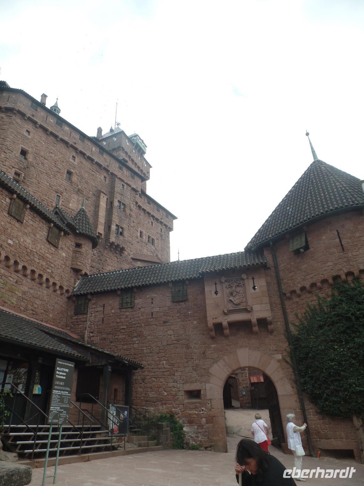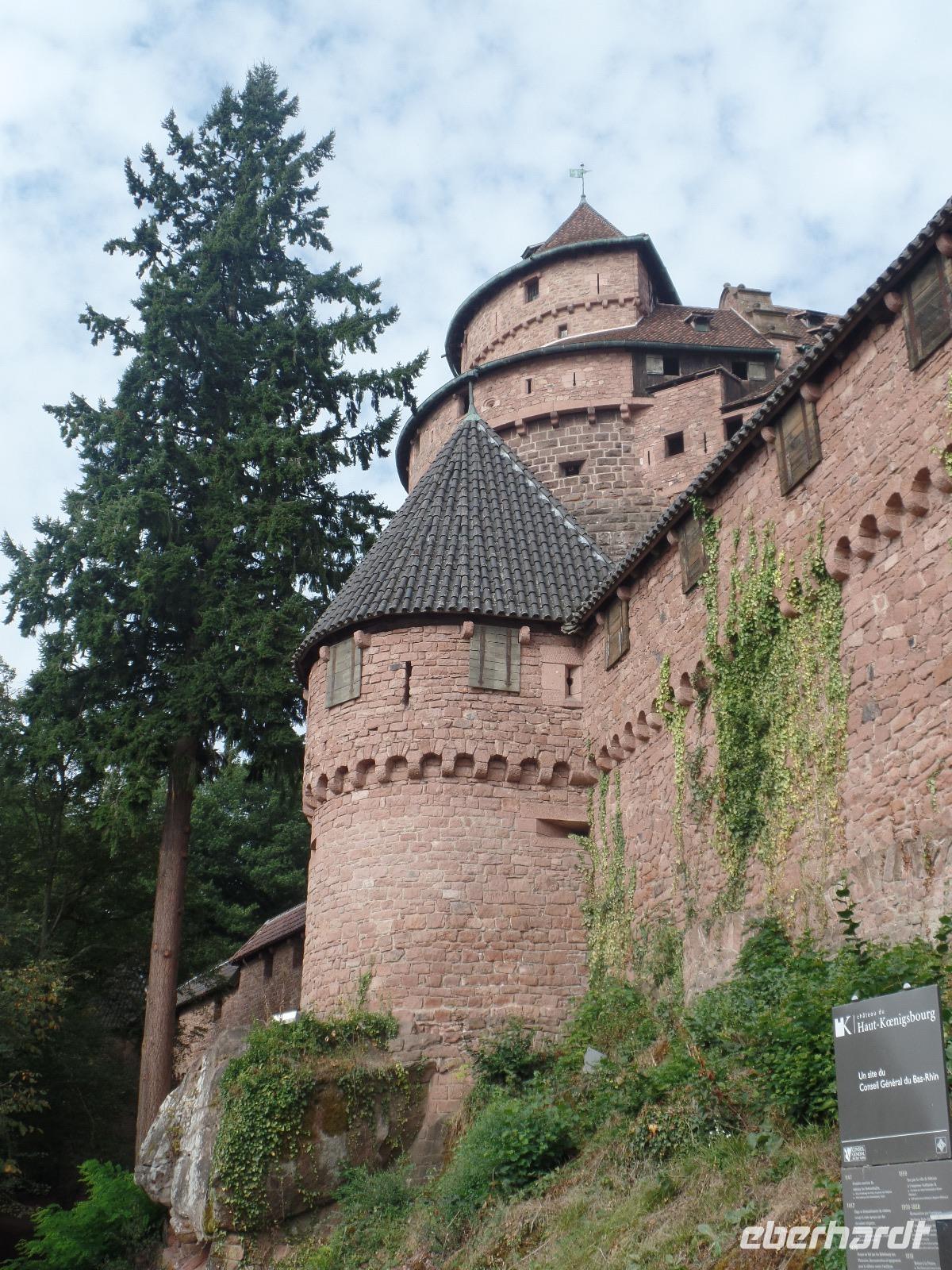 Heute begann unsere Tag etwas früh, denn die Hohkönigsburg bei Orschwiller war unser Ziel. Die mittelalterliche Burg liegt am Rand der Vogesen auf einem großen Sandsteinfelsen und ist schon von weitem zu sehen. Noch hing der Nebel im Tal. Doch das sollte sich bald ändern. Für jeden Elsass Besucher ist sie ein Mus. Deshalb waren wir froh als erste Gruppe die Burg zu besichtigen. Ein junger engagierter Mann führte uns durch die Burganlage.