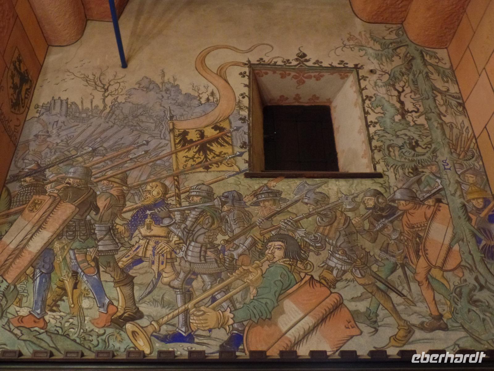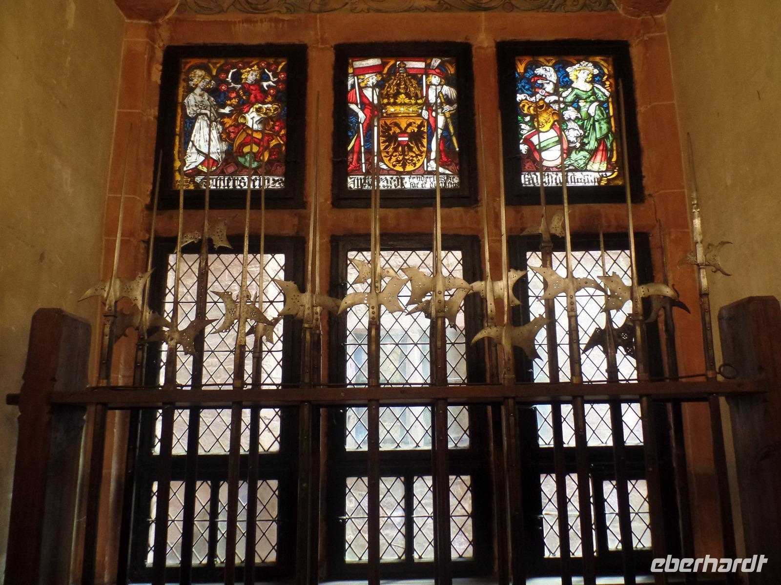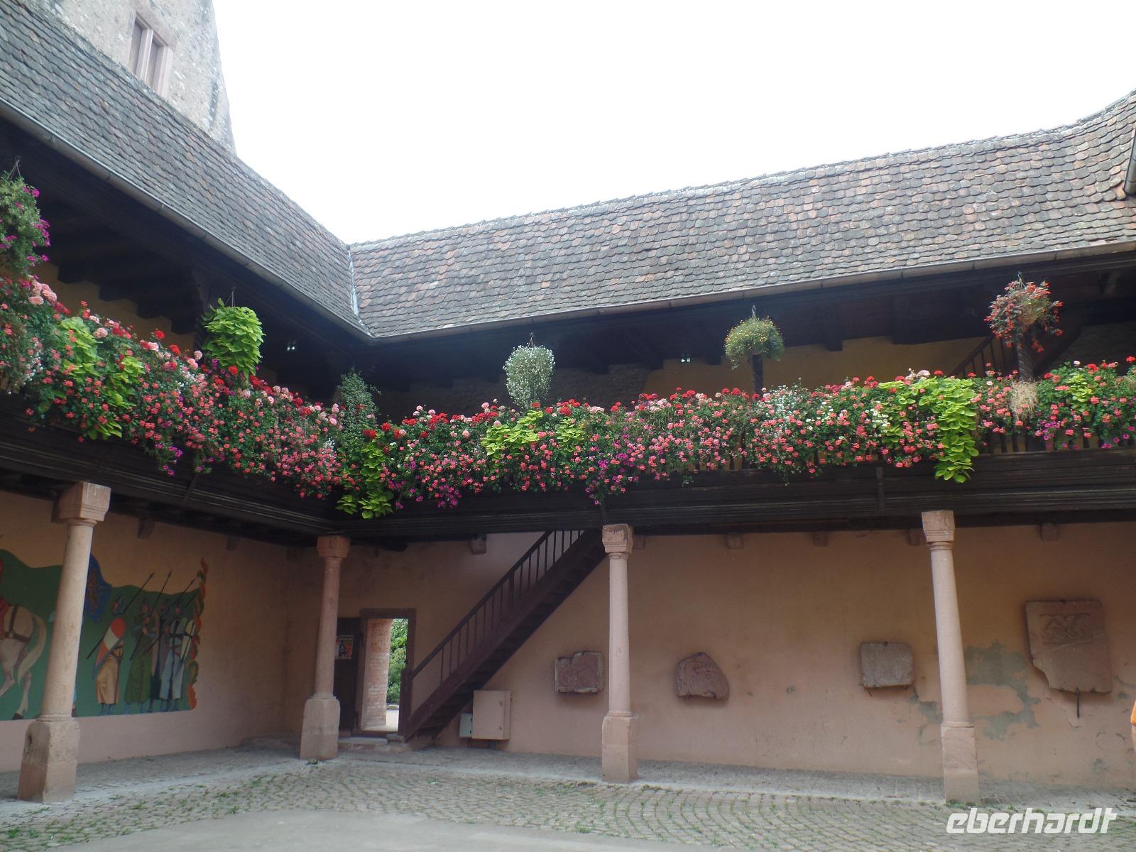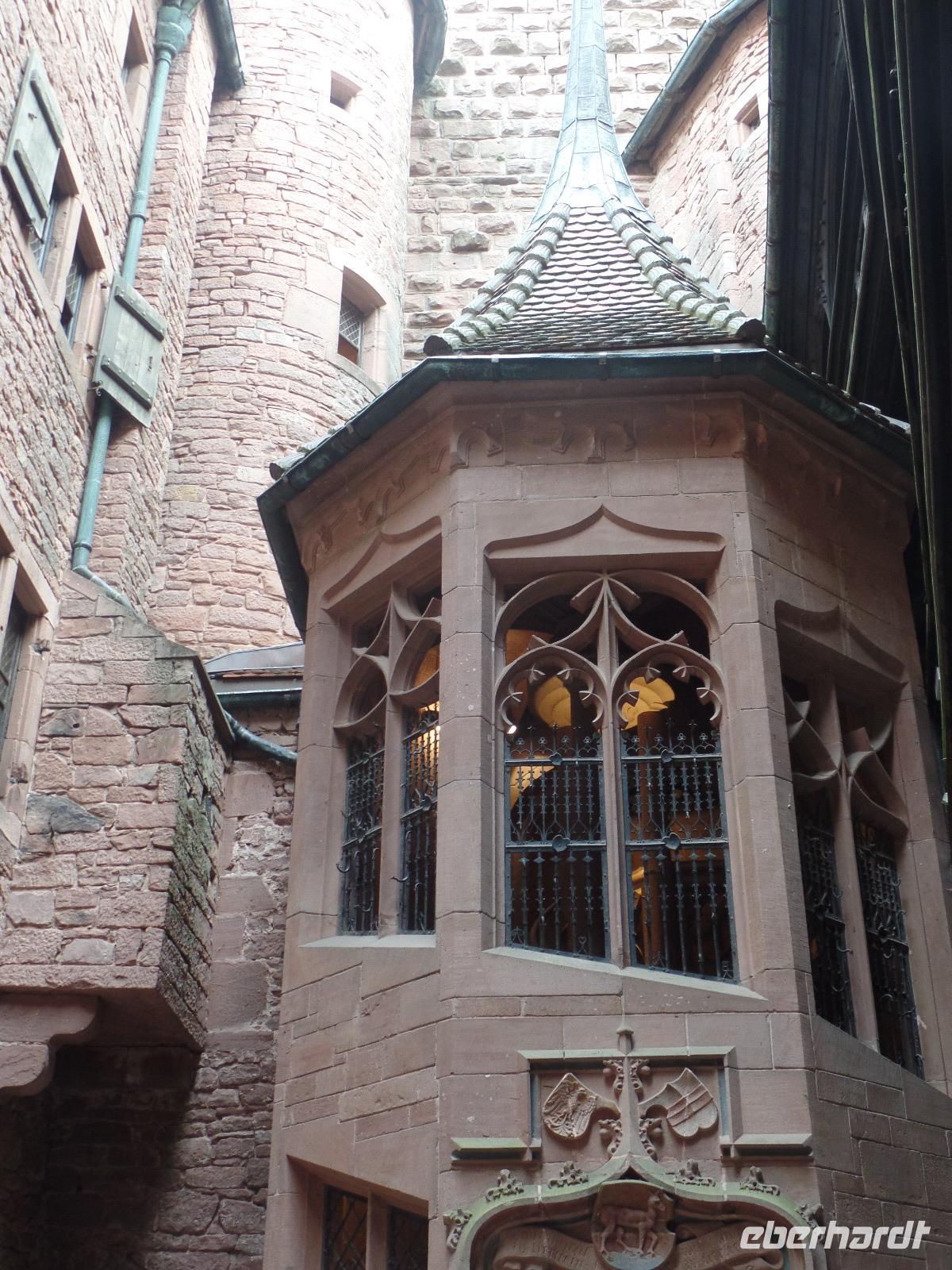 Heute begann unsere Tag etwas früh, denn die Hohkönigsburg bei Orschwiller war unser Ziel. Die mittelalterliche Burg liegt am Rand der Vogesen auf einem großen Sandsteinfelsen und ist schon von weitem zu sehen. Noch hing der Nebel im Tal. Doch das sollte sich bald ändern. Für jeden Elsass Besucher ist sie ein Mus. Deshalb waren wir froh als erste Gruppe die Burg zu besichtigen. Ein junger engagierter Mann führte uns durch die Burganlage.