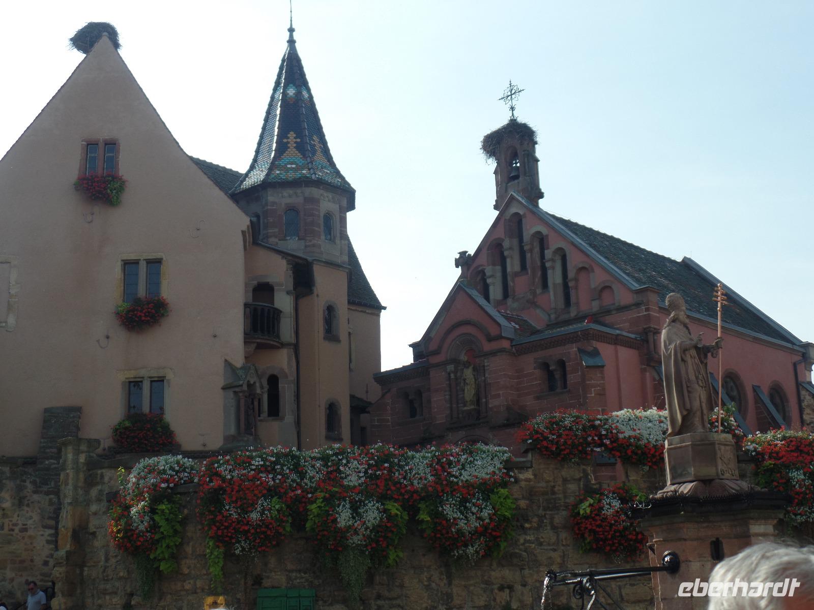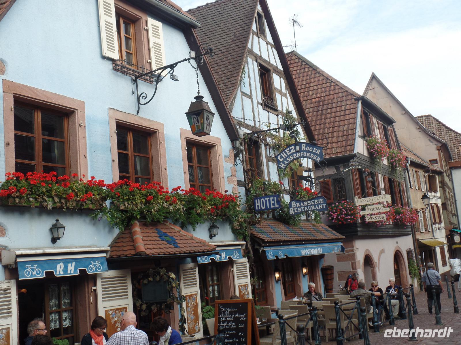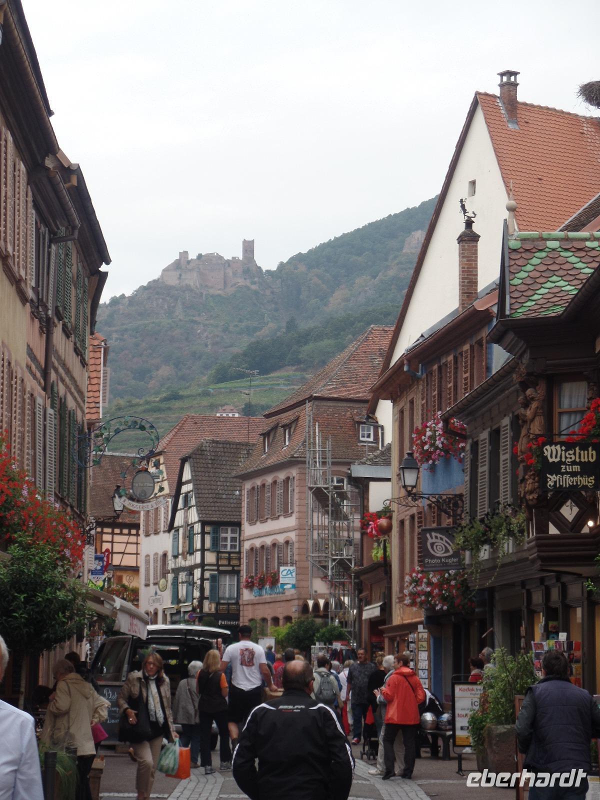 Entlang der Elsässer Weinstraße fuhren wir durch kleine hübsche Dörfern nach Dambach la Ville. Im Weingut Ruhlmann begrüßte uns Emil. Er führte uns durch die Weinkeller und mit der Kleinbahn durch die Weinberge. Dabei erfuhren wir viel Wissenswertes über den Weinanbau und die Familie Ruhlmann. Überrascht waren wir von der Größe des Anwesens, den immerhin bewirtschaftet die Familie 40 ha der Weinanbauflächen. Beim Marktplatz angekommen kehrten wir in den urigen Weinkeller ein. Mit viel Witz und Charm erläuterte Emil die 7 Weinsorten die im Elsass angebaut werden und die wir natürlich probierten. Entlang der Elsässer Weinstraße erreichten wir das Dorf Ribeauville mit seinen traditionellen Fachwerkhäusern. Doch vorher schauten wir noch bei dem Chokolatier Daniel Stoffel vorbei. Schon seit 1963 stellt die Familie Schokolade her. Alles begann in einem kleinen Keller und später auf einer Messe in Paris. Ein interessanter Film stimmte uns darauf ein. Natürlich wurden auch einige Leckereien für zu Hause mit genommen. Zum Abschluss des Tages besuchten wir Ribeauville. Das Dorf ist umgeben von Weinbergen und oberhalb sieht man die Ruinen der drei Schlösser der Herren von Ribeaupierre.