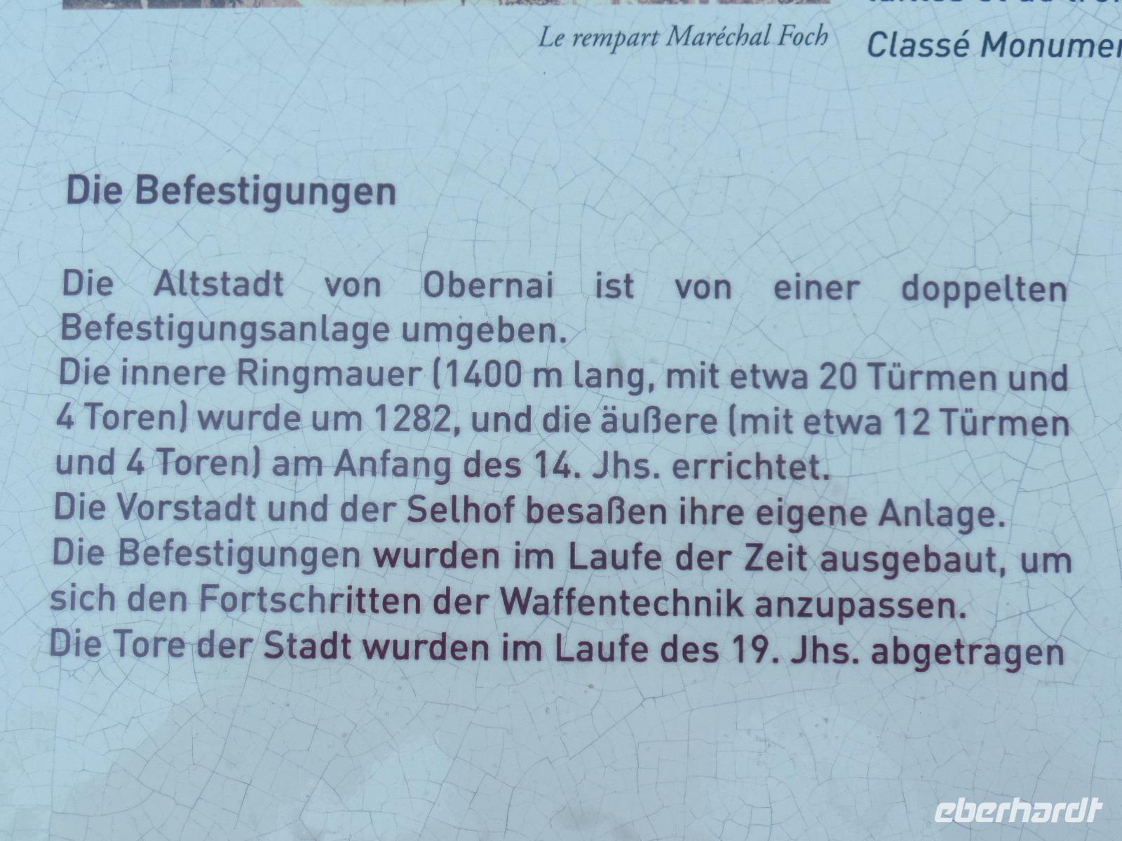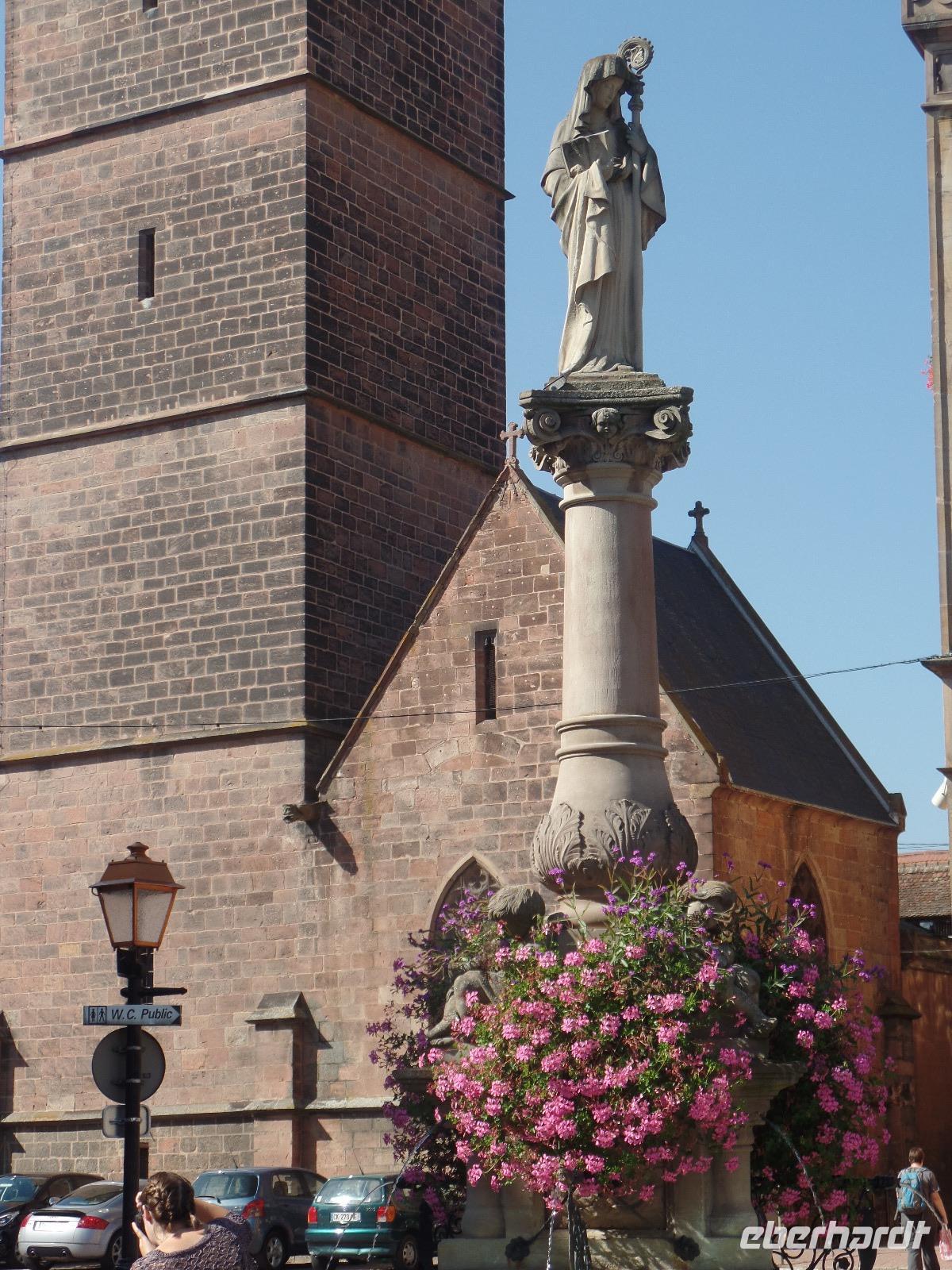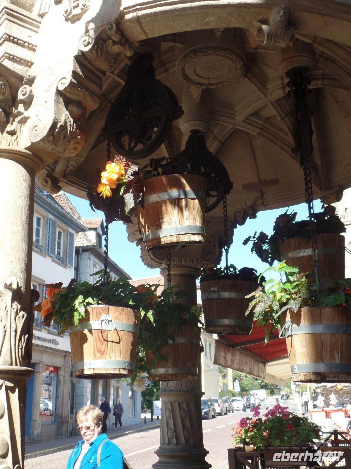Auch heute stand wieder eine Verkostung auf dem Programm. Wir fuhren nach Gertwiller und besuchten die Lebkuchenfabrik Furtwanger. Im kleinen Museum erfuhren wir einiges über die Herstellung der Elsässer Spezialität. Anschließend besuchten wir die Stadt Obernai am Fuße des Odilienbergs. Der Geburtsort der Heiligen Odilie, die Schutzpatronin des Elsass, hat sich seinen altertümlichen Charme bewahrt. Während der Führung durch den Ort zeigte uns Frau Hermann viele kleine Details an den Fachwerkhäusern und wir erfuhren auch einiges über das Judentum. Am Schluss der Führung betrachteten wir den berühmten Sechseimerbrunnen. Im Anschluss wartete der Mont Sainte Odile, der Heilige Berg des Elsass auf unseren Besuch. Auch hier führte uns Frau Hermann durch das gleichnamige Kloster und erzählte uns die Legende der Heiligen Odilie.