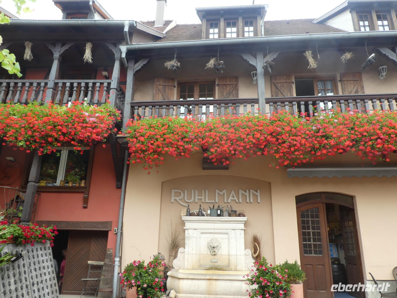 Der erste Tag unserer Elsass Reise führte uns auf die Hochkönigsburg. Schon bei der Anreise in das Elsass sahen wir diese imposante Burg. Sie wurde nach mehrmaliger Zerstörung immer wieder aufgebaut. Kaiser Wilhelm II. erhielt die Burg 1899 geschenkt und hat diese in nur 8 Jahren wiederaufgebaut und seit 1908 wird sie als Museum genutzt. Wir unternahmen einen Rundgang durch die Burganlage. Entlang der Elsässer Weinstraße erreichten wir den Weinort Dambach la Ville. Im Weingut Ruhlmann schauten wir im Weinkeller vorbei und erfuhren von Emil einiges über den Weinanbau und Produktion. Anschließend fuhr er mit uns in der Kleinbahn durch den Ort und hinein in die Weinberge. Emil erklärte uns die sieben Rebsorten die im Elsass angebaut werden. Zurück im Ort ging es ab in den Keller zur Verkostung. Auf seine lustige Art und Weise mit viel Humor brachte uns Emil die Weine näher. Auch ein typischer Kugelhupf wurde uns gereicht. Danach fuhren wir in den Weinort Riberville. Der kleine Ort wird noch zum Teil von der Stadtmauer umgeben und über ihm thronen drei Burgen. Wir nutzten die Zeit für einen Bummel durch die Gassen und bestaunten auch dort die Blumenpracht.