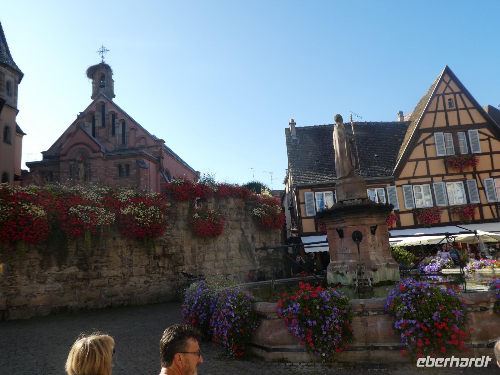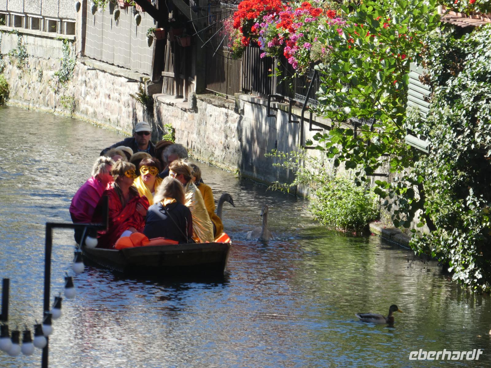 Heute besuchten wir die Stadt Colmar mit ihren mittelalterlichen Fachwerkhäusern und Kanälen. Wir unternahmen einen Stadtrundgang und bestaunten die vielen schönen Fassaden und Zunftschilder. Wir erreichten die Markthalle mit den Fischerstaden und das romantischste Viertel „Kleinvenedig". Entlang des Fluss Lauch reihen sich romantische Fachwerkhäuser und Brücken, die vor allem durch ihren Blumenschmuck aufmerksam machen. Einige Gäste unternahmen auch eine romantische Kahnfahrt. Wir verließen Colmar und erreichten entlang der Weinstraße den Weinort Riquewihr. Auf Grund der gut erhaltenen Fachwerkhäuser der alten Stadtmauer und seinen Stadttoren wird der Ort auch „Perle der Elsässer Weingegend" genannt. Auch dort lohnte ein Blick in die kleinen Gassen und Höfe. Wieder entlang der Weinstraße besuchten wir Egisheim, bekannt für seinen schönen Blumenschmuck. Nach etwas Freizeit fuhren wir mit der Kleinbahn durch den Ort und hinauf in die Weinberge wo sich oberhalb die drei Burgen liegen. Von oben hatten wir einen tollen Blick in den Schwarzwald und auf Egisheim und Colmar.