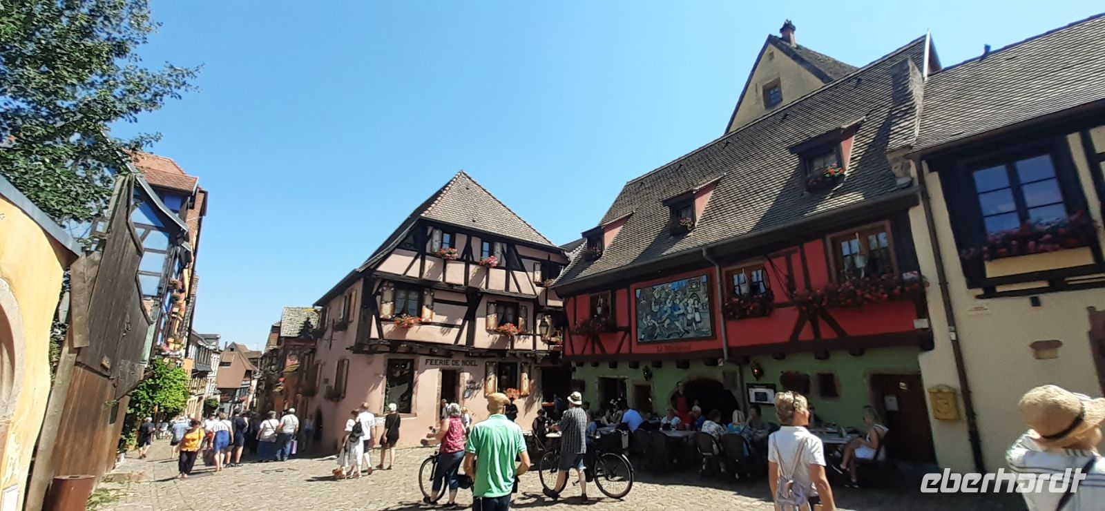 Die Blumenstadt Colmar wartete auf unseren Besuch. An der Touristeninformation begann unsere Führung durch die schöne mit Blumen geschmückte Altstadt. Wir starteten am Unterlinden Museum durch verwinkelte Gassen bis zum Viertel „Klein-Venedig". Das romantische Viertel lud zum Bummeln und Kahnfahren ein. Ein Blick in die Markthalle und einkaufen in den vielen kleinen Läden und schon war wieder Mittagszeit. Im Restaurant Pfeffel war für jeden Geschmack etwas dabei. Nach einer kurzen Fahrt erreichten wir Equisheim. Der kleine Ort zählt zu den schönsten Blumendörfern im Elsass. Mit dem Bummelzug entdecken wir Equisheim und die umliegenden Weinberge.