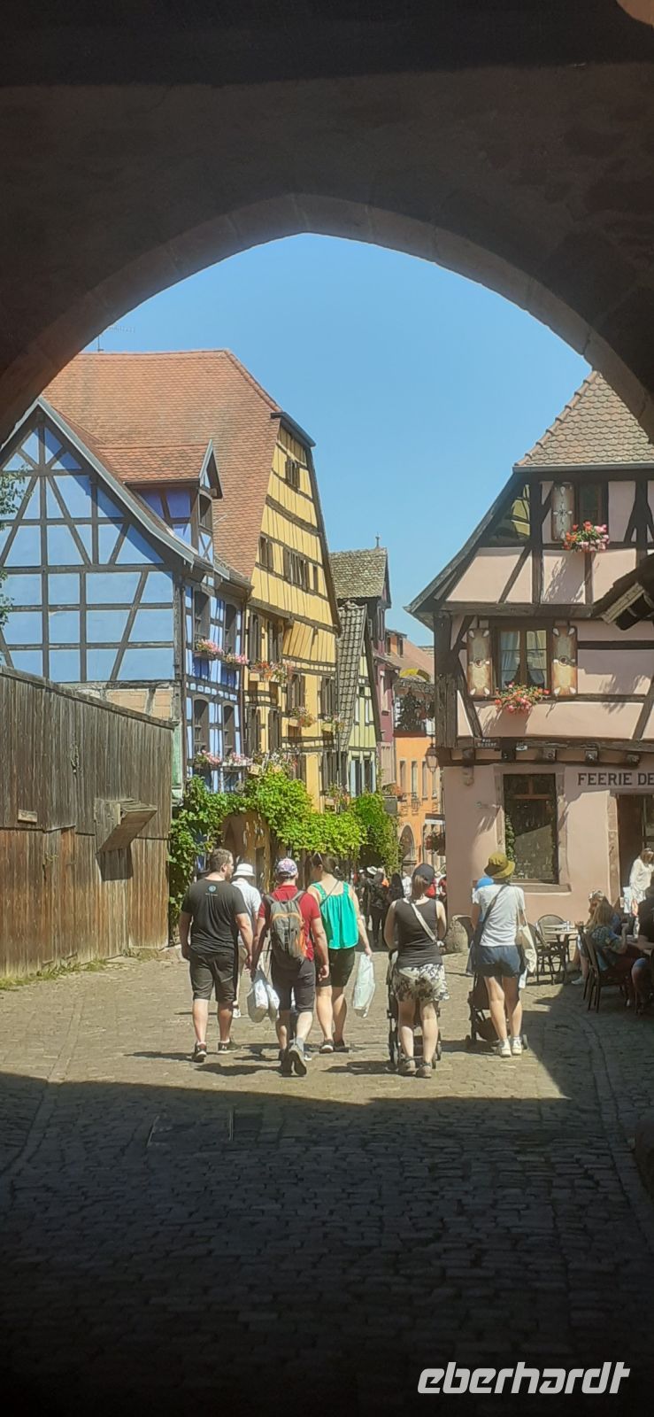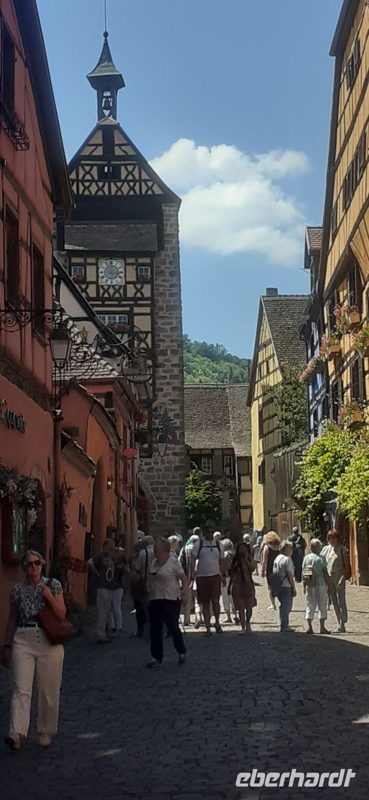 Heute besuchten wir die schönste und größte Burg des Elsass. Die Hochkönigsburg liegt romantisch oberhalb von St. Hippolyte. Die Burg aus den 12 Jh. wechselte immer wieder die Besitzer. Im 30. jährigen Krieg wurde sie zerstört. Sie gehörte anschließend der Stadt Selestat. Kaiser Wilhelm II. erhielt diese Burg geschenkt und hat diese wieder aufgebaut. Von da an wurde sie als Museum genutzt. Nach einem interessanten Rundgang durch die Burganlage fuhren wir entlang der Elsässer Weinstraße durch viele kleine schmucken Orten und erreichten Ribeauville. In der Weinstadt mit den drei Burgen bummelten wir durch die Gassen der Altstadt. Weiter führte uns die Fahrt in den wohl schönsten Ort nach Riquewihr. Die mittelalterliche Stadt liegt romantisch zwischen den Weinbergen. Dort wartete schon der Bummelzug auf uns und wir fuhren durch den Weinort. und die Weinberge. Anschließend gingen wir in den Weinkeller zur Weinverkostung. Wir erfuhren viel Wissenswertes über den Weinanbau. Eine Weinverkostung von 7 Weinen rundete unseren Besuch ab. Noch ein Bummel durch die Gassen der Altstadt und der Tag neigte sich dem Ende.