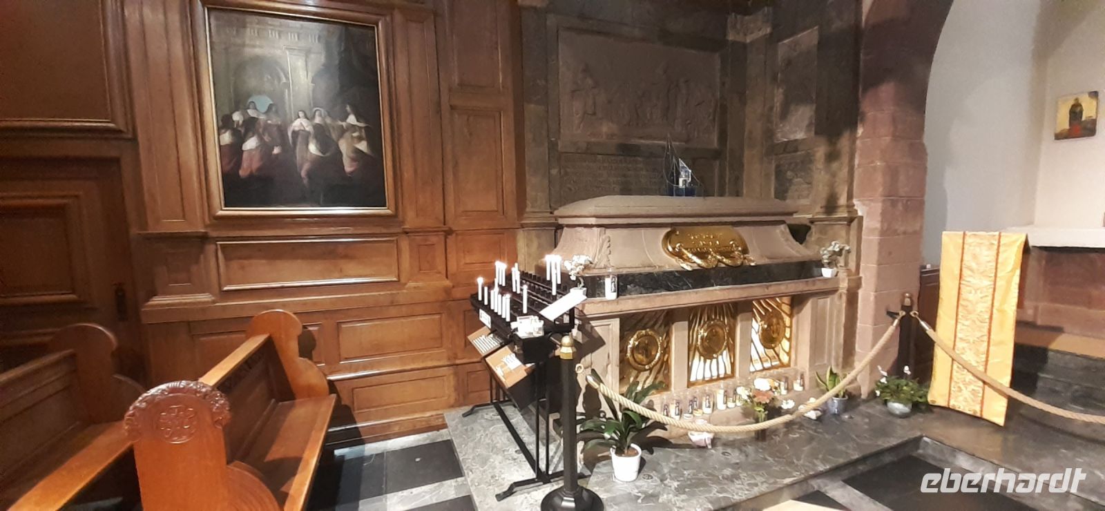 Auch heute stand wieder eine Verkostung auf dem Programm. Wir fuhren nach Gertwiller. Im 19. Jahrhundert gab es in diesem Ort noch 9 Lebkuchenhersteller. Heute sind es nur noch 2 Betriebe. Wir besuchten die Lebkuchenfabrik Fortwenger. In einem kleinen Museum erfuhren wir einiges über die Geschichte und Herstellung der Elsässer Spezialität. Anschließend besuchten wir die Stadt Obernai am Fuße des Odilienbergs. Der Geburtsort der Heiligen Odilie, die Schutzpatronin des Elsass, hat sich seinen altertümlichen Charme bewahrt. Während der Führung durch den Ort zeigte uns die Gästeführerin viele kleine Details an den Fachwerkhäusern, und auf dem Marktplatz den Odilienbrunnen und das Rathaus. Am Schluss der Führung betrachteten wir den berühmten Sechseimerbrunnen. Nach der Mittagspause wartete der Mont Sainte Odile, der Heilige Berg des Elsass auf unseren Besuch. Während einer Führung durch das gleichnamige Kloster erfuhren wir die Legende der Heiligen Odilie. Von der Terrasse hatten wir einen schönen Blick auf Obernai und die Vogesen.
