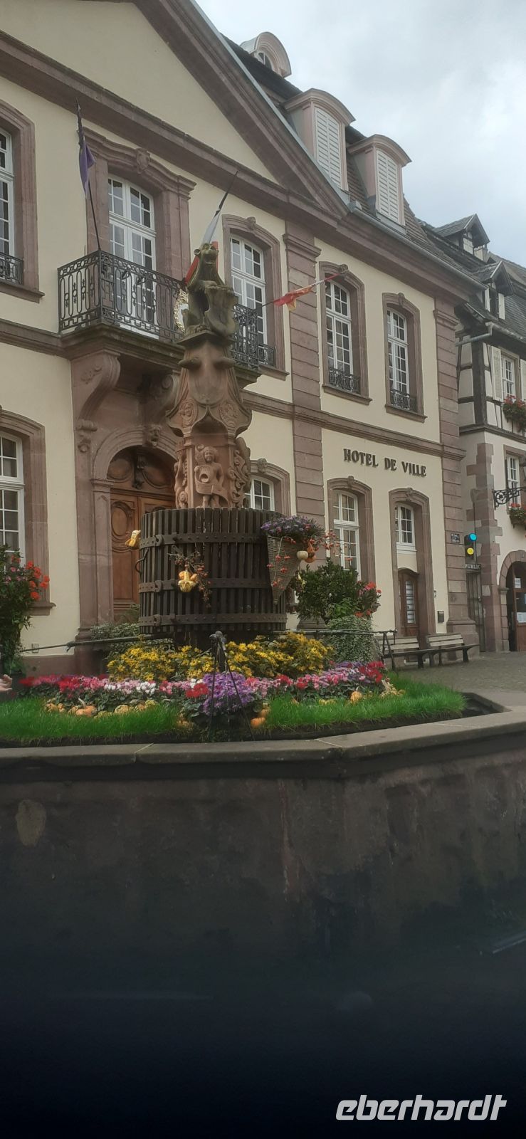 Entlang der Elsässer Weinstraße fuhren wir durch kleine hübsche Dörfern zur Hochkönigsburg. Die mittelalterliche Burg liegt am Rand der Vogesen auf einem großen Sandsteinfelsen und ist schon von weitem zu sehen. Für jeden Elsass Besucher ist sie ein Mus. Kaiser Wilhelm II. bekam diese Burgruine nach der Zerstörung im 30- jährigen Krieg geschenkt. Er restaurierte sie nicht als Residenz sondern als Museum. Mit einem Audio Guide bewunderten wir die schöne Burganlage mit ihren verschieden Räumlichkeiten. Anschließend besuchten wir das Dorf Ribeauville mit seinen traditionellen Fachwerkhäusern. Das Dorf ist umgeben von Weinbergen und oberhalb sieht man die Ruinen der drei Schlösser der Herren von Ribeaupierre. Auf nach Dambach la Ville. Im Weingut Ruhlmann begrüßte uns Emil. Er führte uns durch die Weinkeller mit den alten Holzfässern und mit der Kleinbahn durch die Weinberge. Dabei erfuhren wir viel Wissenswertes über den Weinanbau und die Familie Ruhlmann. Überrascht waren wir von der Größe des Anwesens, den immerhin bewirtschaftet die Familie 40 ha der Weinanbauflächen. Beim Marktplatz angekommen kehrten wir in den urigen Weinkeller ein. Mit viel Witz und Charm erläuterte Emil die 7 Weinsorten die im Elsass angebaut werden und die wir natürlich probierten. Ein Stück Kugelhupf durfte auch nicht fehlen.