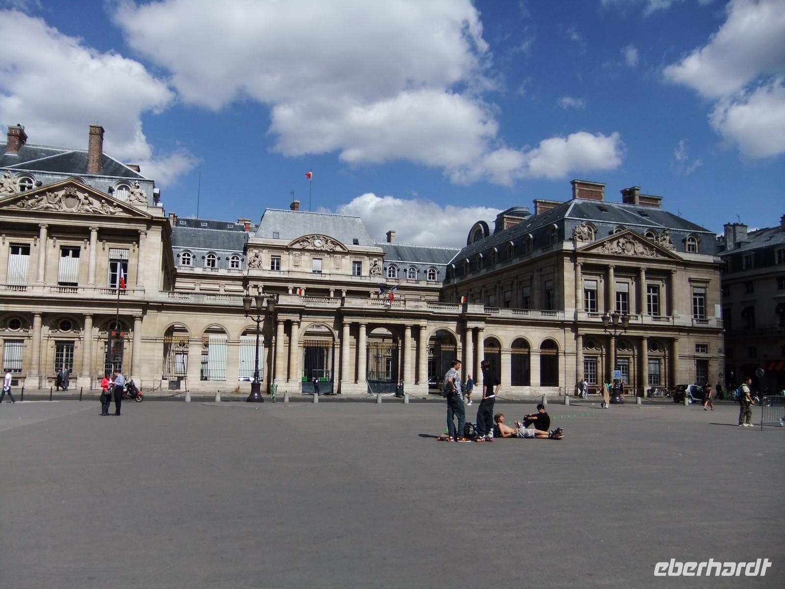 Wir verlassen den Bus am Palais Royal, an dem, wie eigentlich fast immer, gebaut wird. Richelieu. Louis XIV, Königswitwen, die Orleans und andere wohnten hier, Molière spielte seine Stücke, Desmoulins rief von hier zur Revolution aus, Blücher soll 6 Millionen im Glückspiel verloren haben und im späteren Reich der „Kokotten“ wurden auch Heine und Hugo gesehen. Heute haben Staatsrat und Kulturminister ihren Sitz im Palais.