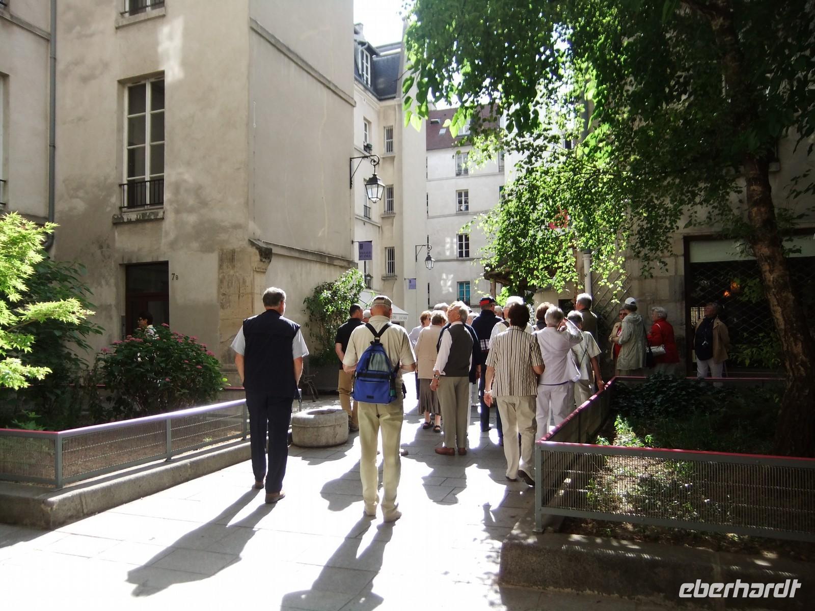 verschandelten die prächtigen Innenhöfe mit Einbauten. Vertriebene aus vielen Ländern fanden eine billige Unterkunft, Juden aus Osteuropa ebenso wie russische Aristokraten. Erschütternde Tafeln weisen auf die Deportationen der Juden während der deutschen Besetzung hin. Es ist kunstliebenden Menschen und dem Schriftsteller und Kulturminister Malraux zu verdanken, dass das gesamte Gebiet des Marais als Flächendenkmal geschützt wurde. Mit der Rekonstruktion der Gebäude änderte sich der Charakter wieder: Galerien, Boutiquen, Kulturzentren zogen ein. Ich habe über viele Jahre das Gebiet durchstreift, so wie es heute auch die Pariser am Sonntag tun, mit dem grünen Michelinführer in der Hand. Auch heute entdecke ich wieder bei der Führung durch Michael einiges Neues und freue mich über das große Interesse der Gäste.