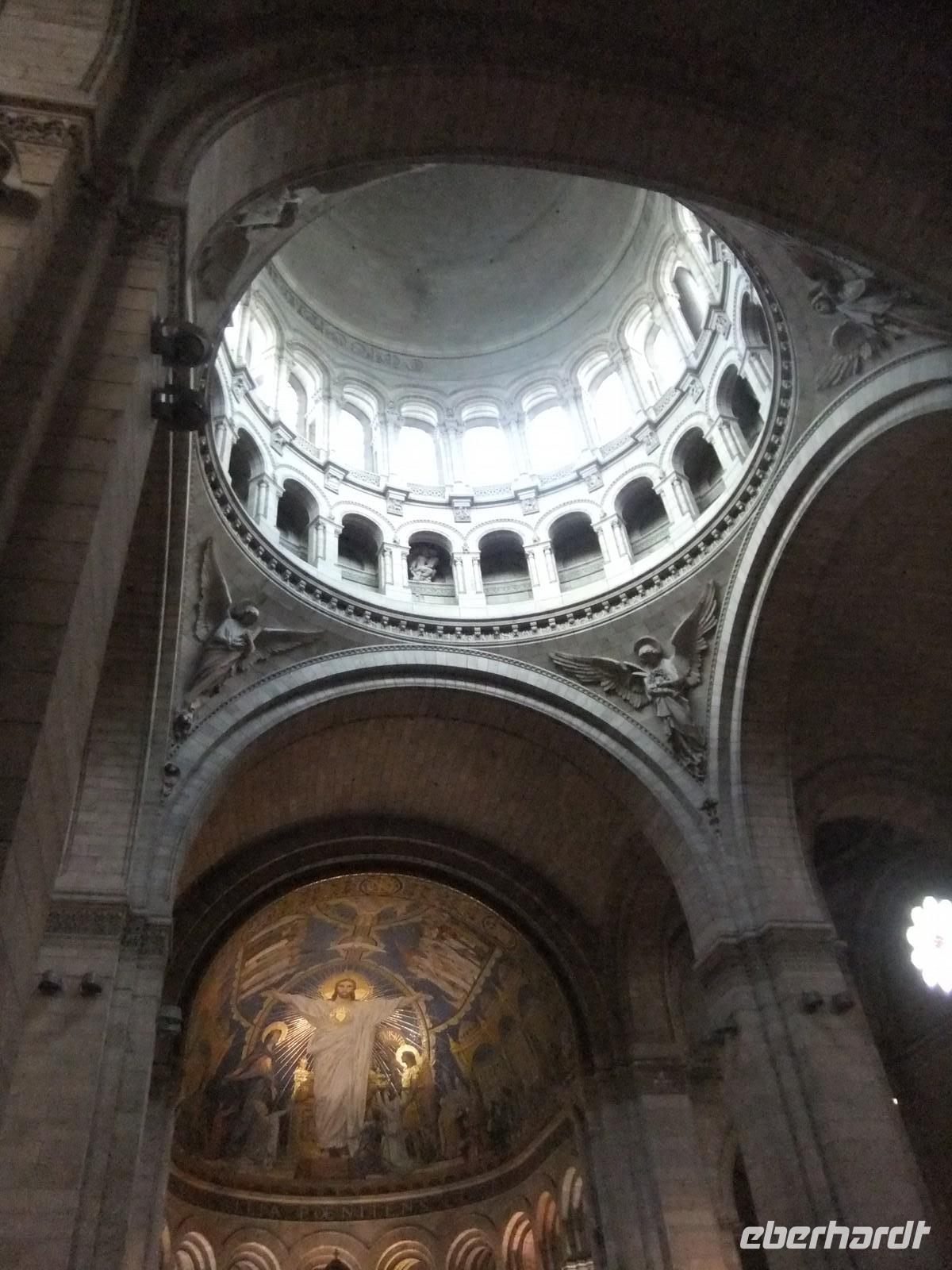 Der Prunk des 19.Jahrhunderts setzt sich fort in der im Zentralbau mit der gewaltigen Jugendstilkuppel des Kaufhauses Galeries Lafayette. Und von ihrer Dachterrasse aus sieht man das gewaltige Bühnenhaus der Oper ganz nahe. Man erblickt viele der nun schon bekannten Bauten der Stadt, vor allem der herausragenden Eiffeltum und das modernen Hochhaus Tour Montparnasse (von einigen abends besucht) und den Hügel Montmartre mit der gewaltigen Sacre Coeur.