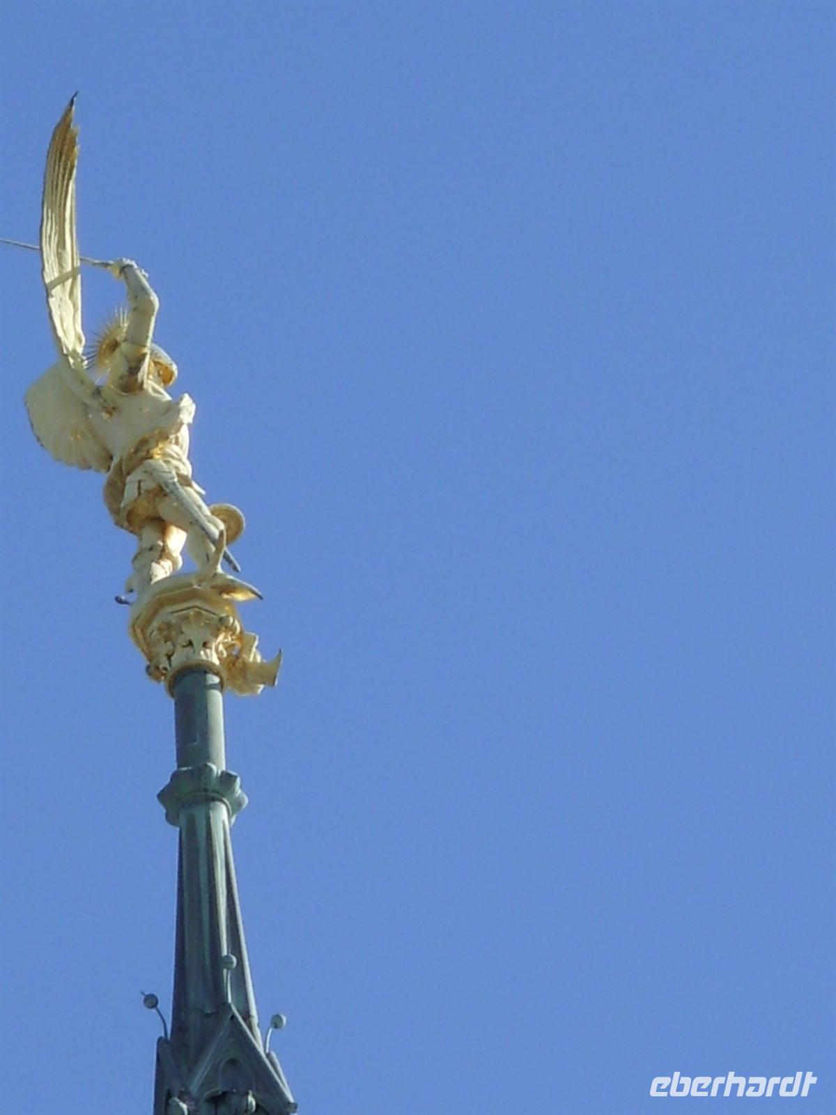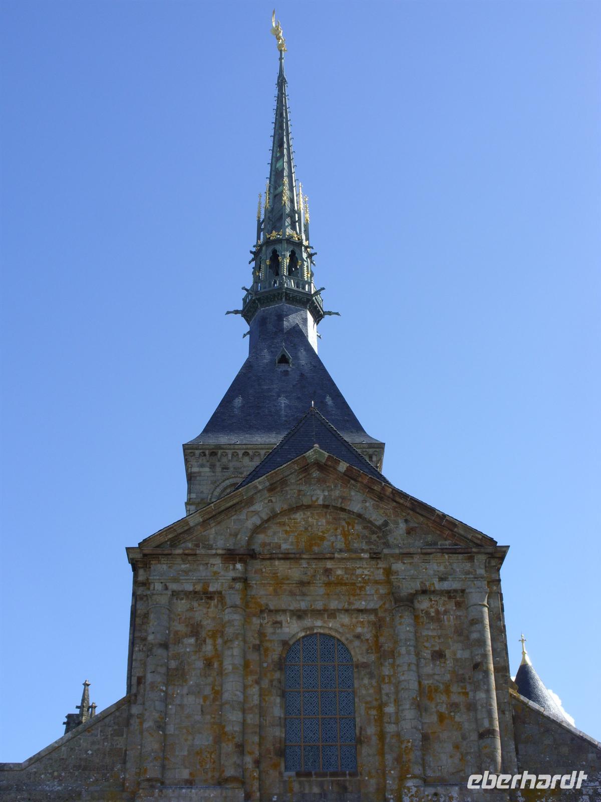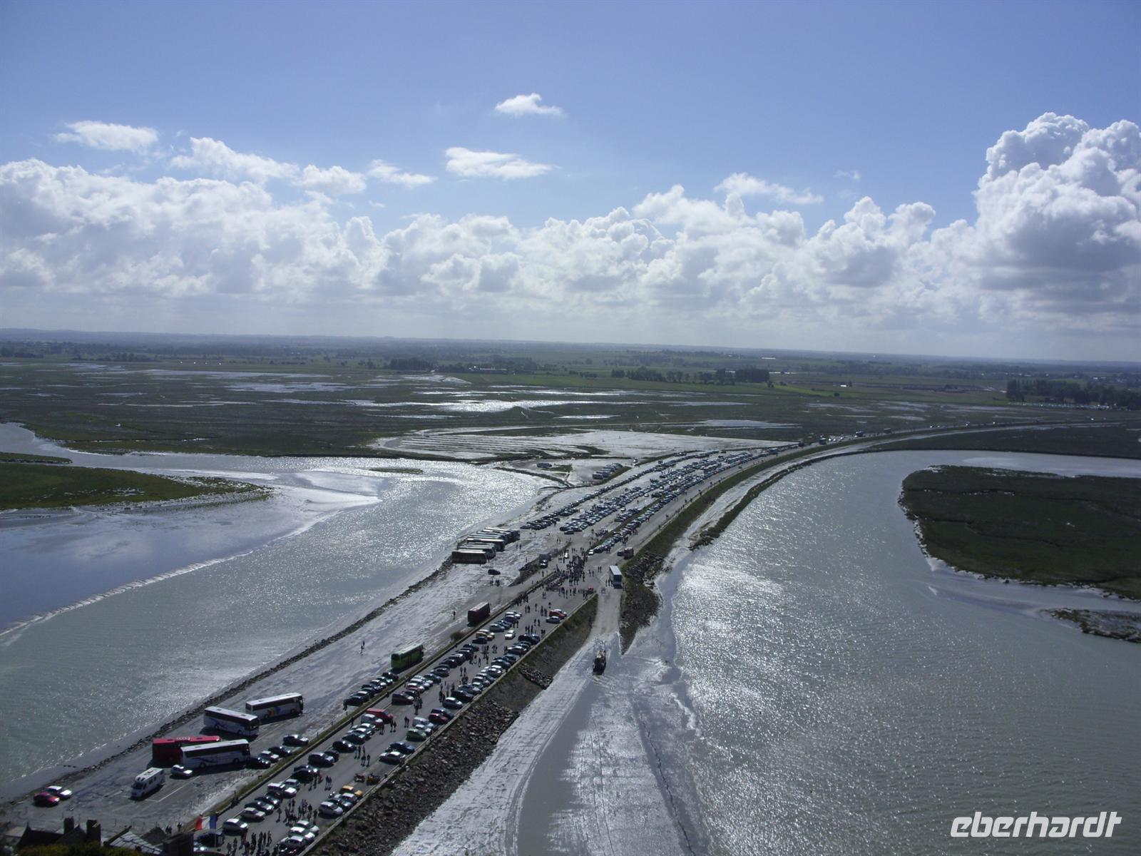 Am Vormittag des vierten Reisetages stand uns zunächst einmal eine etwas längere Busfahrt ins Haus, da wir bis zur westlichen Grenze der Normandie vordringen wollten. Doch schon von weitem sahen wir unseren nächsten Besichtigungsstopp - den berühmten Mont Saint Michel, Frankreichs meist besuchteste Sehenswürdigkeit nach dem Pariser Eiffelturm und dem Disneyland Resort. So waren wir natürlich bei unserem Besuch auch nicht allein ...Mittels eines kleinen Spaziergangs über die Festungsmauern erreichten wir unter Einsatz von viel Puste den Eingang in die beeindrucktende Klosteranlage. Noch waren es aber ein paar Stufen bis zur Aussichtsterrasse! Wunderbar, alle Gäste hatten schließlich das Dach des Mont Saint Michel erreicht und konnten nun die Sicht auf die Bucht genießen. Besonders hervor stach dabei die veränderte Meereslandschaft durch den Bau des Dammes zum Klosterberg. Schon lang war der Klosterberg nicht mehr vollständig vom Wasser umgeben! Doch allein der imposante Bau der verschiedenen Räume übereinander war Grund für eine Besichtigungstour durch das Kloster. Im Anschluss erwartete uns dann die Grand Rue, die einzige Straße auf dem Mont Saint Michel - überfüllt mit Touristen, Souvenirgeschäften und Gaststätten.