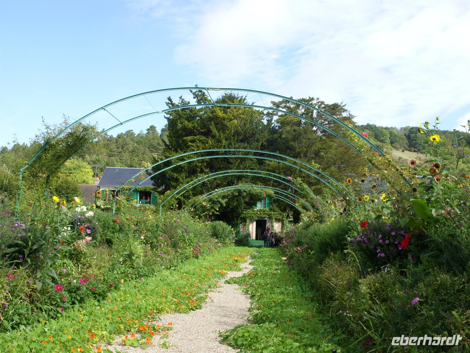 Nach ein paar Stunden Schlaf ging es dann auch schon los - Stau erwartete uns auf dem Weg an das andere Ende der Stadt. Doch voller Erwartungen und mit ein paar allgemeinen Erklärungen verging die Zeit schnell bis wir auch schon unseren ersten Besichtigungsstopp erreichten: die Gärten und das Wohnhaus von Claude Monet in Giverny. Zunächst verzauberte uns dort der weltberühmte Seerosenteich, wo tatsächlich auch die eine oder andere Seerose sich das Sonnenlicht suchte. Anschließend erstaunte uns der recht wild anheimelnde Garten des Hobbygärtners Claude Monet, der hier einst bewusst verschiedene Blumen zusammen pflanzte. Ein Traum an Blüten! Ebenso farbenfroh war das ehemalige Wohnhaus Monet's, welches tatsächlich noch original eingerichtet ist. Natürlich waren wir nicht die einzigen Touristen in diesem Kleinod ...