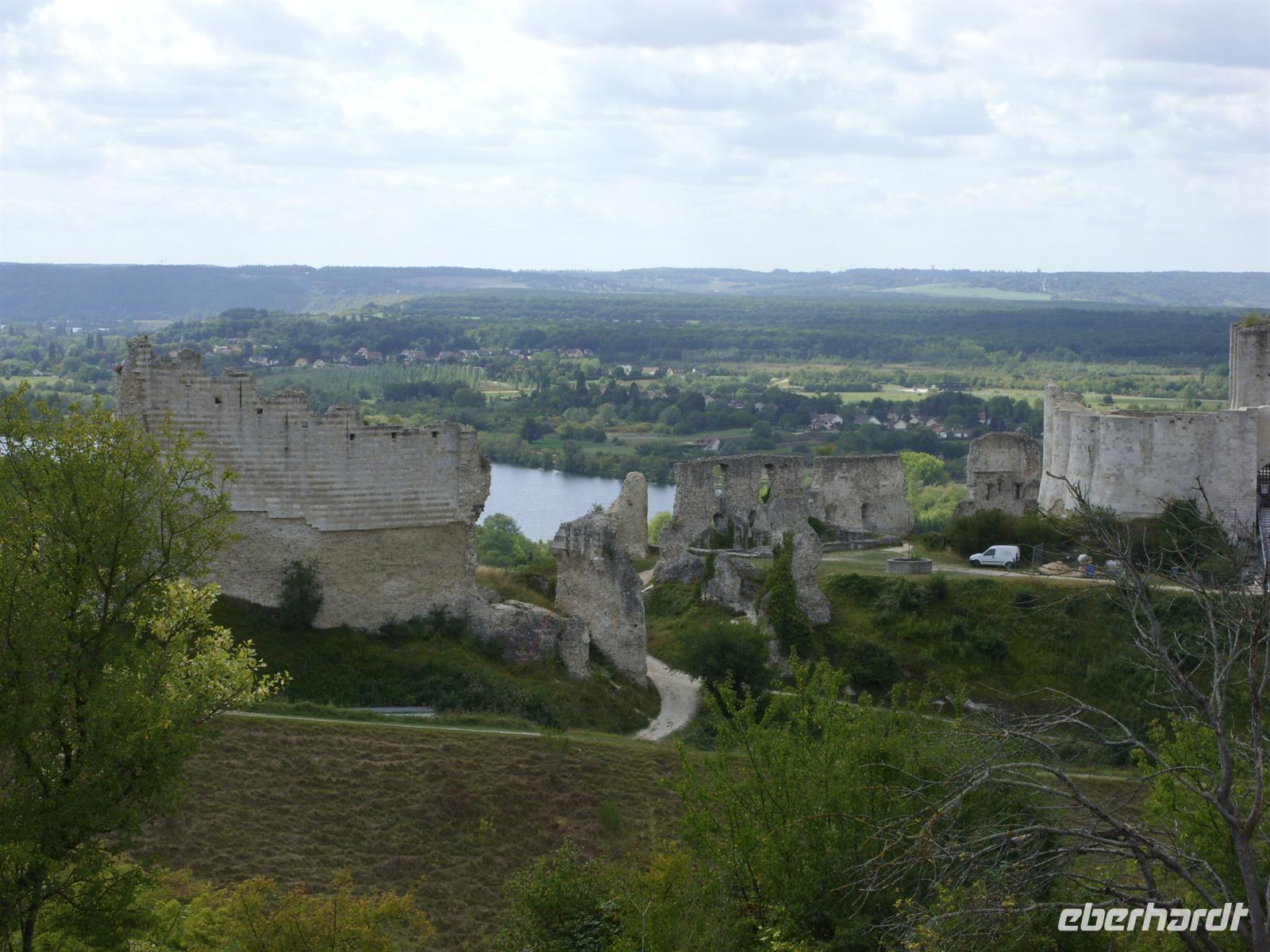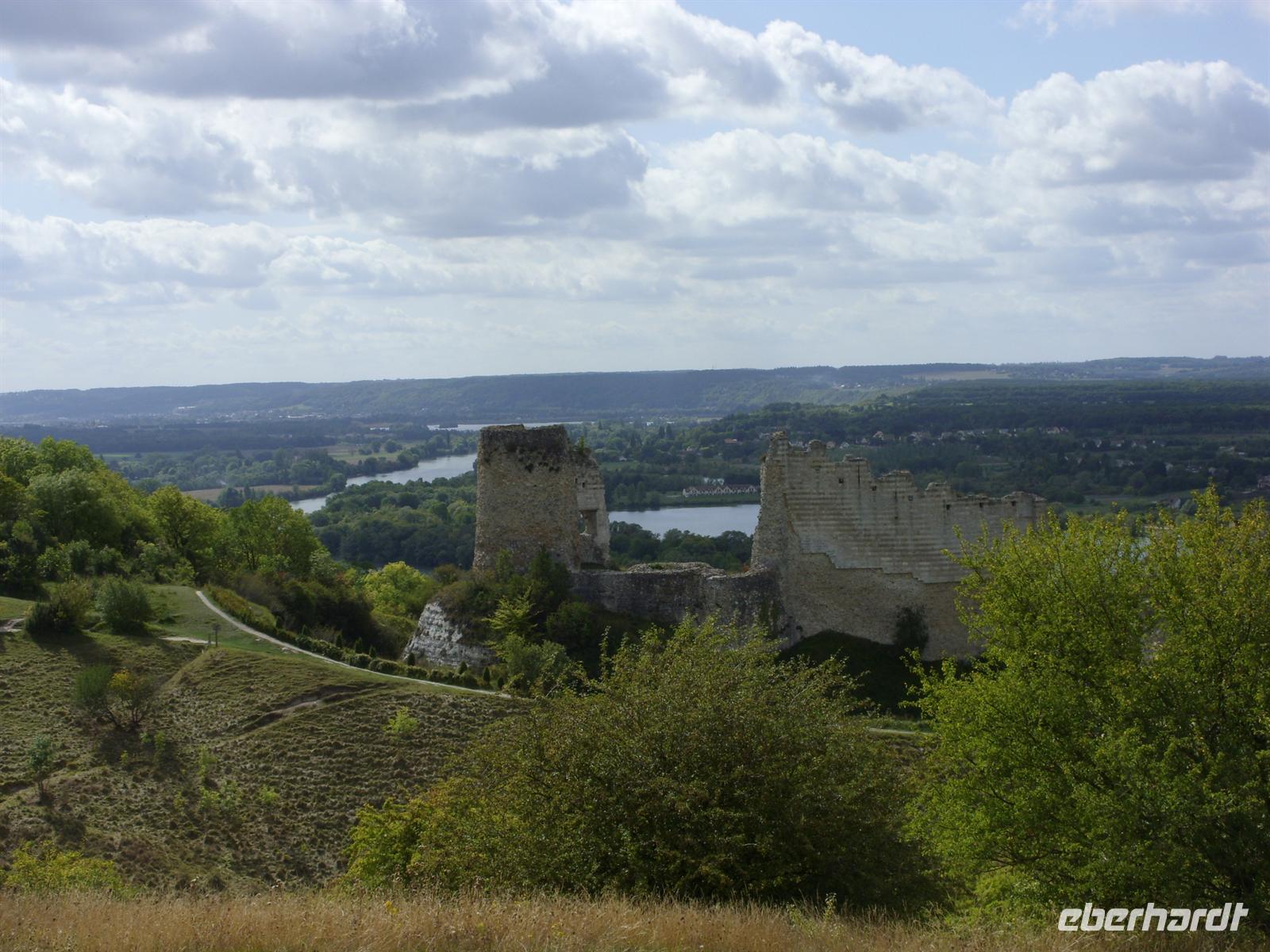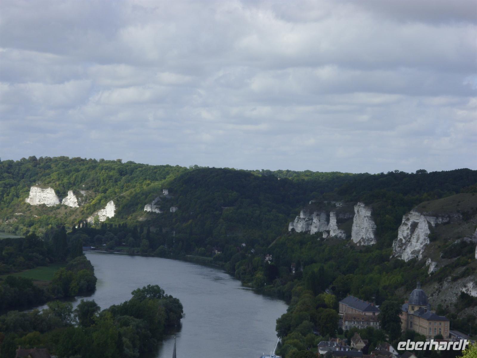Da ging es dann auf unserer Weiterfahrt doch schon um einiges ruhiger zu. Aufgrund meines Geheimtipps erreichten wir ein idyllisches Plätzchens hoch oben über der Seine, wo wir unsere verspätete Mittagspause einnahmen. Ganz in der Nähe erstrahlte die Ruine des einstigen Château Gaillard, welches Richard Löwenherz als Bollwerk gegen die Franzosen hatte errichten lassen. Wir waren also schon auf normannischen Boden angekommen!