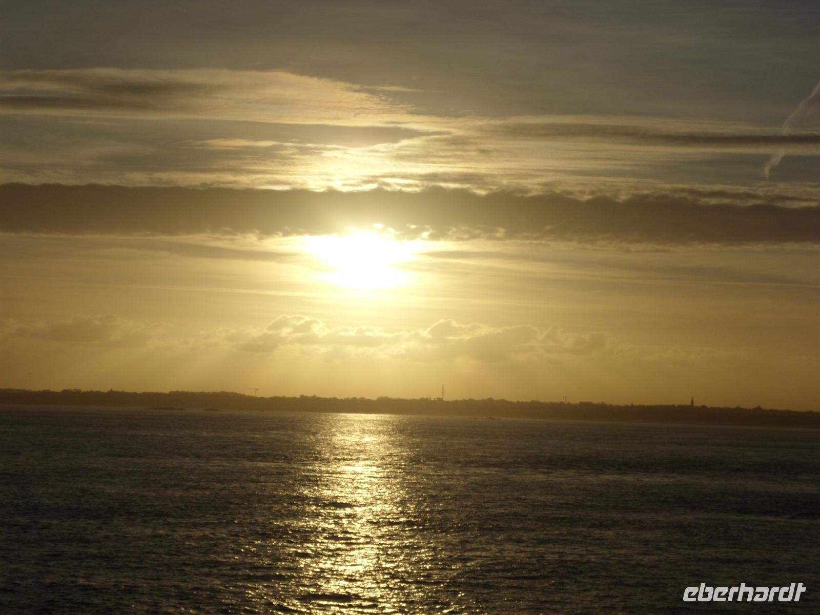 Für einen Großteil der Reisenden begann der fünfte Reisetag sehr, sehr zeitg am Morgen. Heute erwartete uns einer der schönsten Kanalinseln, Jersey! Doch zunächst mussten wir die Schnellfähre nehmen und nach St. Helier, der Hauptstadt der Insel Jersey übersetzen. Die Zeit verging jedoch wie im Fluge, denn während der Überfahrt konnten wir nochmals einen Frühstückskaffee trinken oder mussten Geld tauschen. In Jersey bezahlt man ja mit dem so genannten Jersey-Pfund! Am Hafen erwartete uns dann schon Helga, eine gebürtige Deutsche, die seit Jahren Jersey als ihre Heimat bezeichnet und uns diese schöne Insel zeigen wollte. Dazu bestiegen wir einen dieser typischen Busse, die auf den Kanalinseln fahren - um einiges schmaler, da die Straßen einfach viel zu eng sind als das man da mit einem großen Reisebus vorwärts kommt. Zudem gibt es wohl auch ein ungeschriebenes Gesetz, dass die Inselrundfahrten gen Osten zu starten haben. So fuhren wir zunächst an die Ostküste und hielten in Gorey, um uns vom Hafen aus das berühmte Mont Orgueil Castle anzuschauen. Weiter ging es entlang der Ostküste gen Norden. Wir passierten unberührte Buchten sowie kleine Gemeinden und erfuhren von den so genannten "Green lanes", ein etwa 100 km großes Wegesystem von verkehrsberuhigten Straßen auf denen Fahrradfahrer, Reiter und Fussgänger Vorrang haben. Im Norden der Insel erreichten wir die dort steil abfallenden Klippen und legten in Greve de Lecq eine kleine Pause ein. Hier war sogar ein kleiner Sandstrand vorzufinden, der jedoch genauso wie die gesamte Küstenlandschaft der Insel von den starken Gezeitenunterschieden mit bis zu 12 Metern gekennzeichnet ist. Bitte, Vorsicht vor den Möwen war hier geboten! Im Anschluss verließen wir den rauhen Norden der Insel und fuhren entlang der ausgedehnten Sandbucht von St. Ouen bis zum südlichsten Punkt der Westküste. Hier erwartete uns eine tolles Fotomotiv, der vom Meer umspülte Leuchtturm von Corbière. Nur bei Ebbe kann man tatsächlich auch zum Leuchtturm gelangen. Weiter ging es nun an der Südküste, vorbei an der Bucht von St. Brelade und St. Aubin bis zurück nach St. Helier. In der Hauptstadt angekommen wartete man bereits mit einem 4-Gang-Mittagsmenü auf uns. Leider hiess es nun auch schon wieder von Helga Abschied zu nehmen, denn der Rest des Tages stand uns zur eigenen Verfügung. Zurecht empfanden einige der Gäste diese Zeiteinteilung unzweckmässig, da die Insel noch viel zu bieten hatte während die Hauptstadt St. Helier nicht allzu sehenswert ist. Trotzdem wählte ich einen kleinen Spaziergang zum Howard Davis Park aus. Hier konnten wir uns nochmals von der einzigartigen mediterranen Pflanzenwelt überzeugen, die überall auf der Insel vorherrscht. Anschließend bummelten wir gemeinsam durch die Straßen der Hauptstadt und besichtigten den historisch interessanten Royal Square sowie die Fisch- und Markthalle. Danach blieb genügend Zeit für eigene Erkundungen oder ein paar Einkäufe. Am zeitigen Abend wartete dann erneut ein 3-Gang-Menü auf uns, obwohl wir alle wohl noch gar keinen Hunger verspürten. Und schließlich mussten wir auch schon wieder Abschied nehmen von der größten der Kanalinseln und per Schnellfähre die Überfahrt zurück nach St. Malo antreten. Gegen 23 Uhr erreichten wir das Festland und mussten jetzt nur noch den kleinen Spaziergang zurück zum Hotel machen - nur noch! Doch was war das? Da bewegte sich plötzlich die Straße vor uns!!! Richtig, da wir ja im Hafengelände unterwegs waren, mussten wir auch Schleusen überqueren, wo gerade in diesem Moment eine geöffnet wurde. Auch das war abschließend für den heutigen langen Tag noch einmal ein interessanter Anblick!