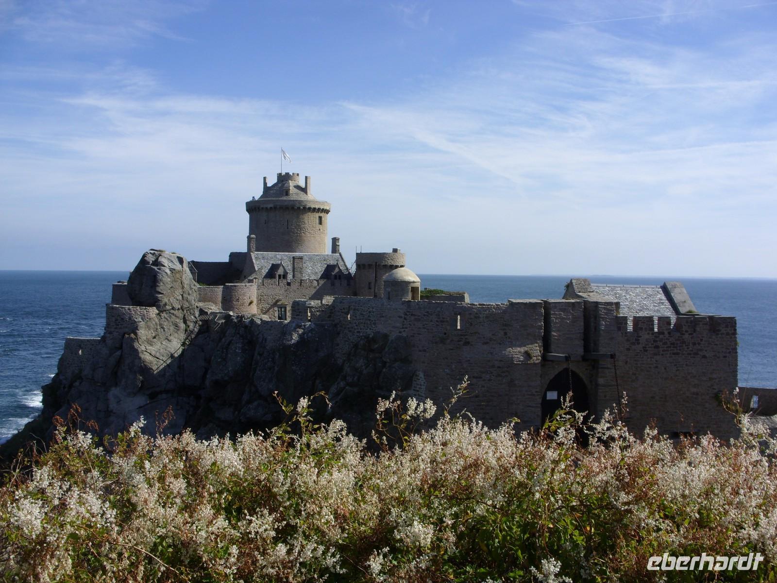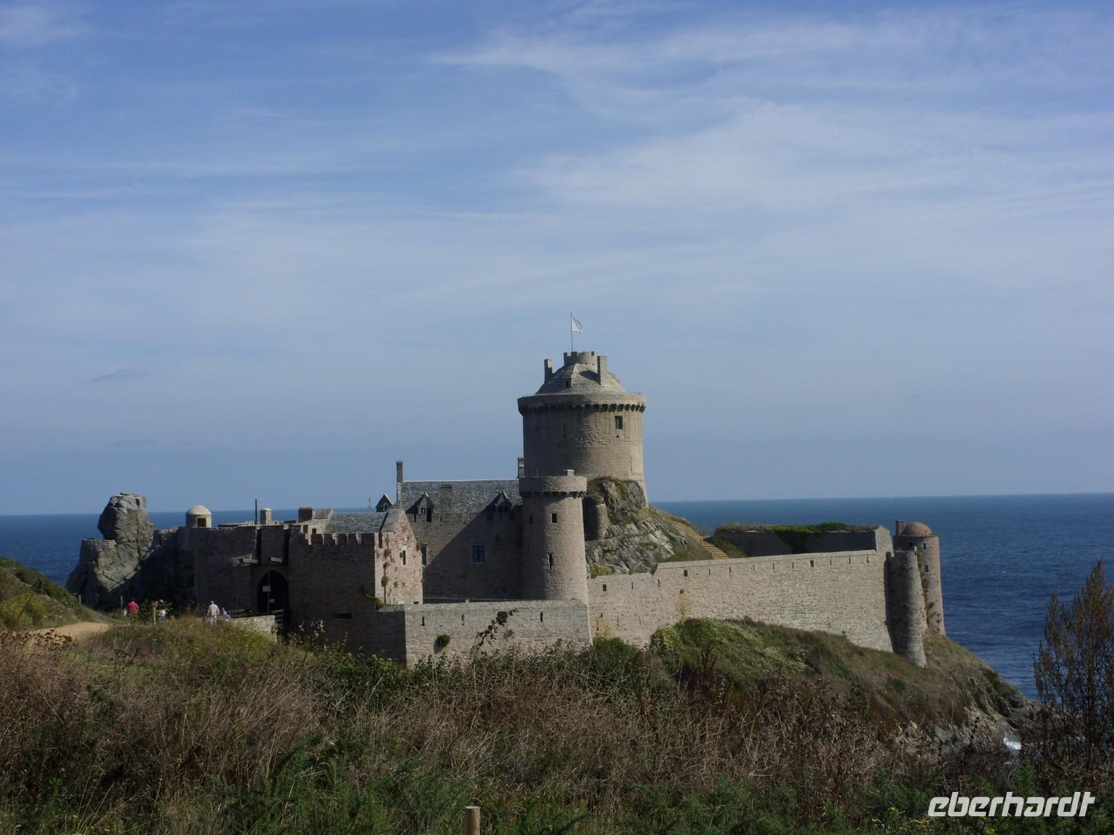 Am späten Vormittag setzten wir unsere Fahrt entlang der buchtenreichen Küste fort und legten auch schon bald wieder einen zusätzlichen Stopp am Fort La Latte ein. Nach einem kleinen Spaziergang wurde der Blick zu dieser atemberaubenden Burganlage aus dem 13. Jahrhundert frei, die zurecht schon mehrfach als Filmkulisse für Historienspektakel gedient hat. Und in der Ferne konnten wir auch bereits das Cap Fréhel erahnen - unser nächster Halt!