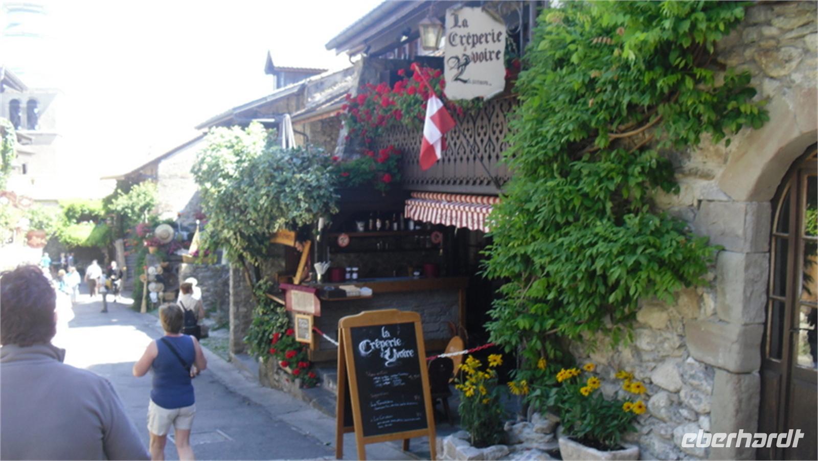 Am 3.Tag fuhren wir nach Evian-les-Bains am Genfersee, dem berühmten „Wasser“ -Ort und flanierten am See entlang. Danach bummelten wir durch Yvoire, dem schönsten Fischerdorf Frankreichs. Pittoreske Gassen und die Hl.Ponkratiuskirche und die Läden mit all den Leckereien. Einfach wunderbar!